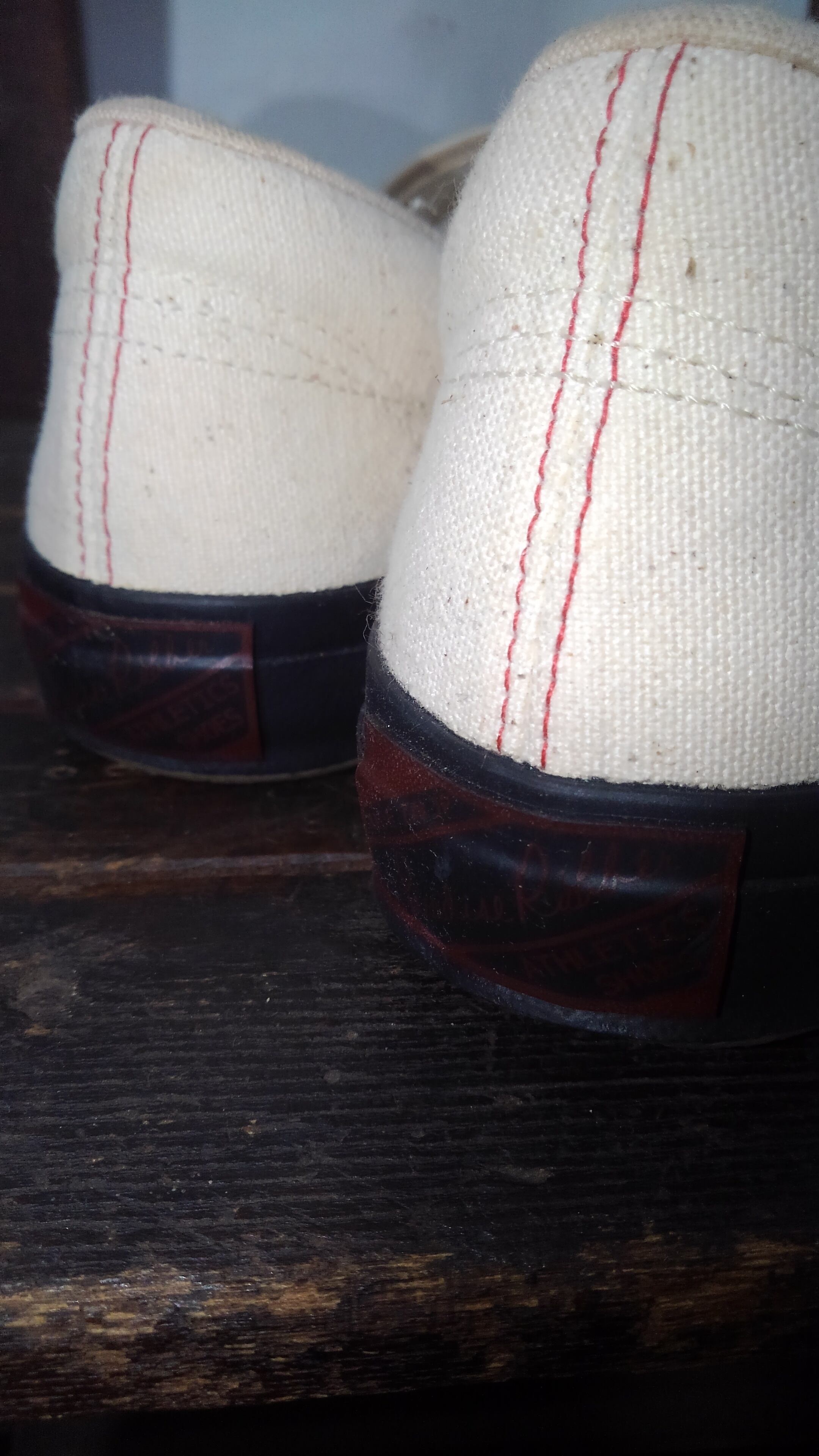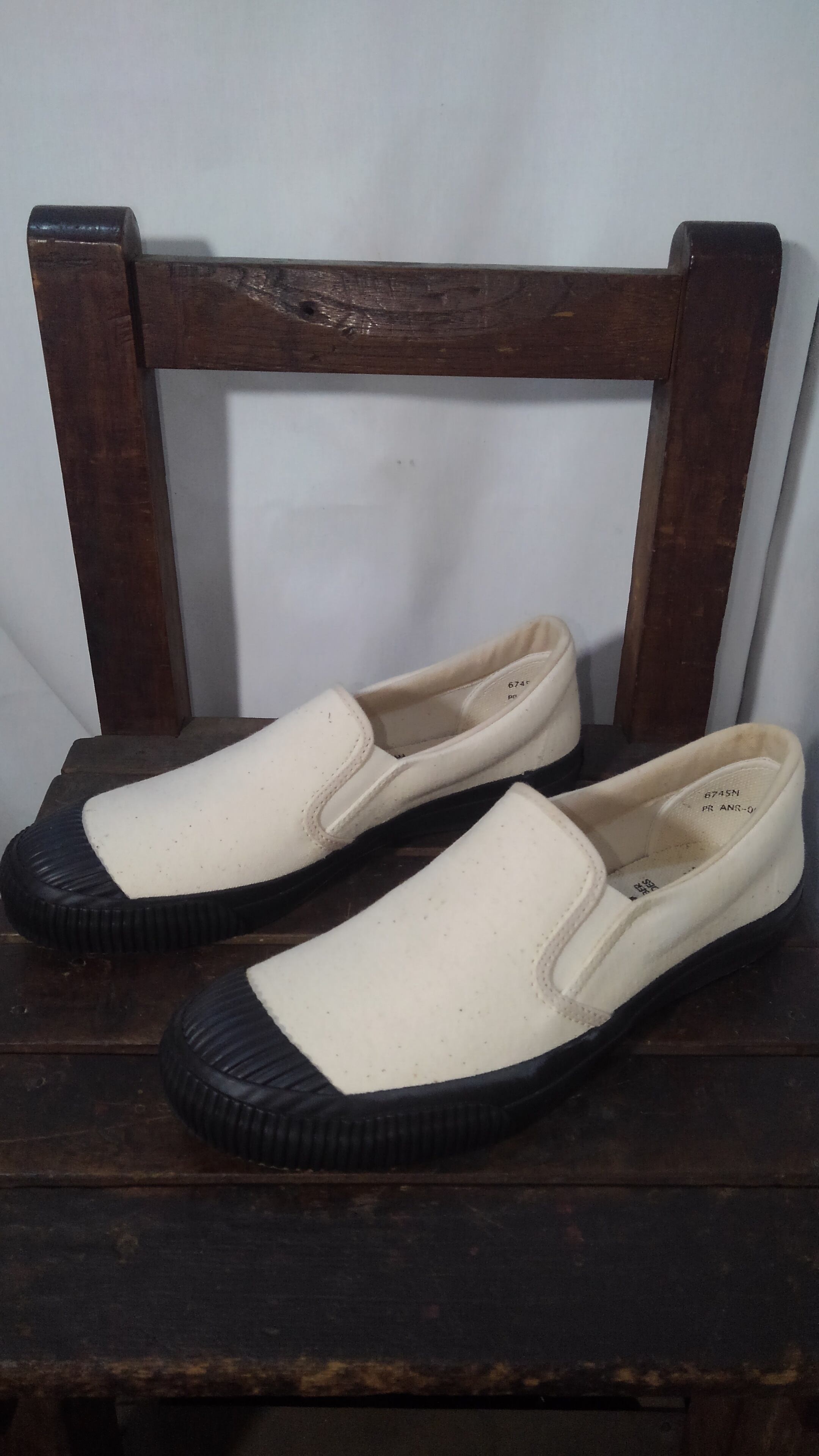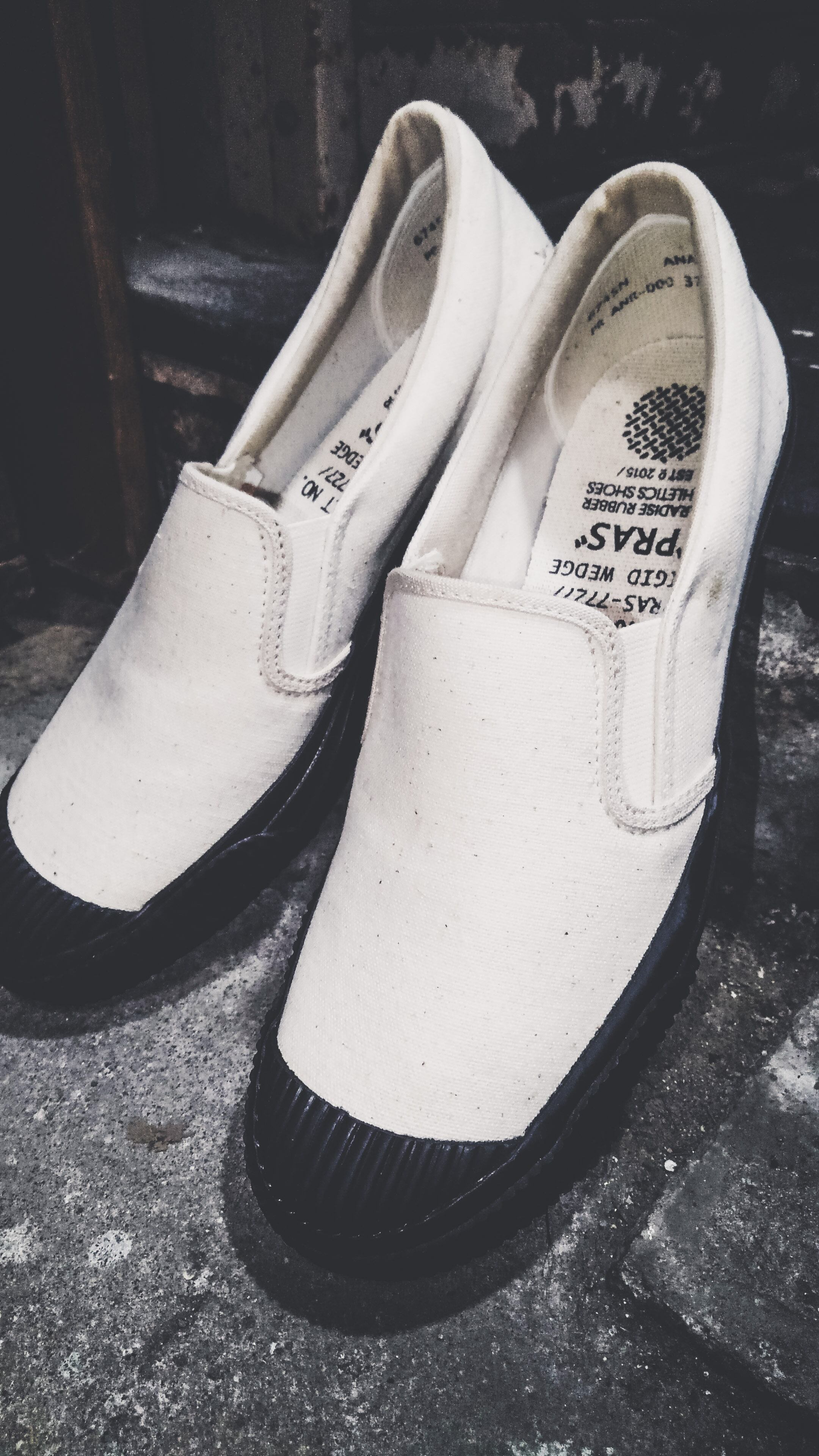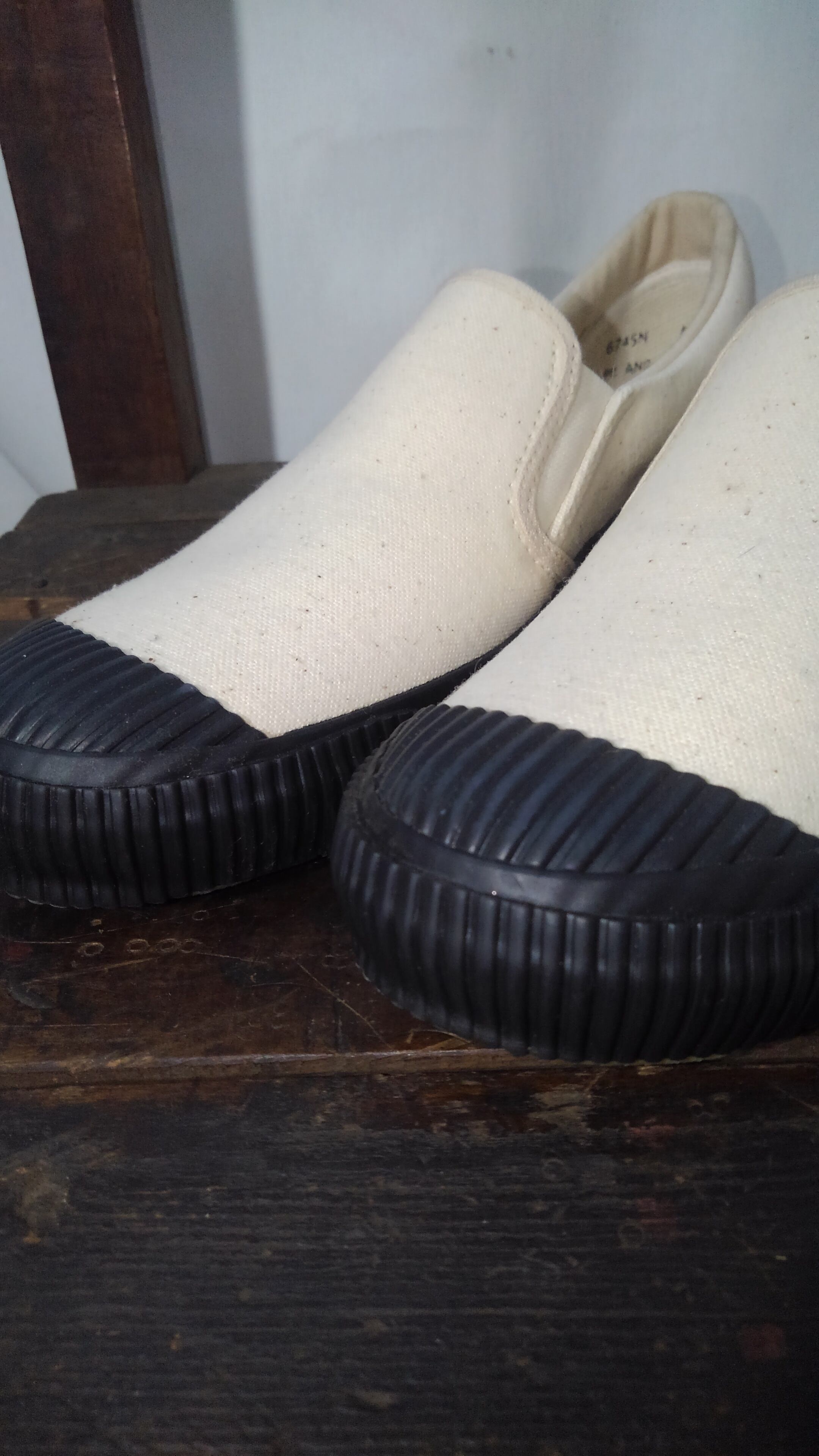 アッパーにはオリジナルの児島帆布を使用し、福岡県久留米市のムーンスター製バルカナイズドスニーカー。