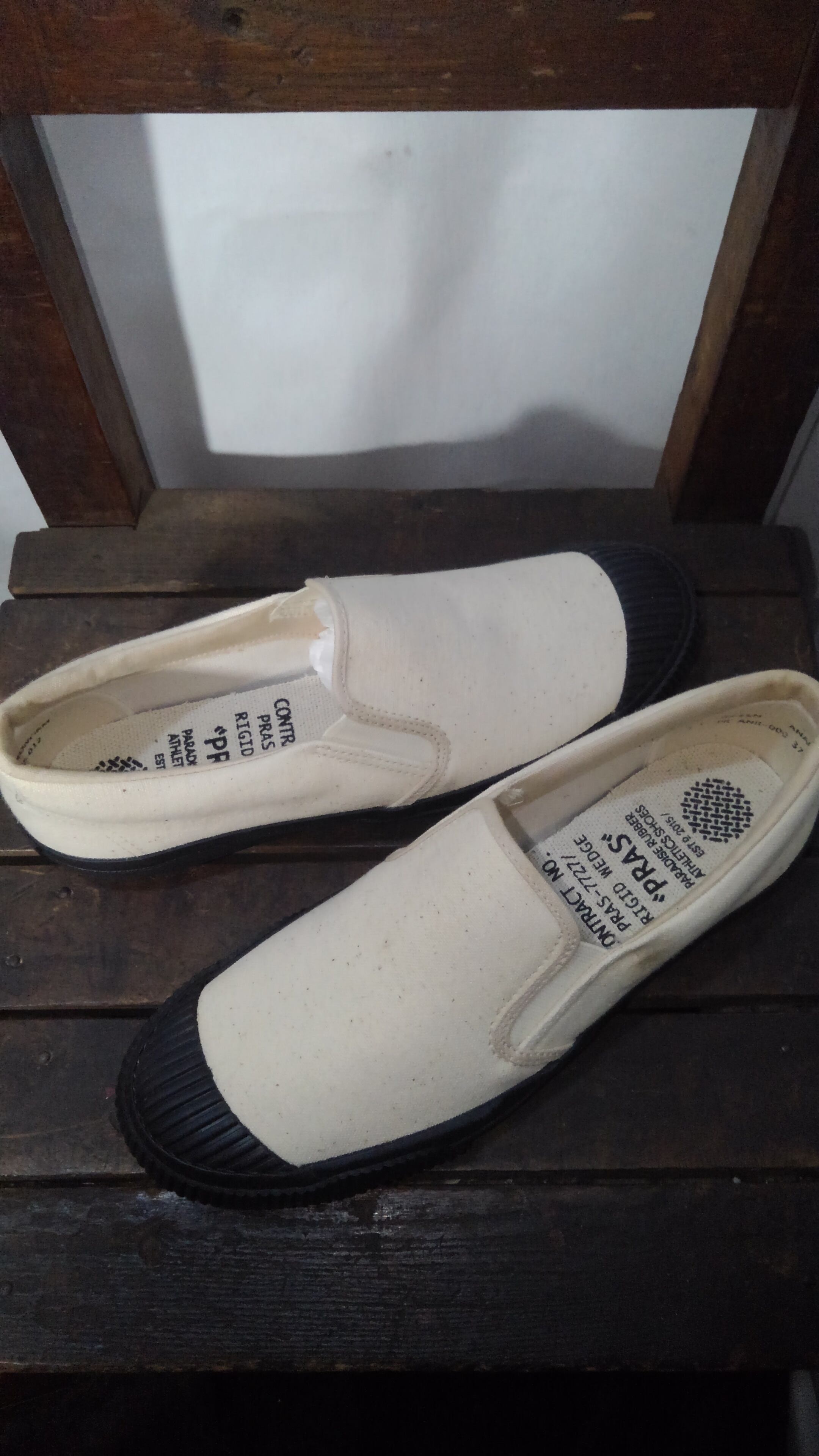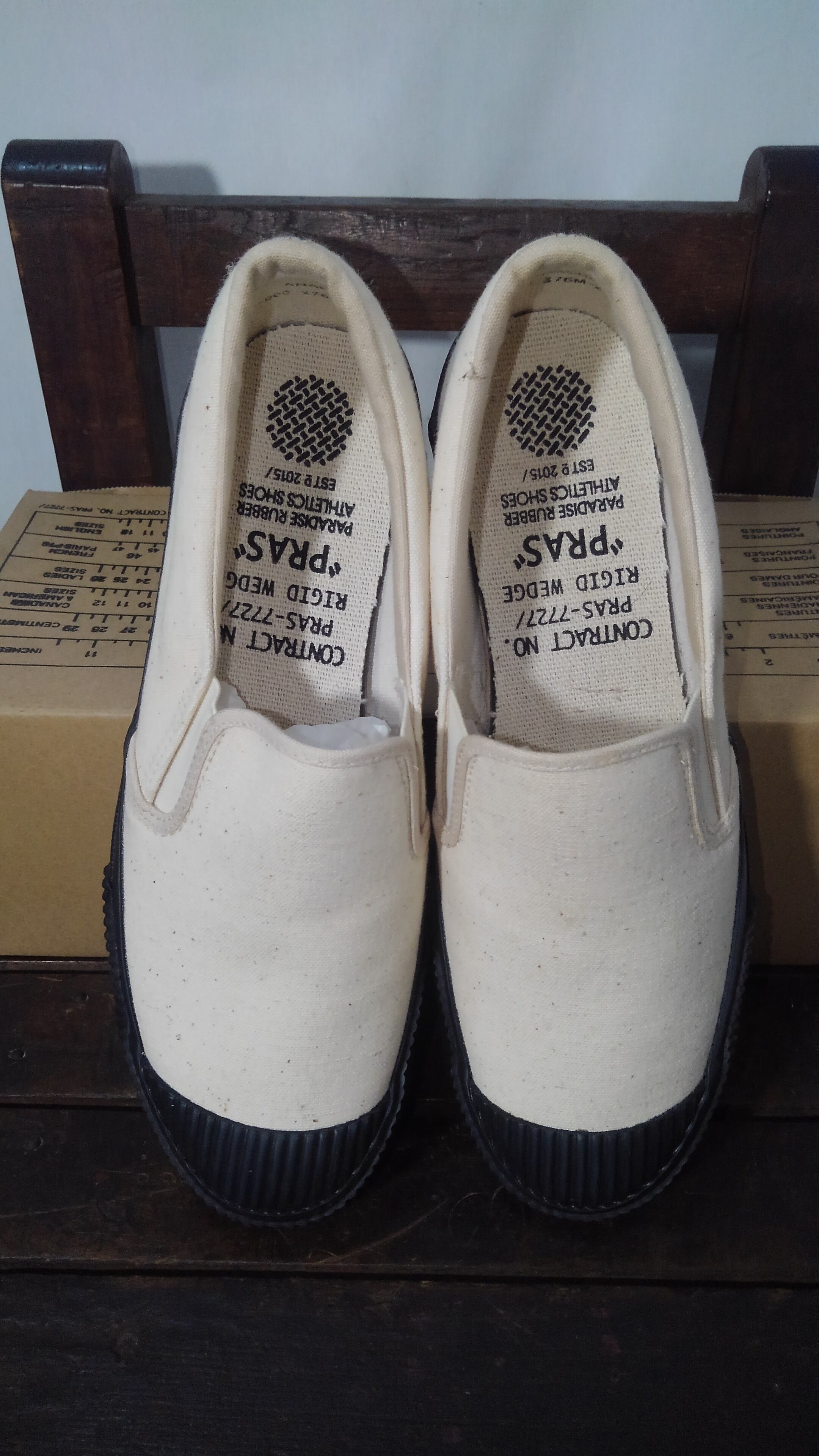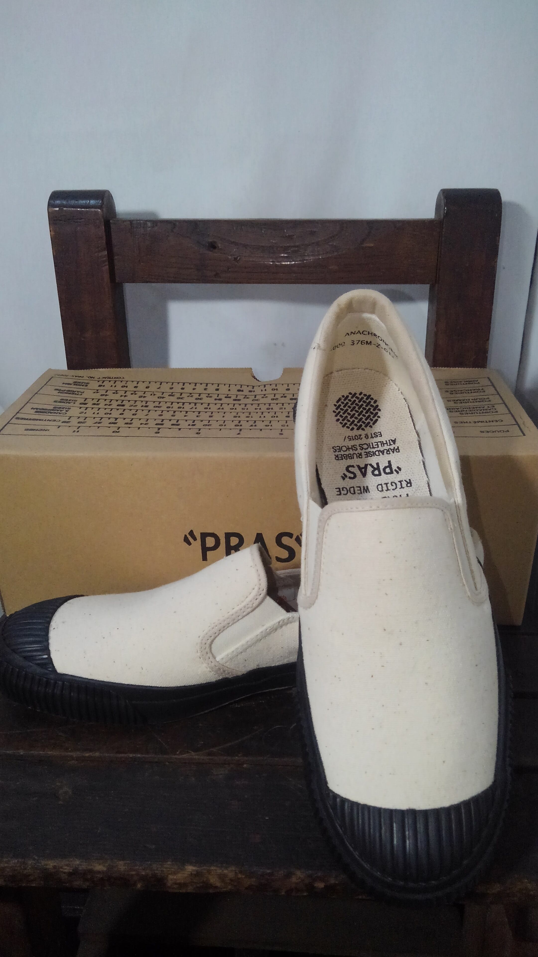 アッパーにはPRASオリジナルのコットン100% 10号帆布を使用し適度なハリとコシがあり、しなやかで快適な履き心地。
