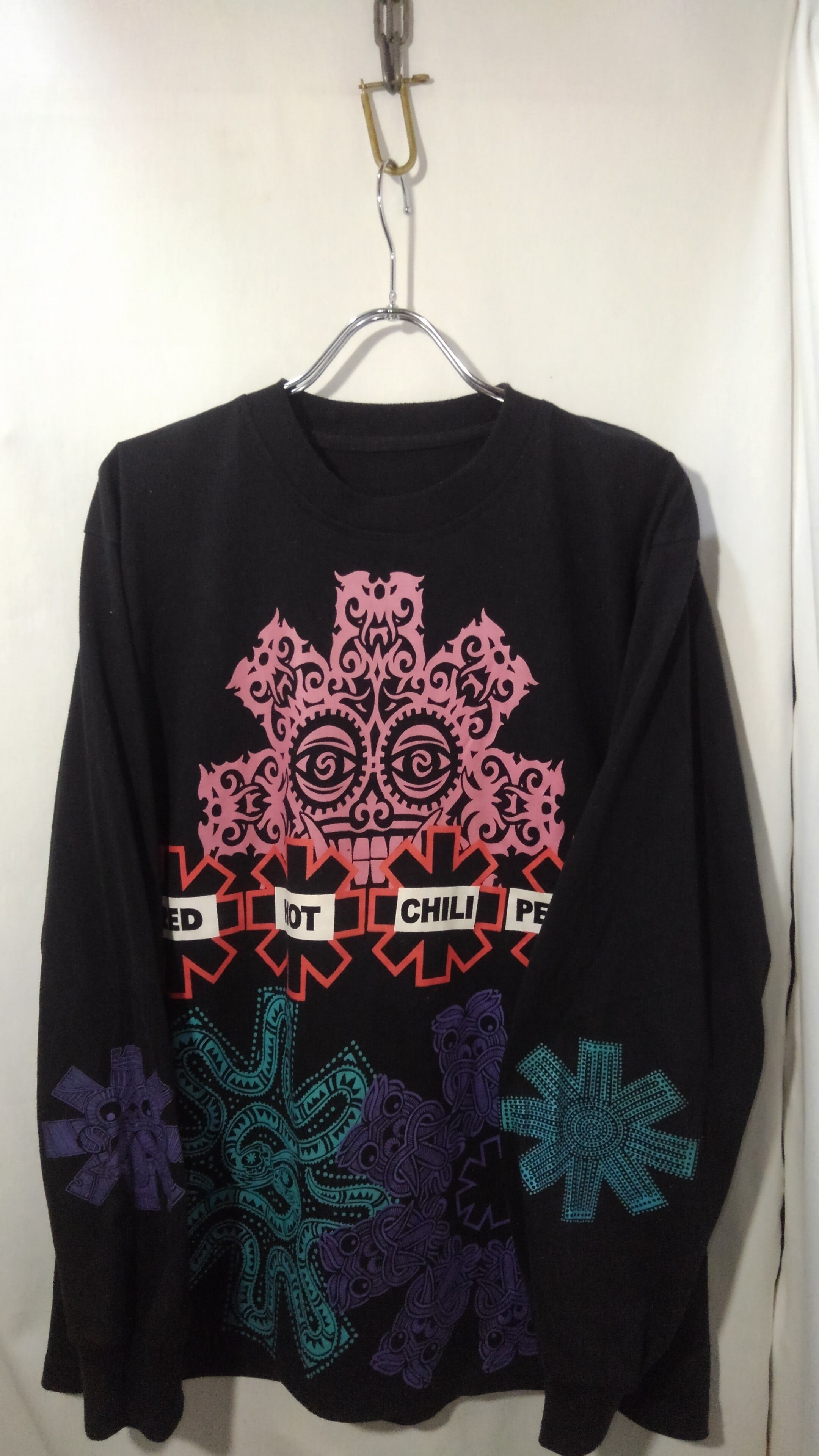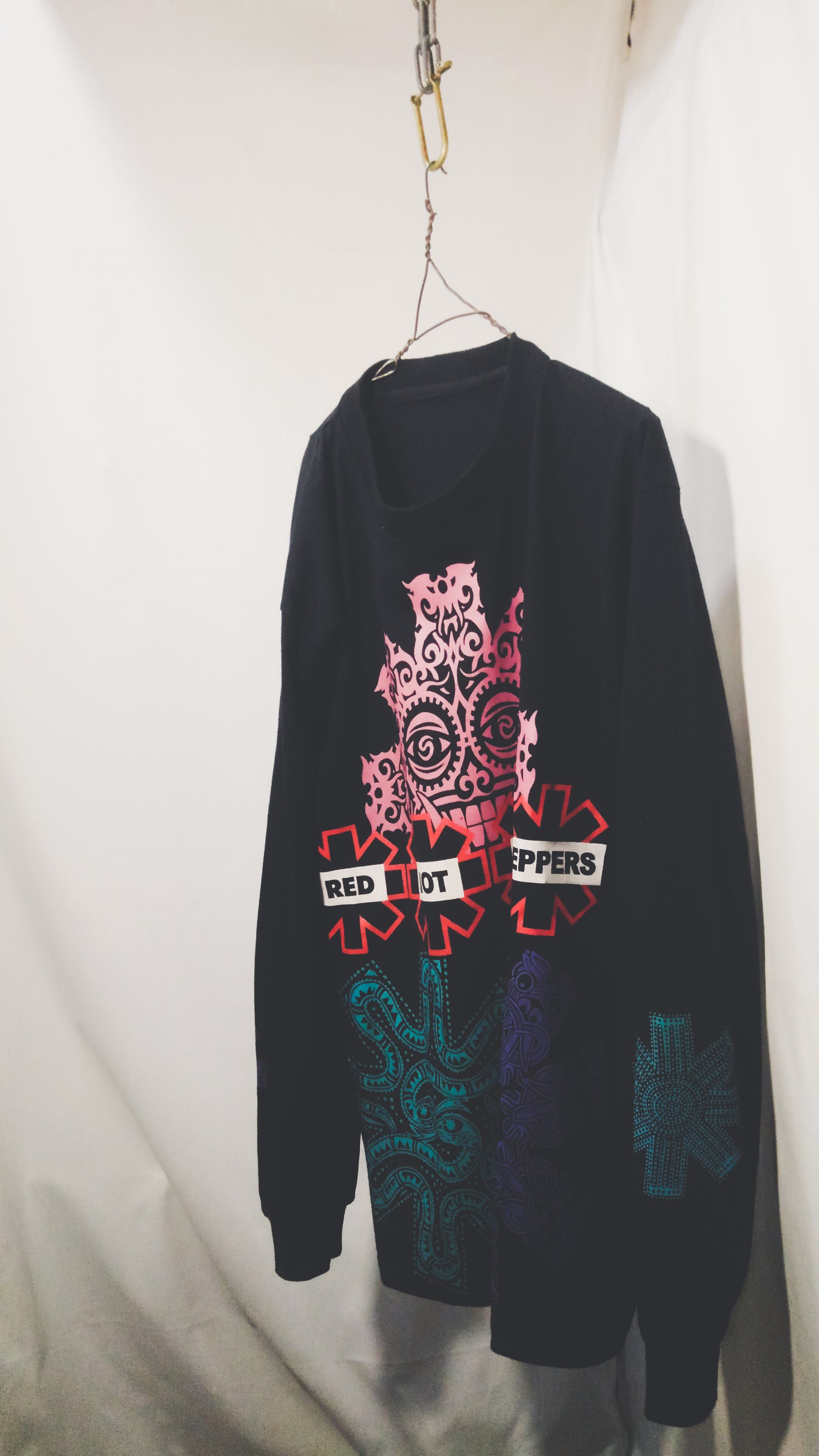 ボーカルのアンソニーに彫られているTATOOのデザイナーであるハンキーパンキーデザインのマルチプリントTシャツです。 近年レッチリのバンTは高騰し続け、さらにこのマルチパターンは激レアです。こちらのロンTはおそらく当時のブートモノと思われますが、ブートモノでも 今後の価格の高騰が予想され、まず再入荷は無いと思いますのでこの機会に是非ご検討ください。