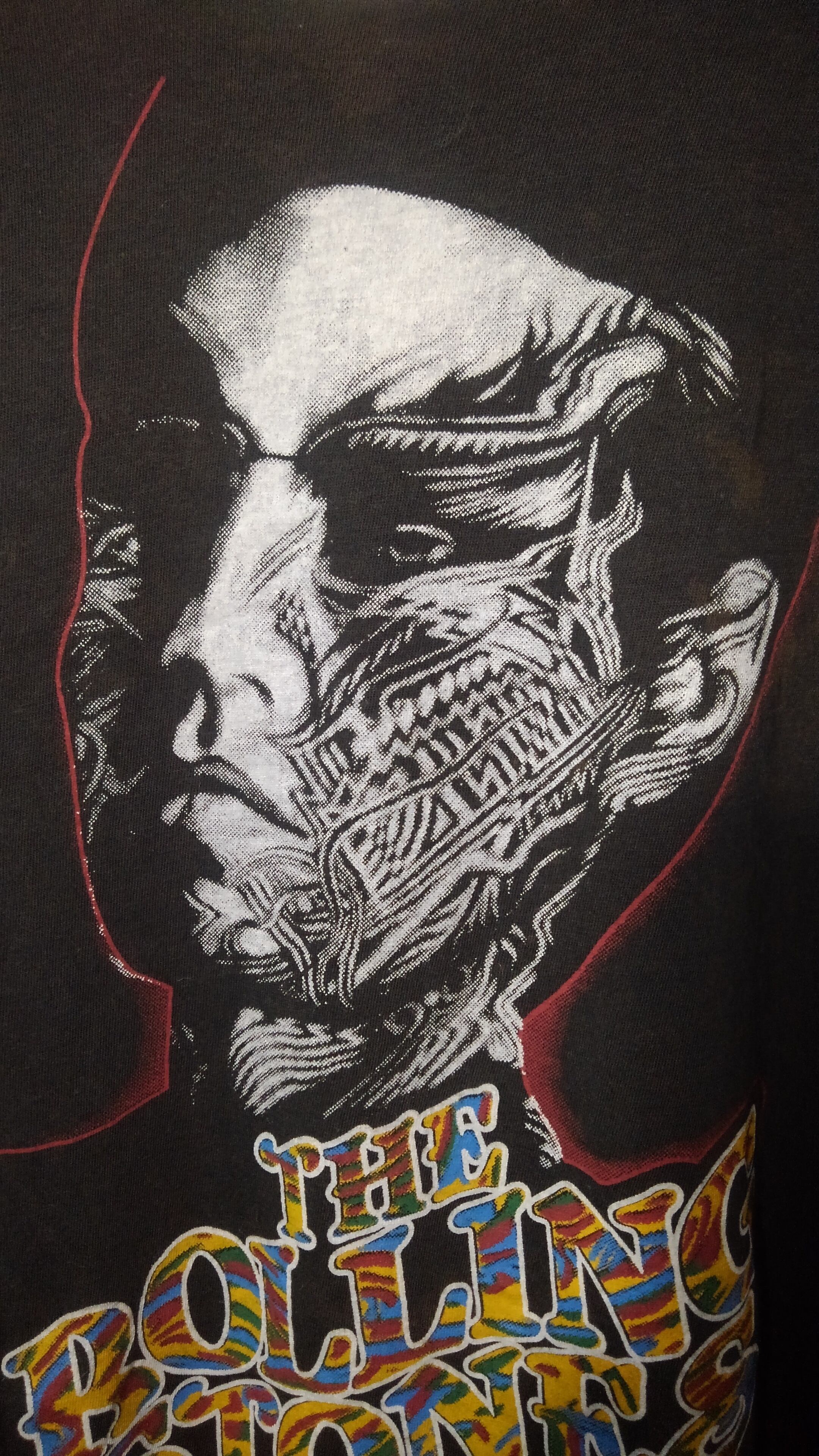 アルバムジャケット同様、フロントにはジャガー、バックはリチャーズの、それぞれの顔に刺青を合成した写真が使用されていてグラデーションが綺麗なバンドロゴがカッコいいです。