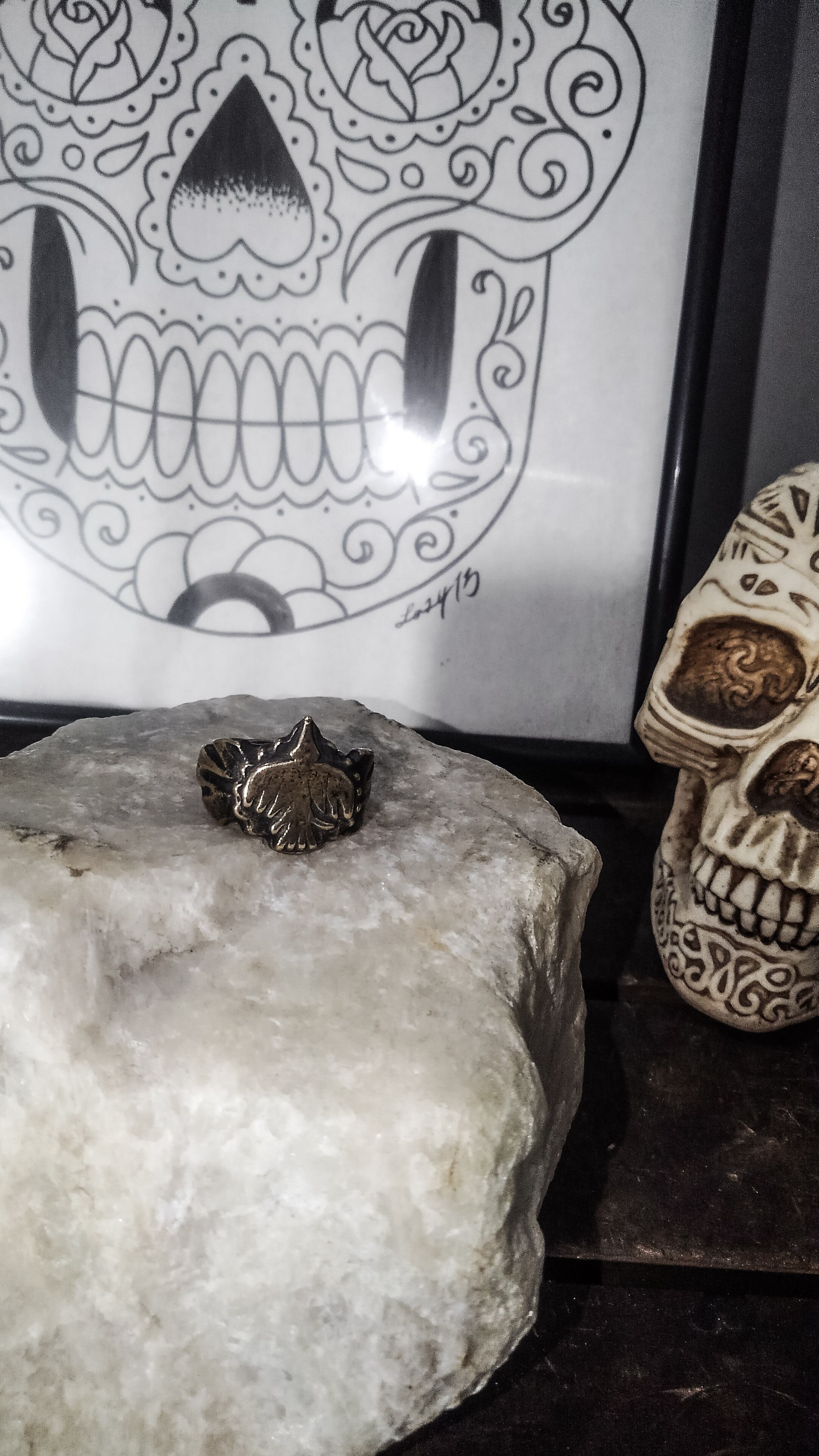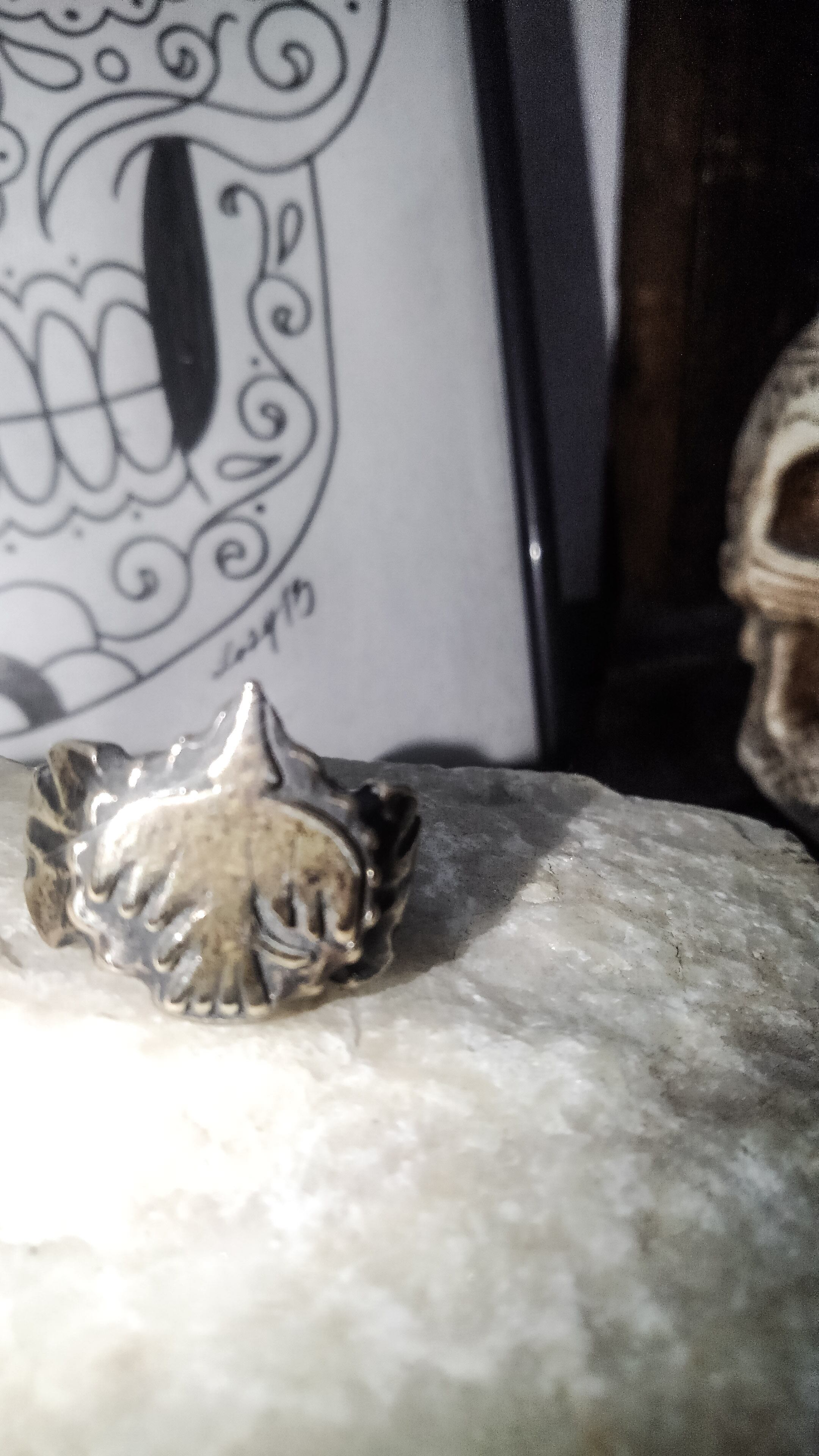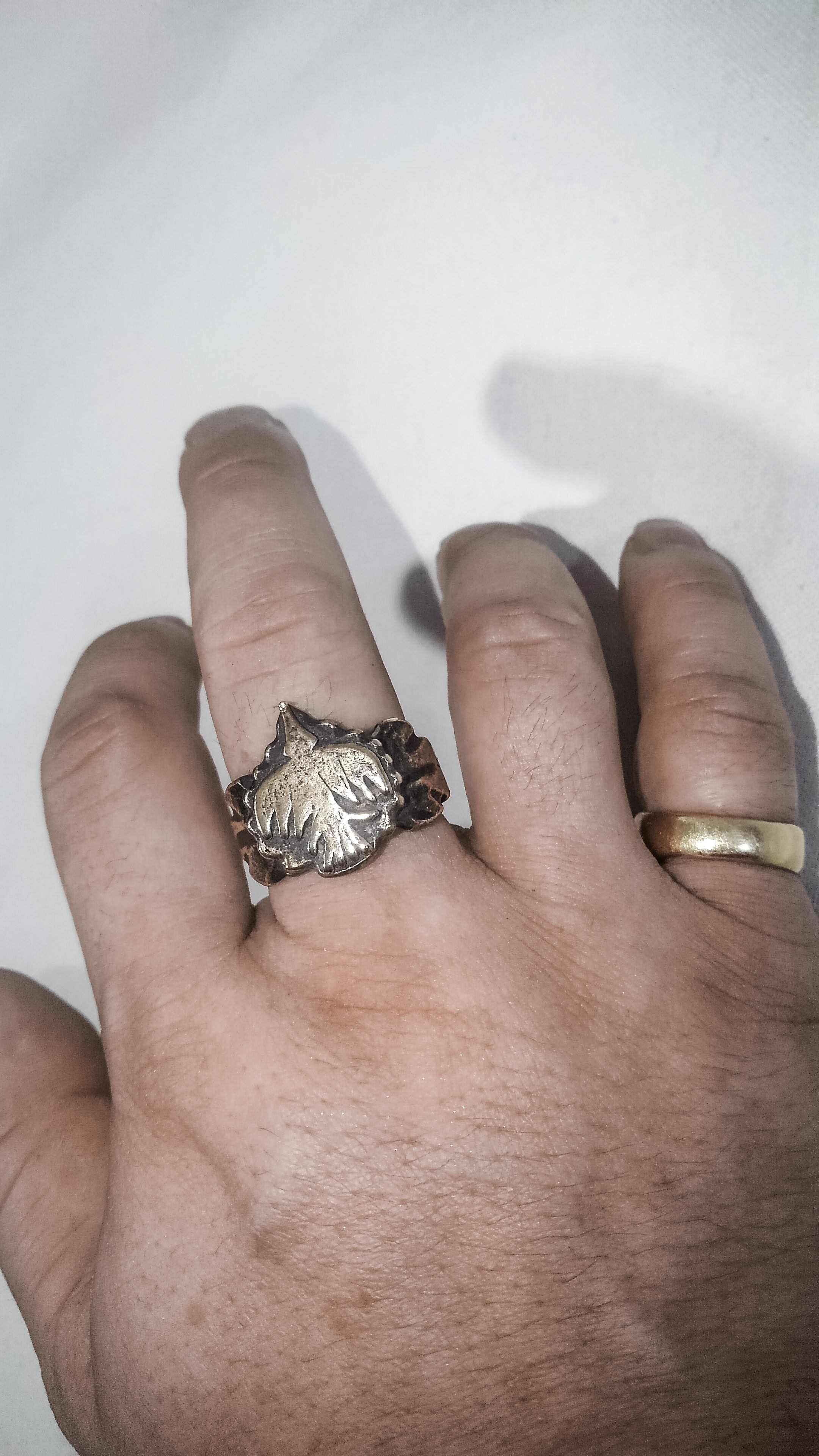 地金を削っている為、キャストの様な洗練されたクオリティではありませんが、逆にメキシカンリングやネイティブアメリカンのアクセの様に歪なハンドメイドらしさが出ていて数ある作品の中でもこの"指輪"シリーズは気に入っています。