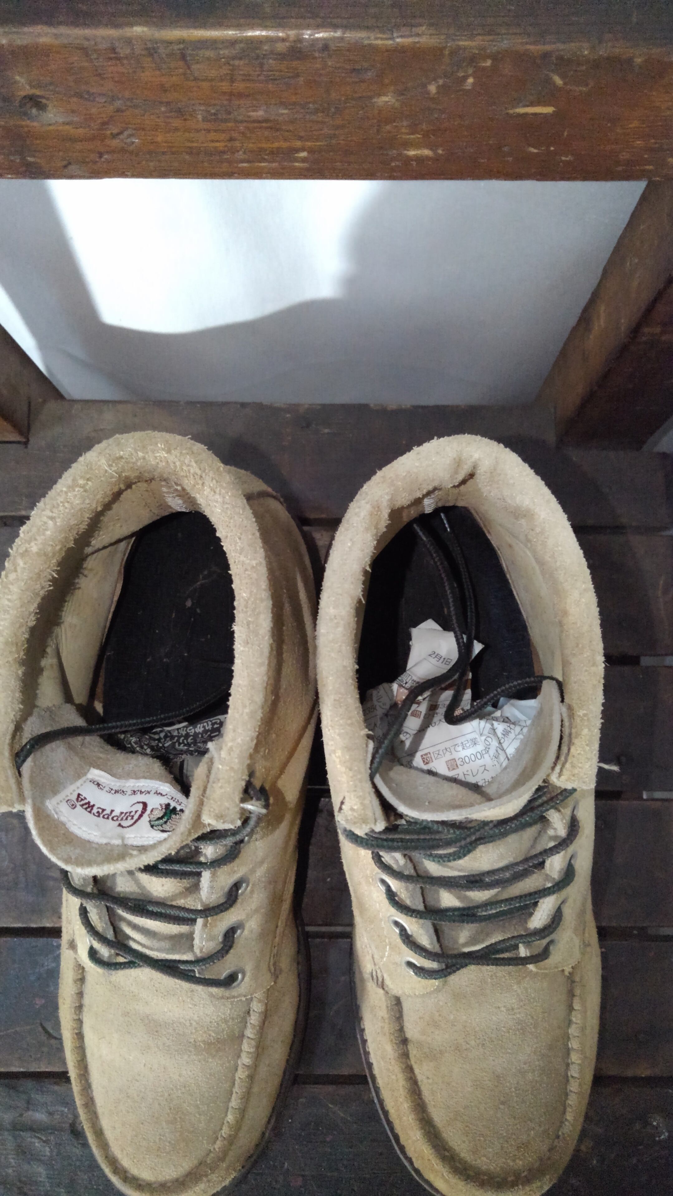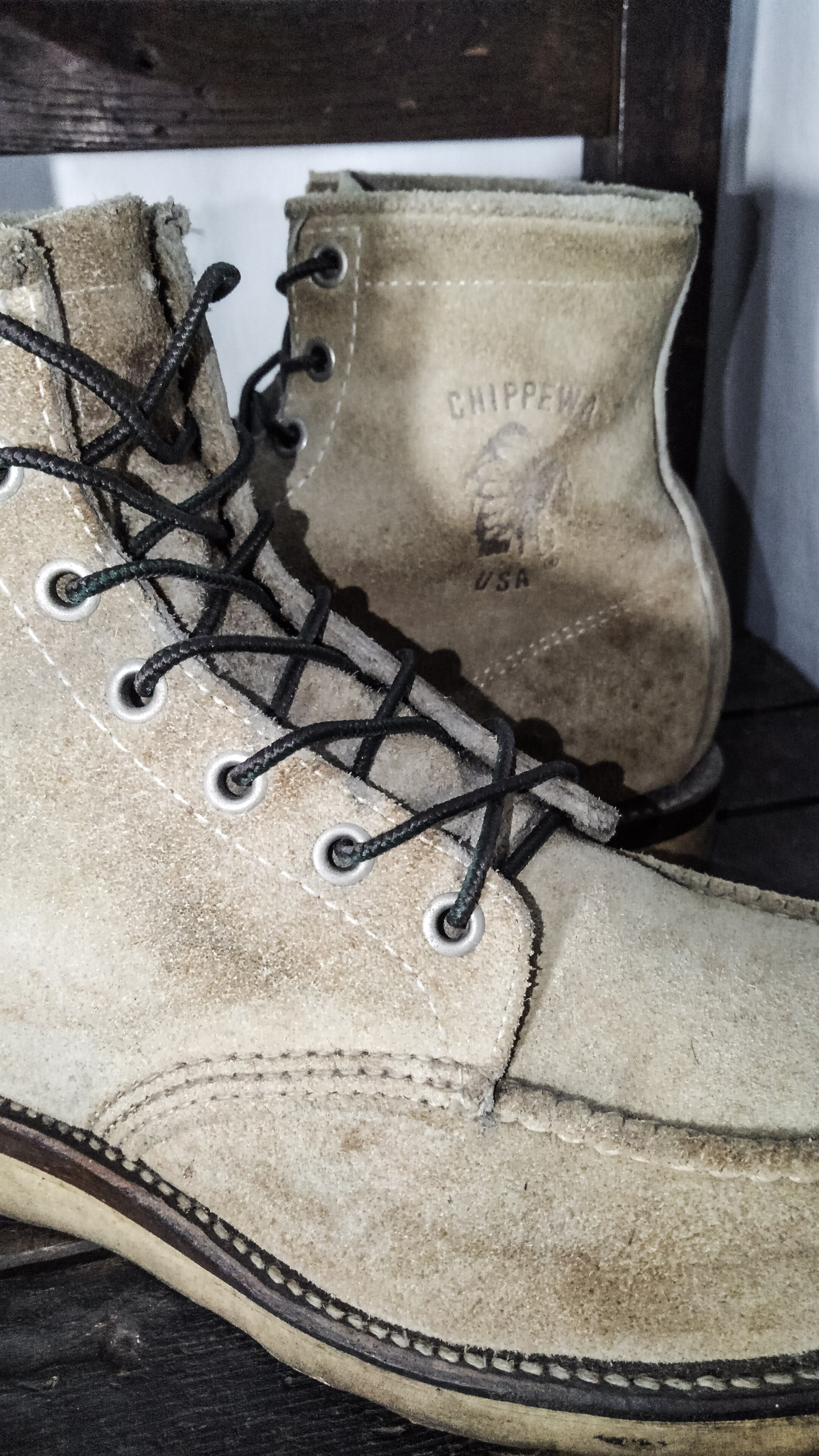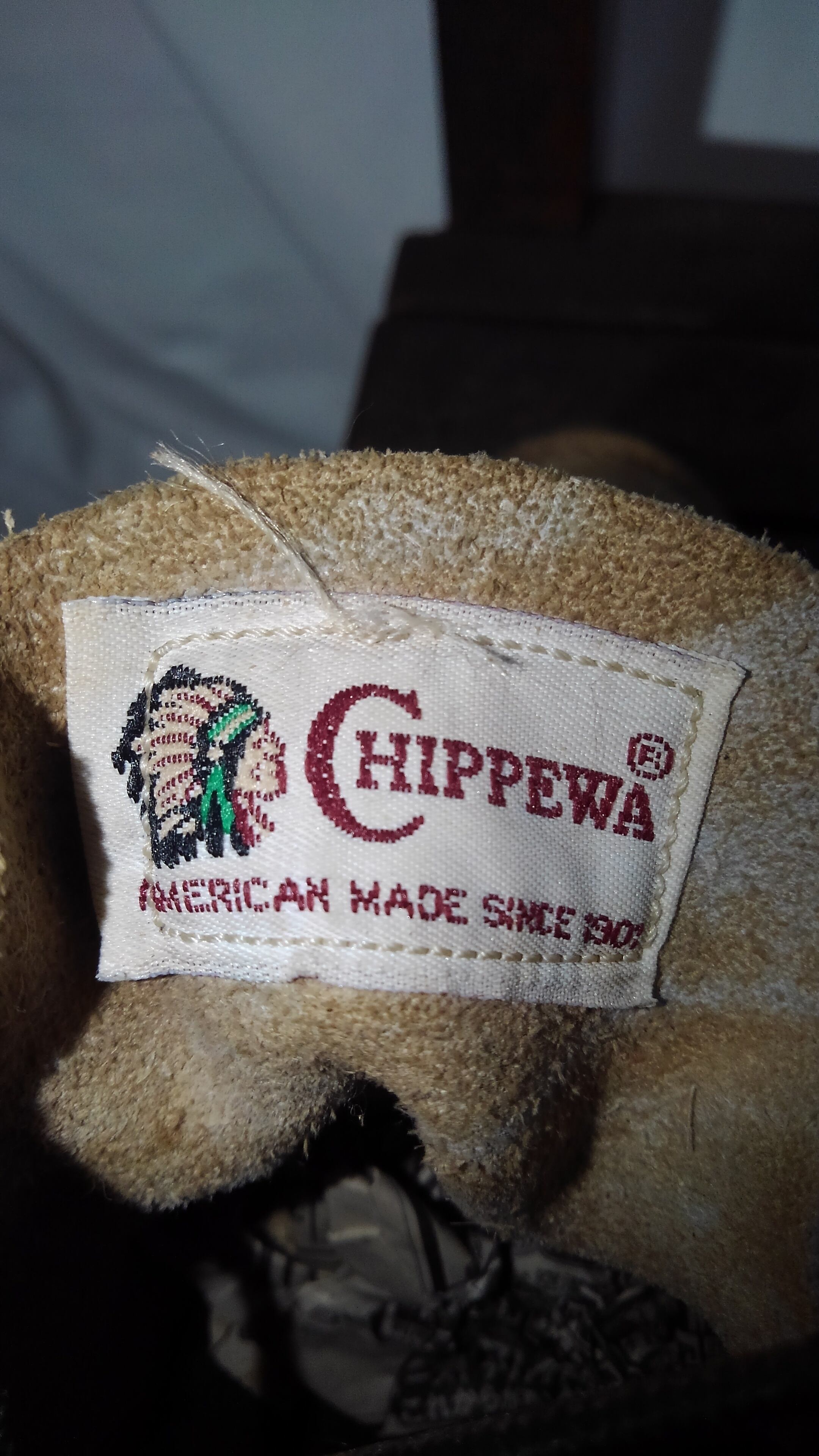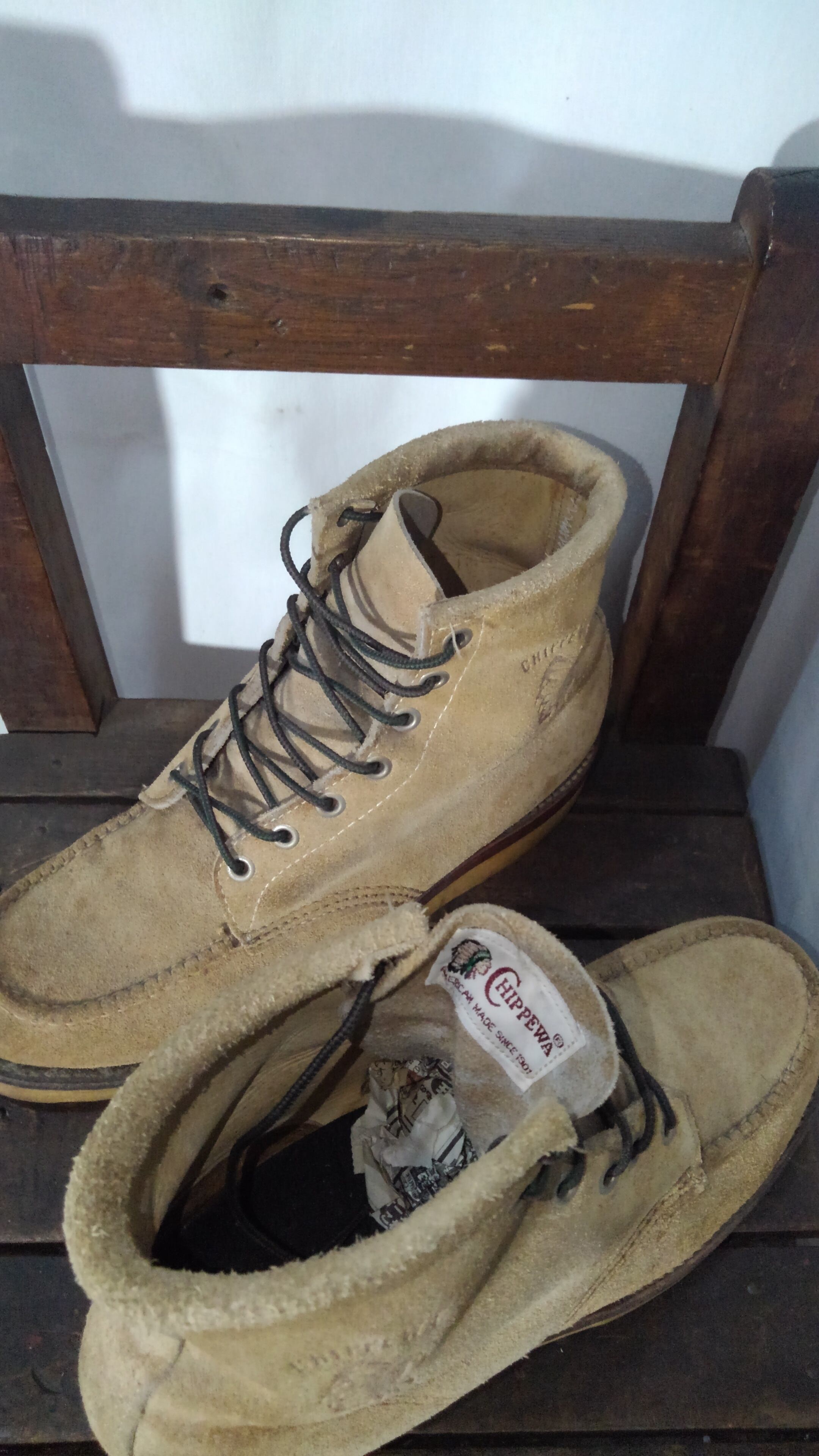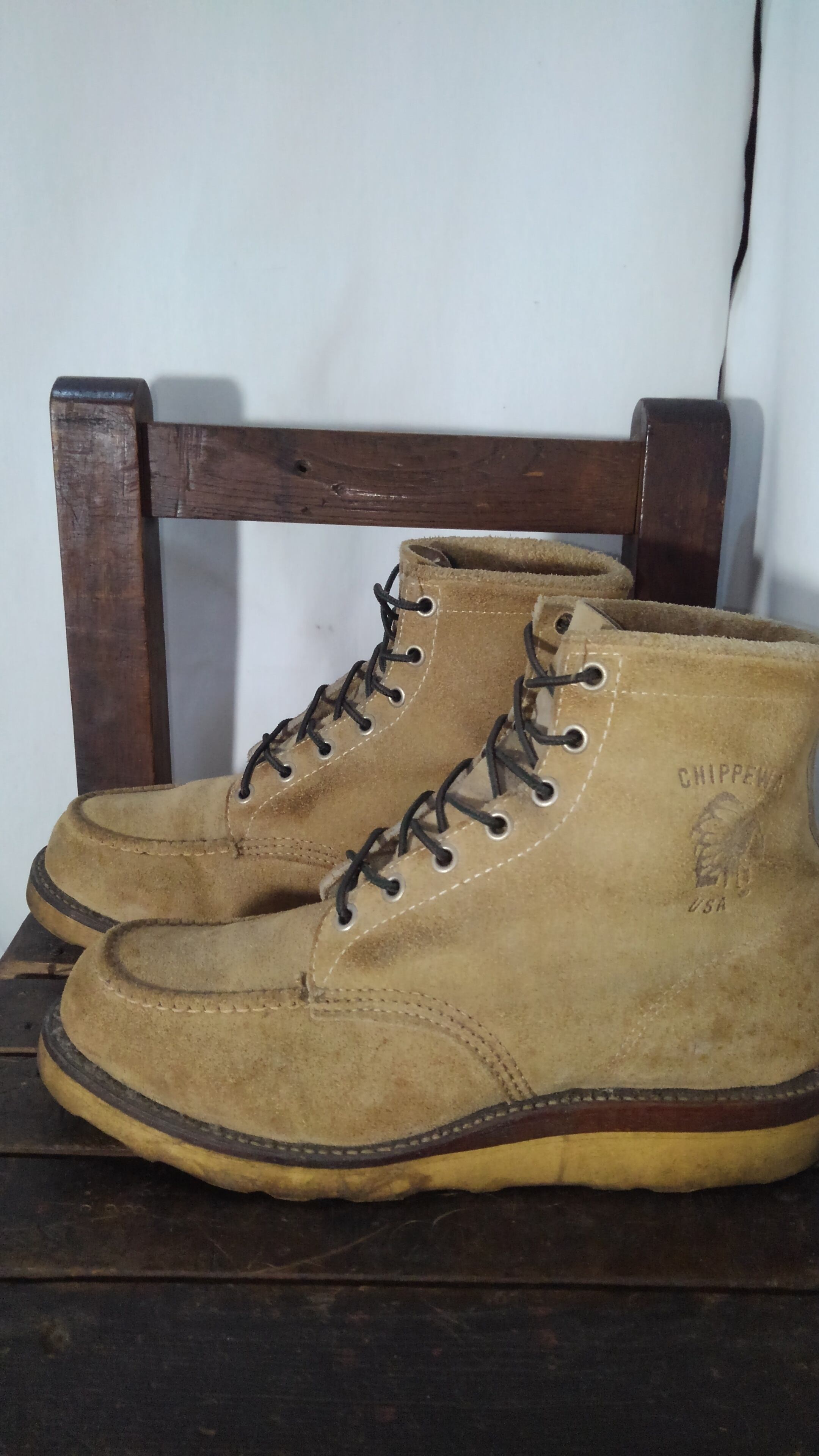 90年代頃の初期の白タグが付いたチペワのスエードモカシンブーツです。