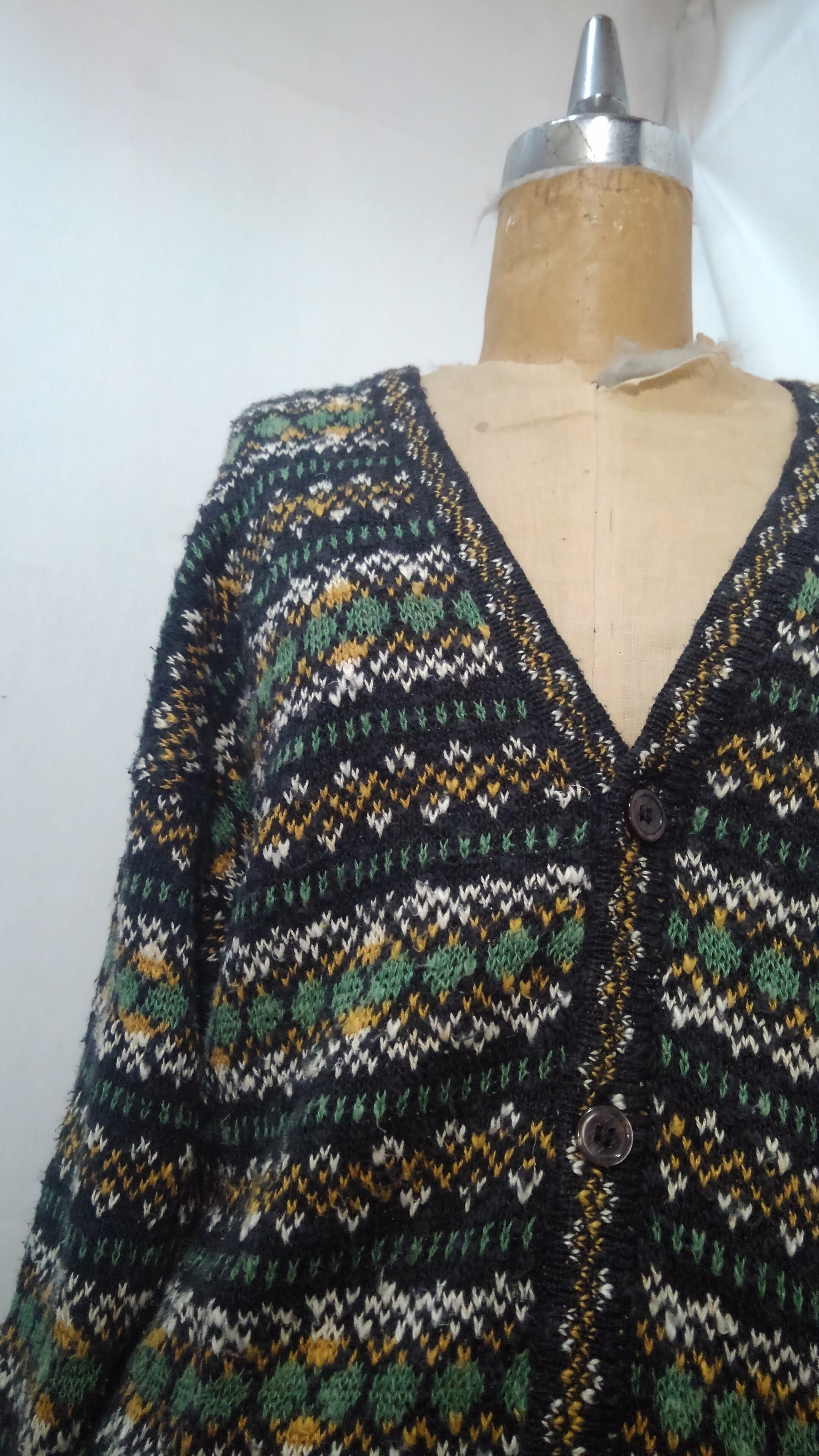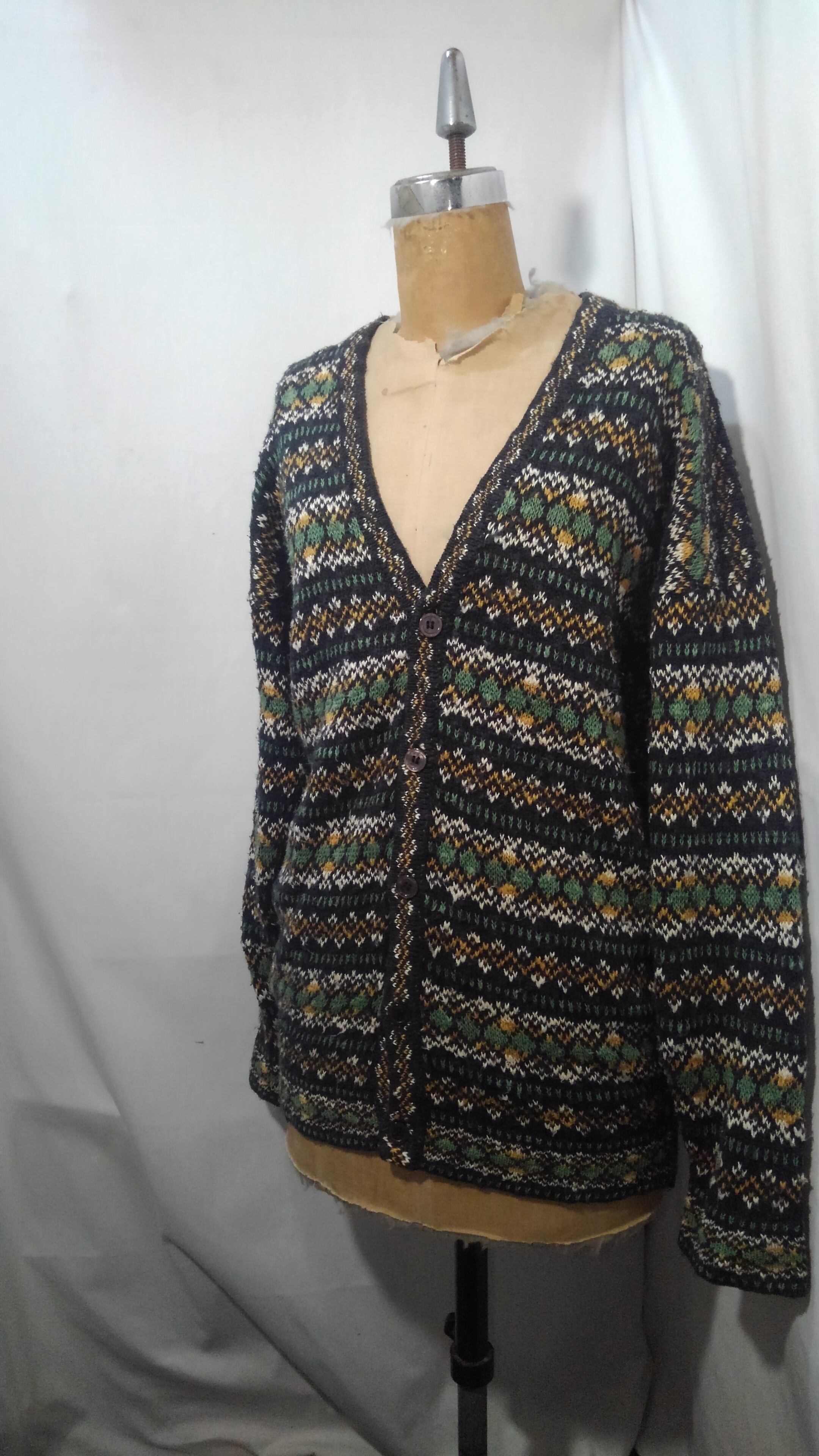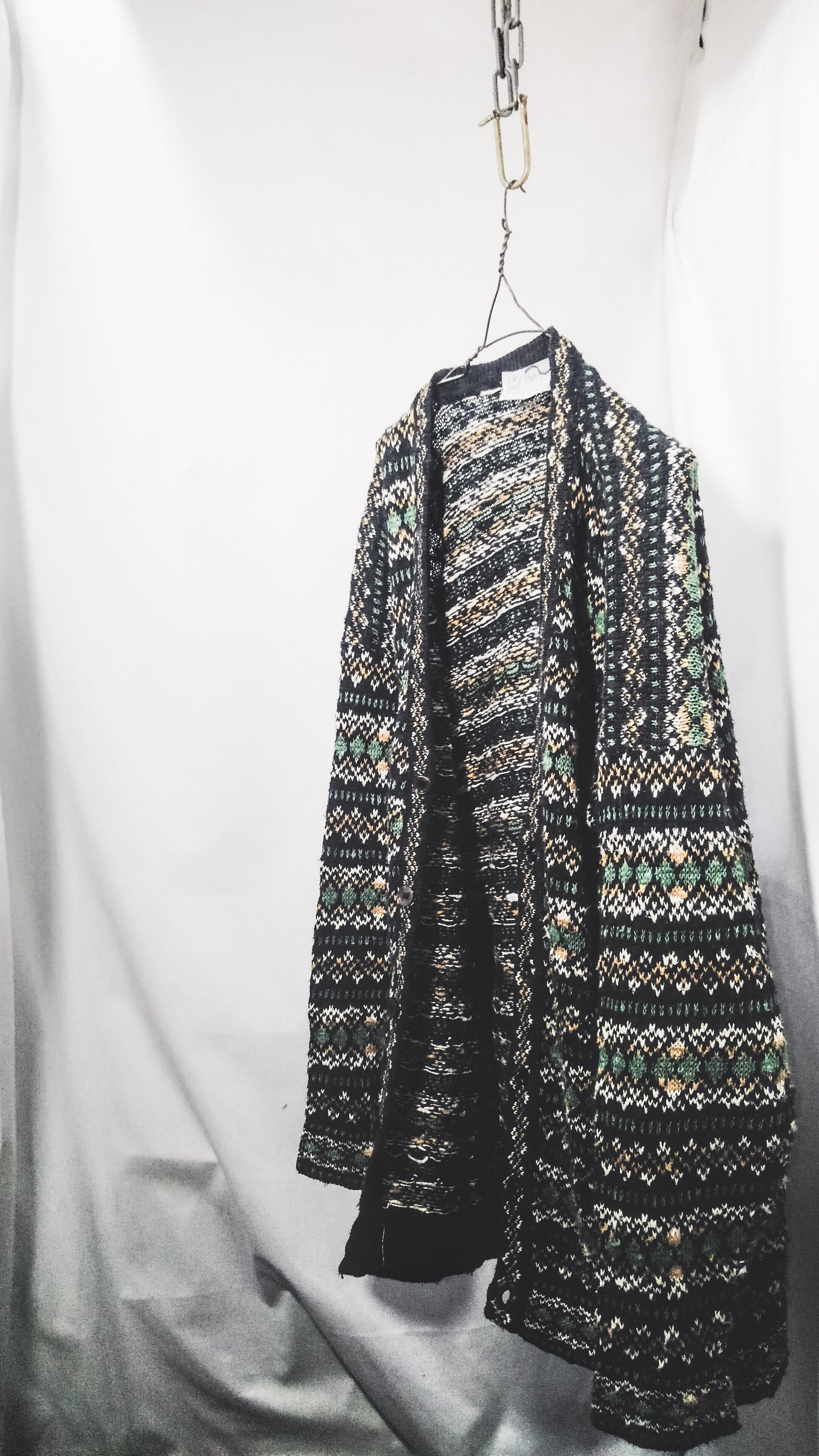 インバーアランと言えば無地のフィッシャーマンズセーター等が有名ですが、このフェアアイル柄のジャカード織りのカーディガンタイプは中古市場でもなかなか見かけないのではないでしょうか?