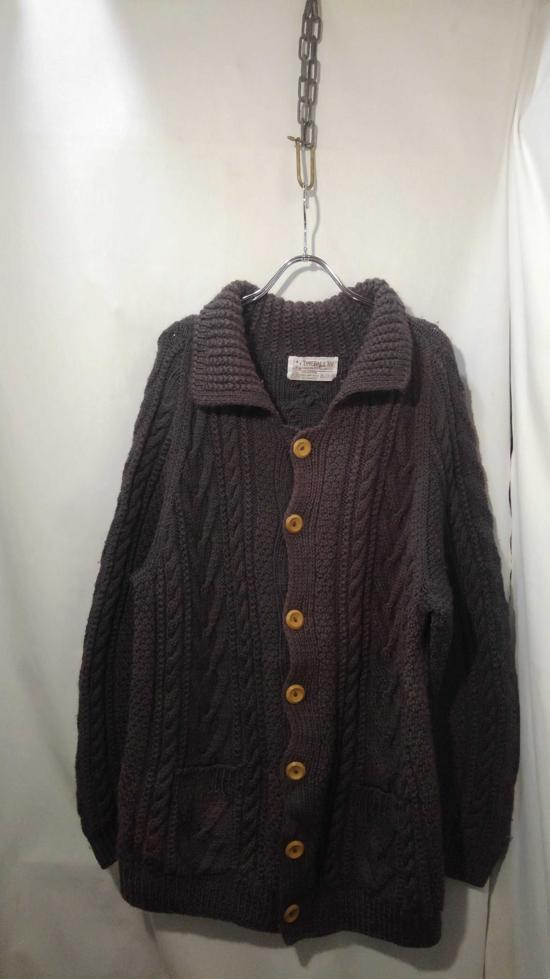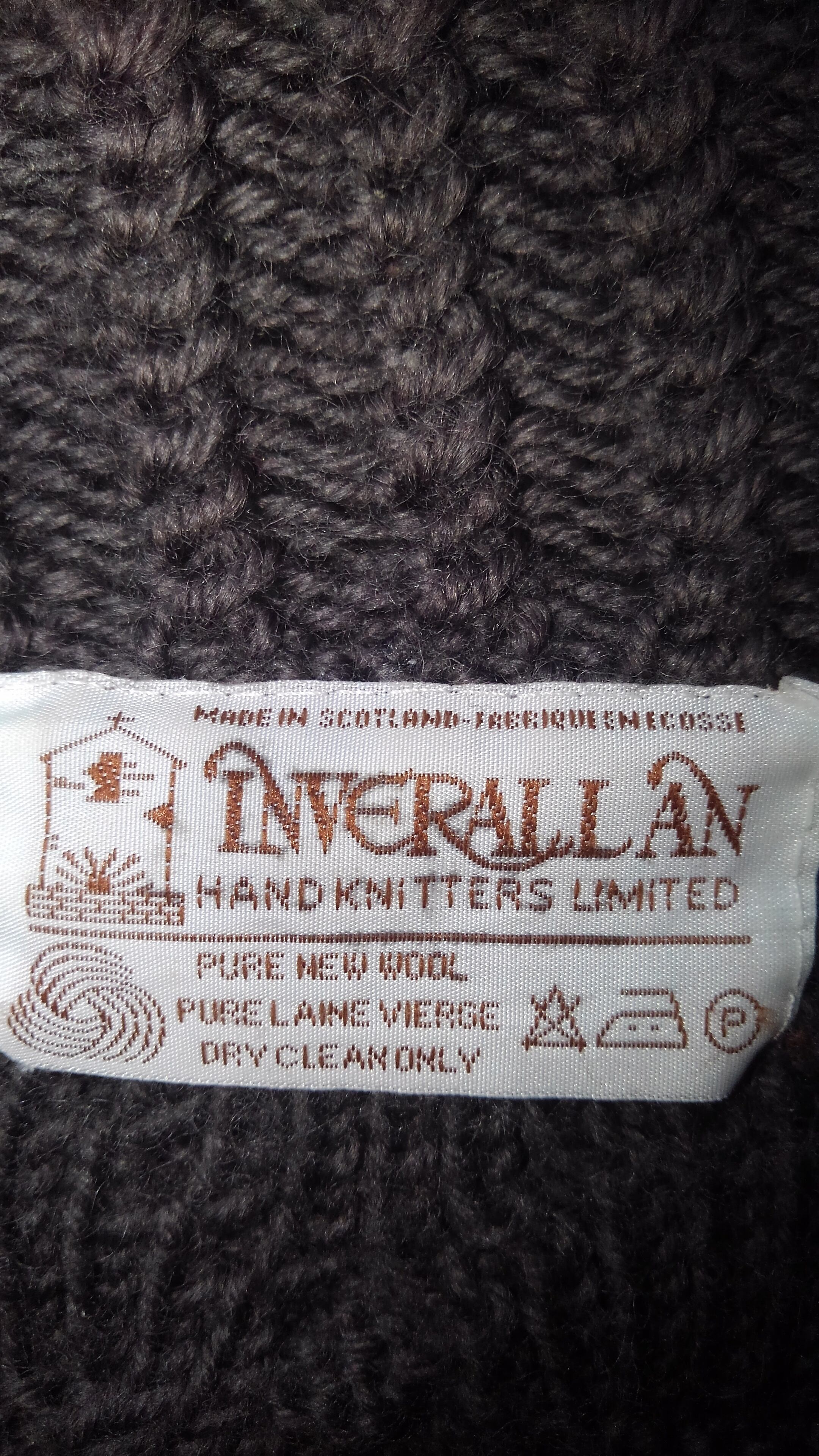 インバーアランに登録されている3000人程のニッターの中でも、Aランクのニッターが織ったものにつくのがこの茶色のタグが付くなんて噂もあり、一着に対し約90時間程、なんとおよそ25,000回以上編み込むことにより誕生する完全ハンドメイドの逸品。