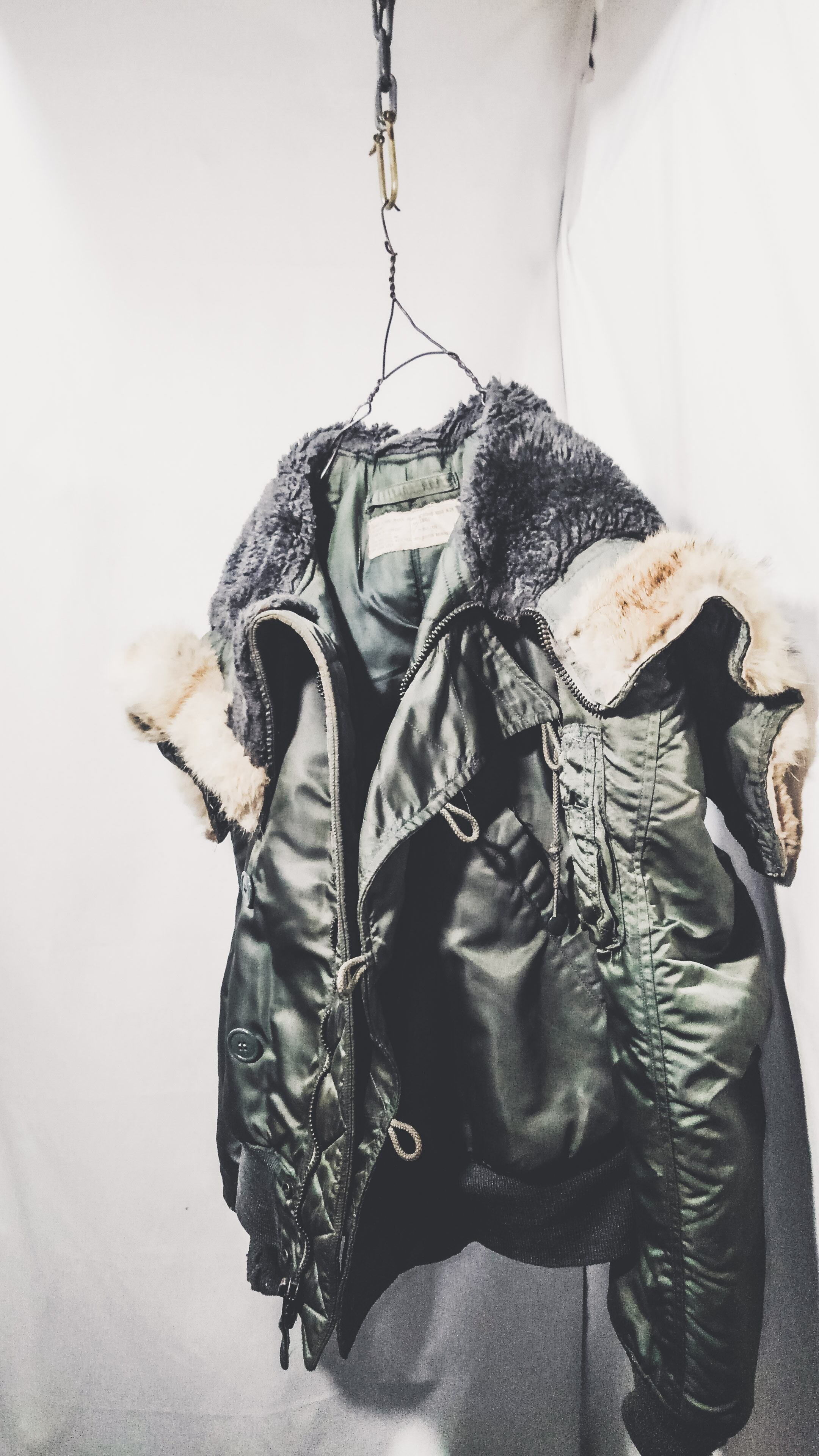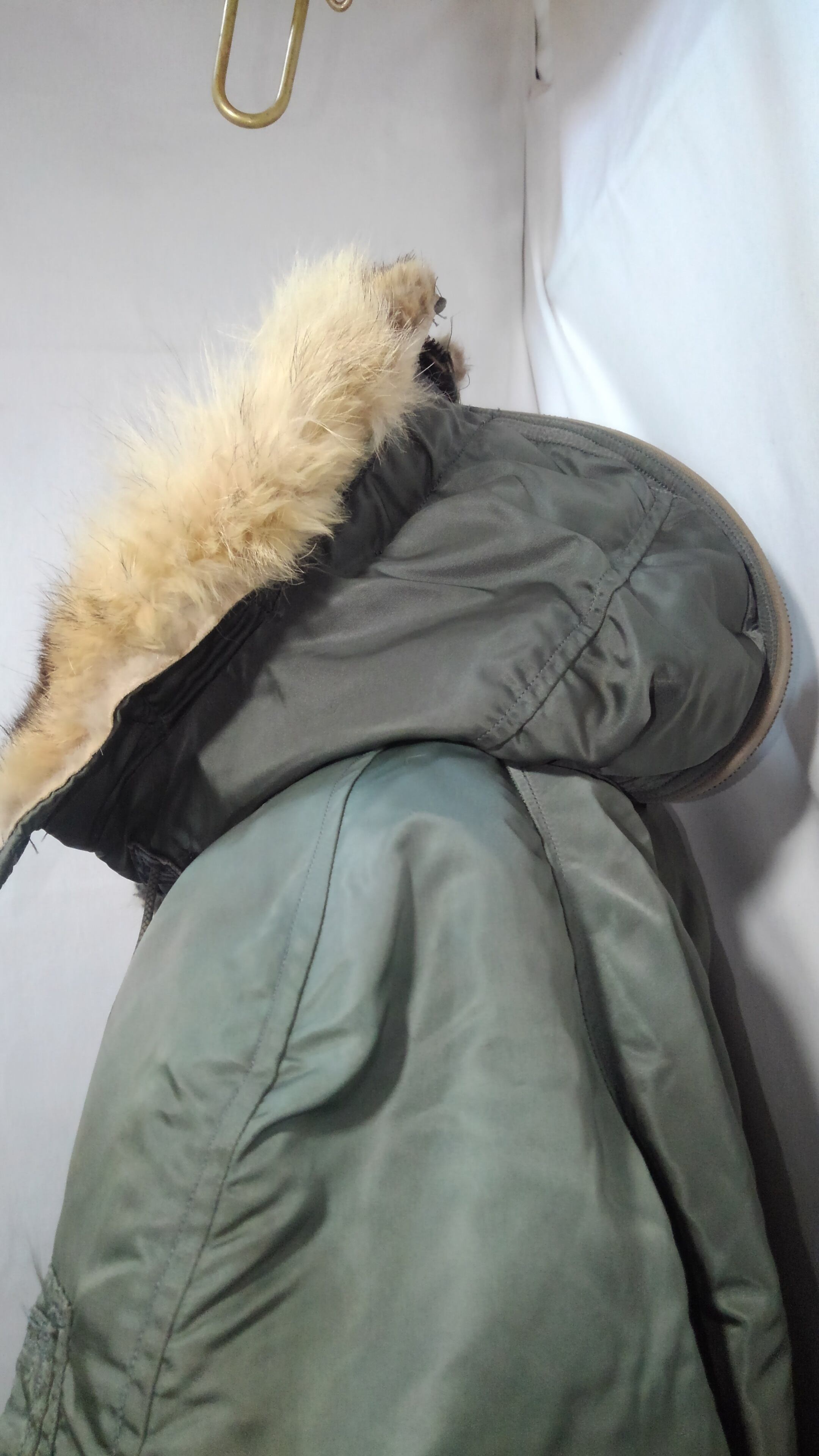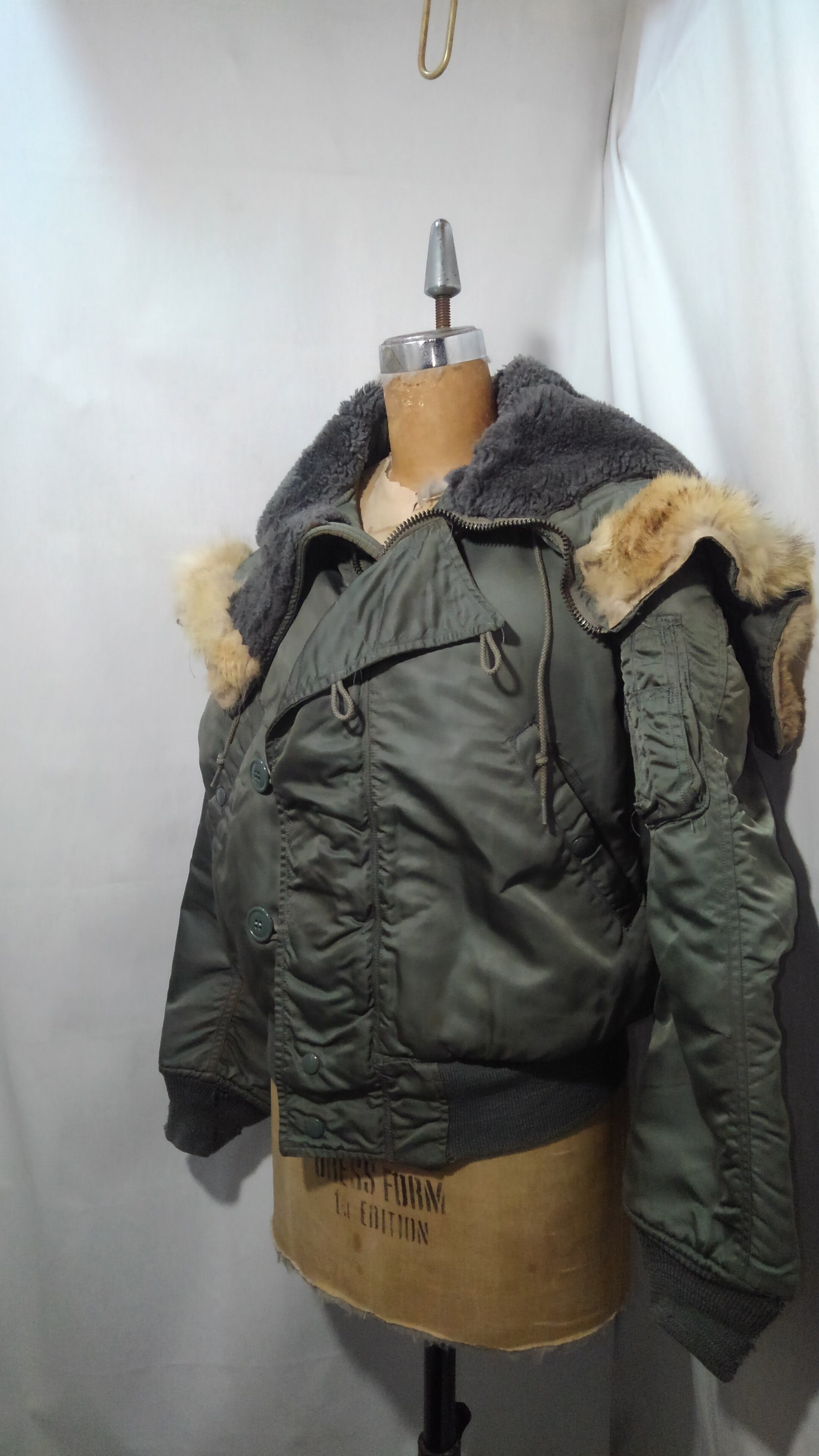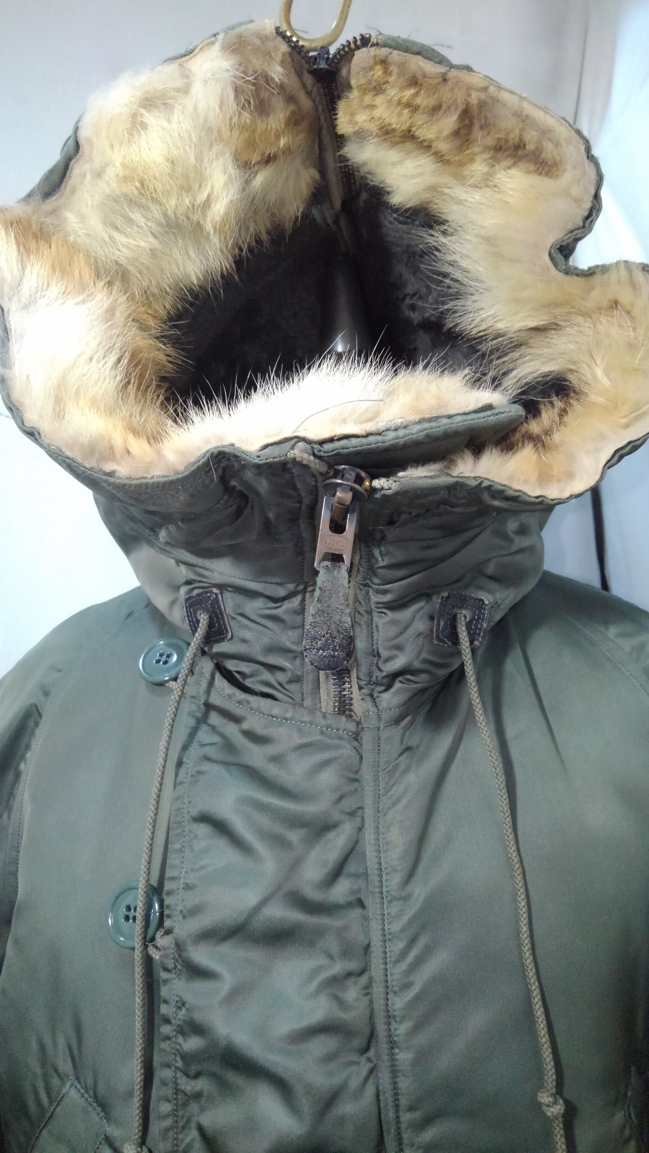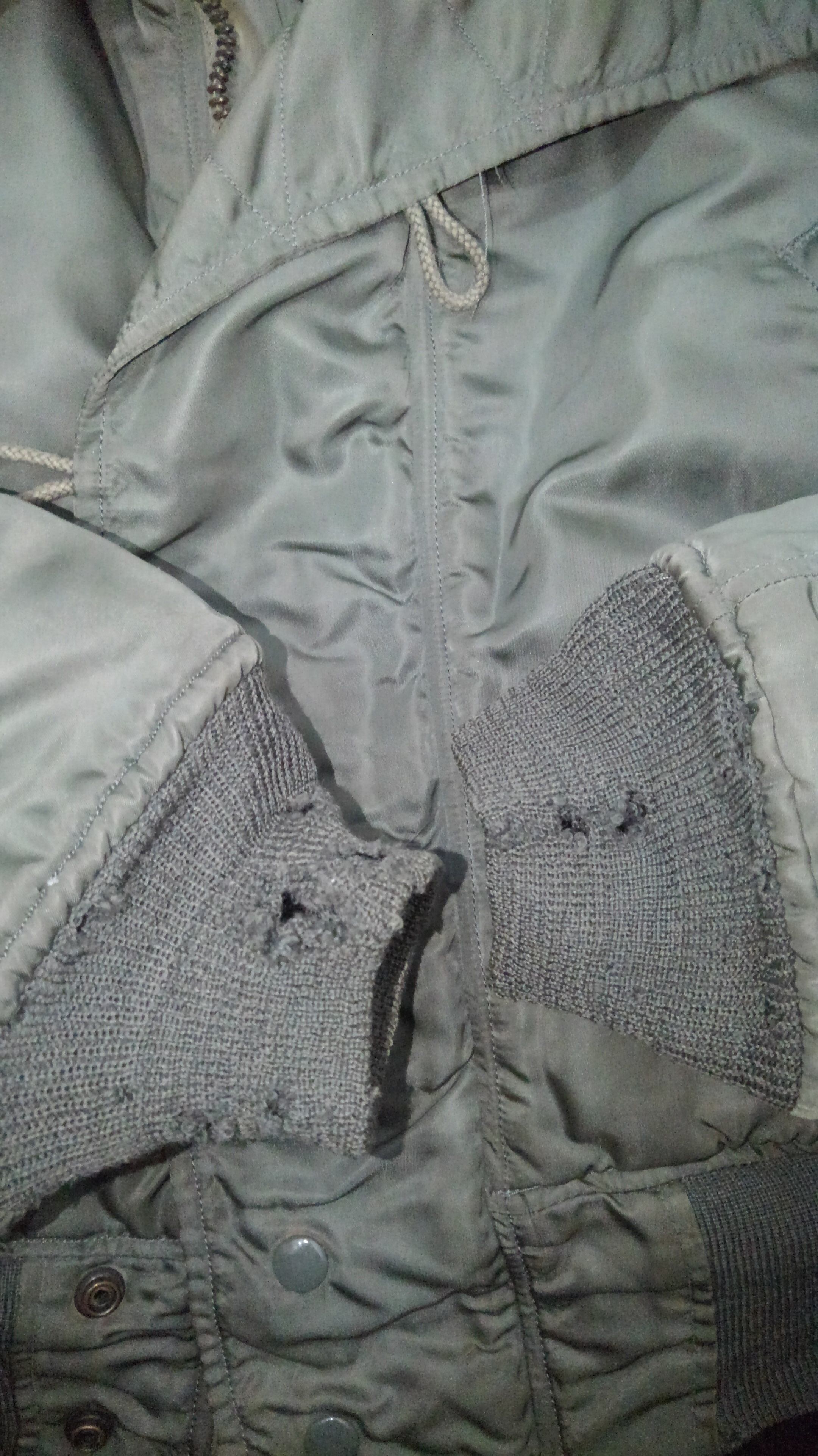 状態は袖 胴リブに小穴があり特に袖リブは比較的大きな穴があります。コヨーテファーも多少短くはなっていますが、毛並みは綺麗な状態。他には特に目立った汚れやダメージもなく着用に支障はないかと思われます。