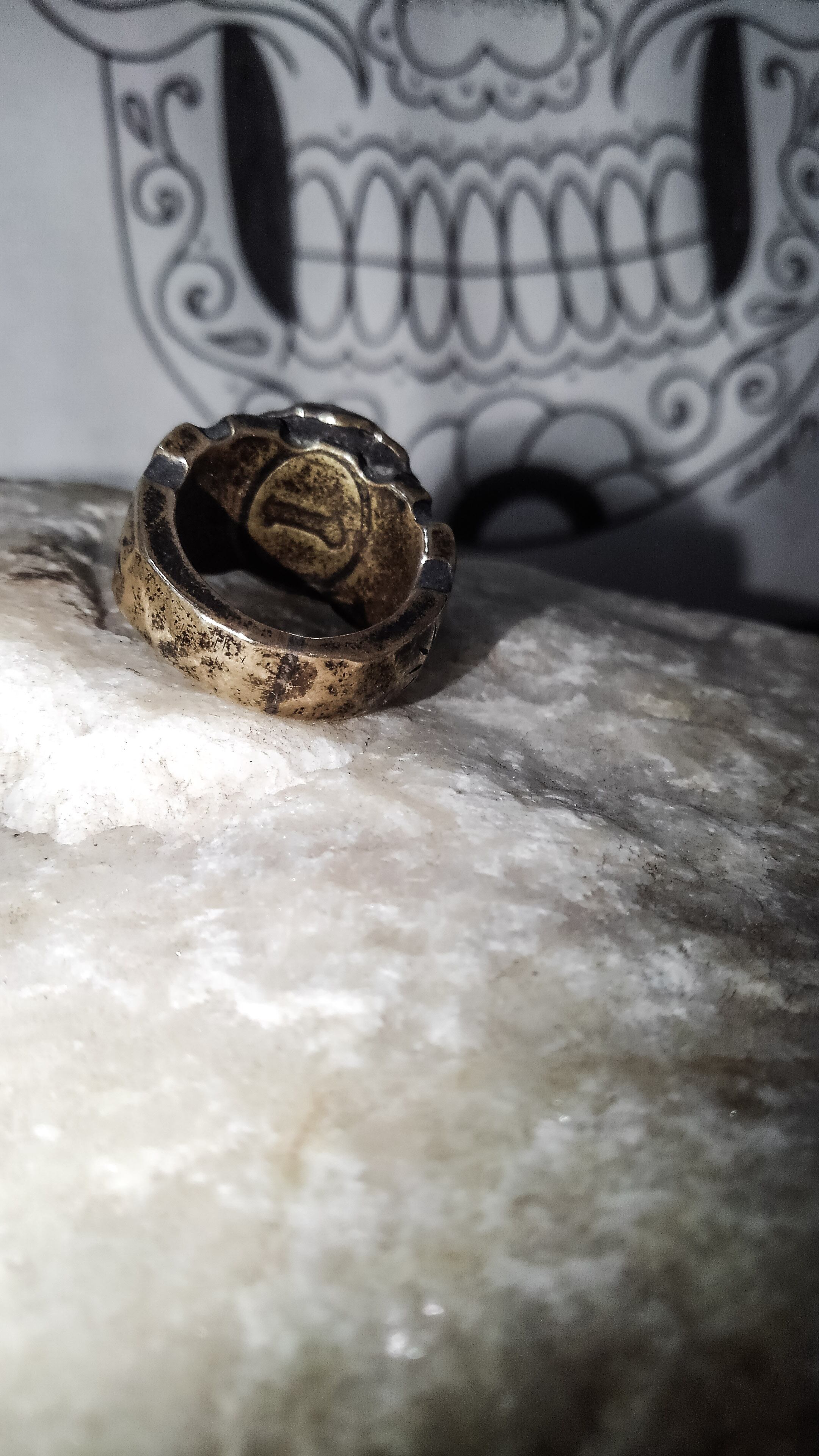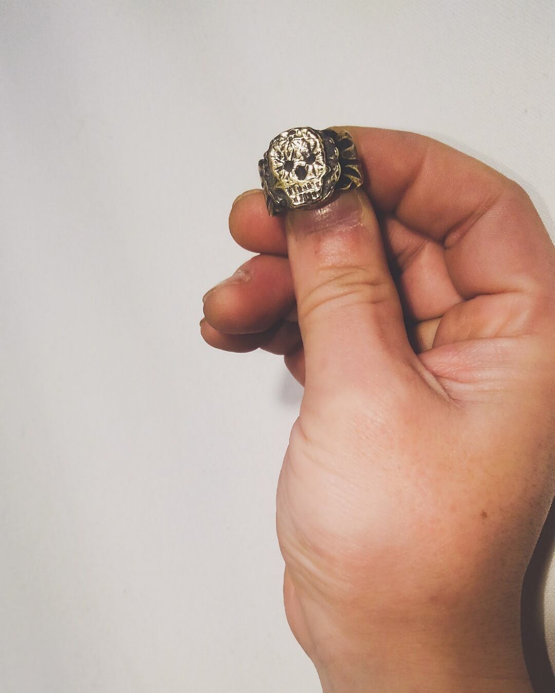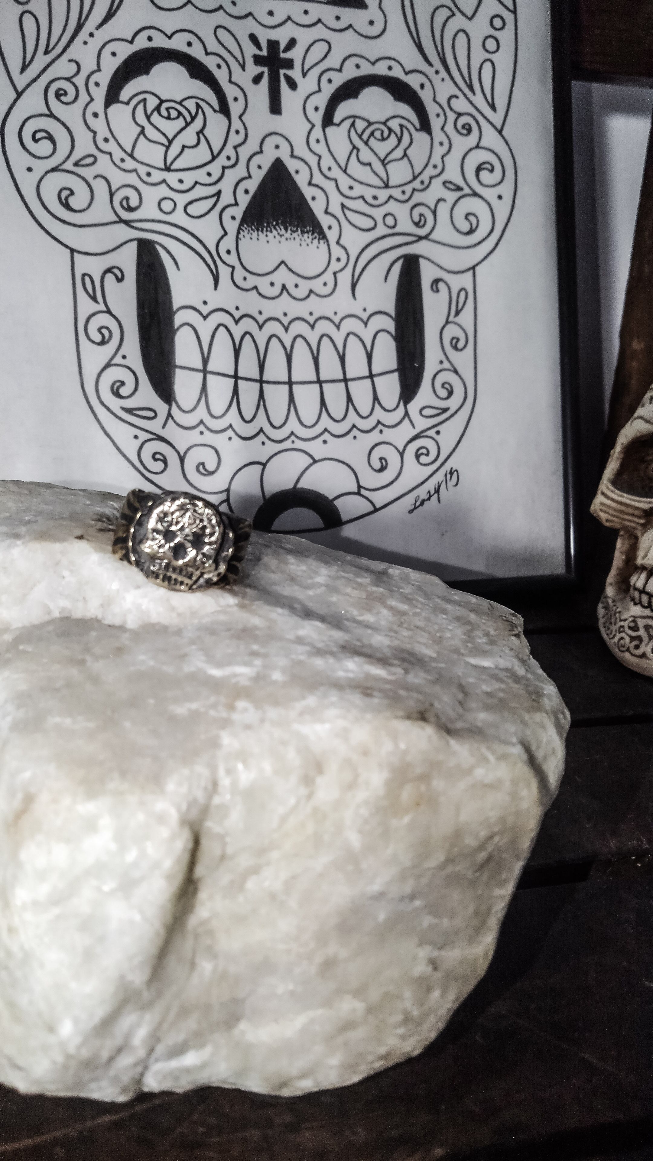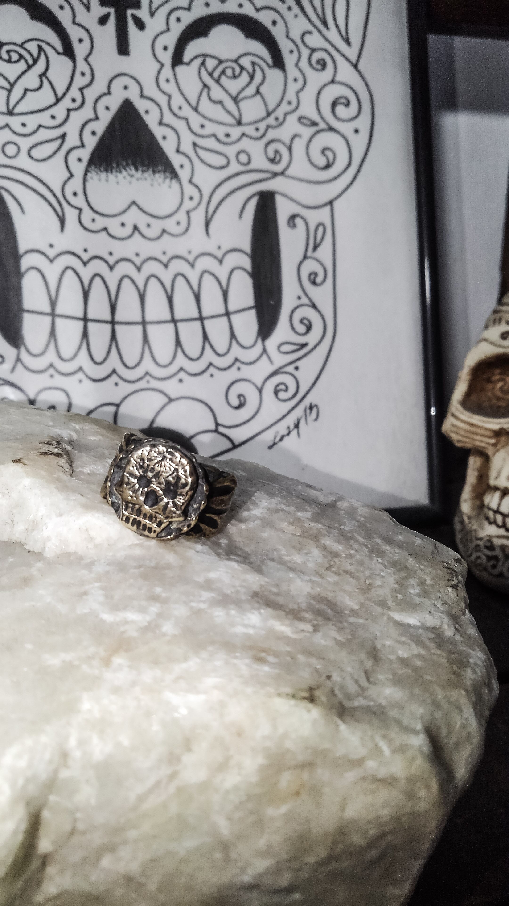 Brass hand made ring sugar skull BK