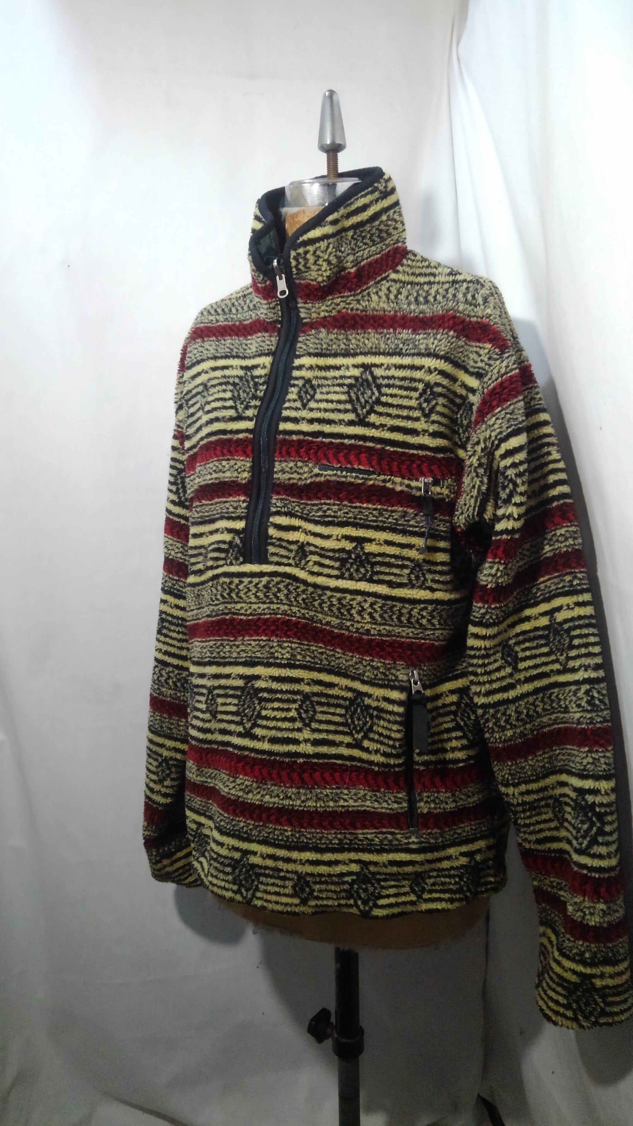 90年代頃のパタゴニアの名作ハーフジップグリセードです。パタゴニアの中でも多くの名作が輩出された94年。当たり年と言われる由縁の一つがこの『グリセード』ではないでしょうか。中でもこの"ブルズアイ"は古着好きの間では人気の高い柄です。