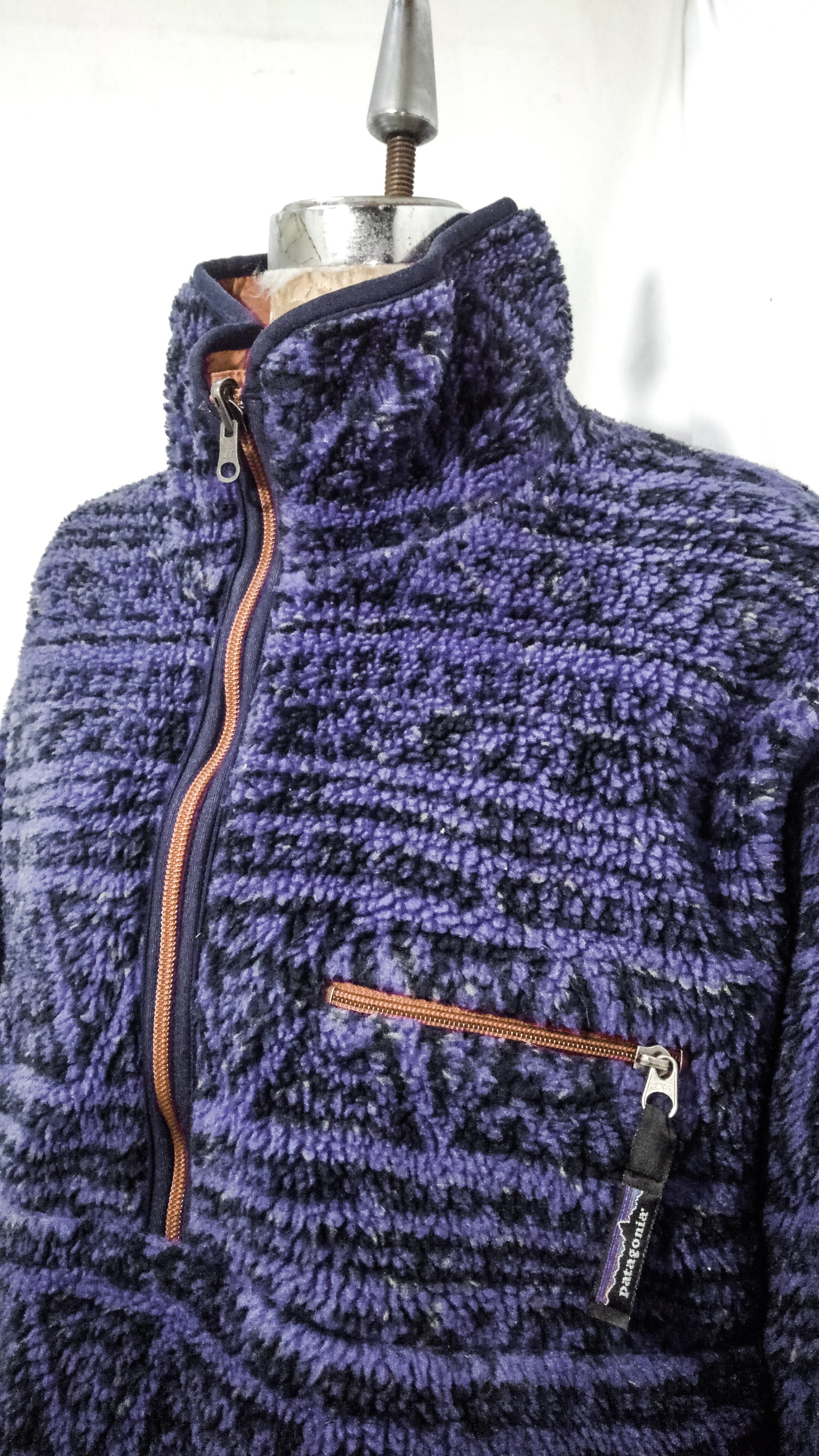 90年代頃のパタゴニアの名作ハーフジップグリセードです。枯渇しているグリセードの中でも比較的見られるこの"パープルサラサ"で96年製になります。個人的には柄物グリセードの中では一番普段使いしやすい柄かと思います。