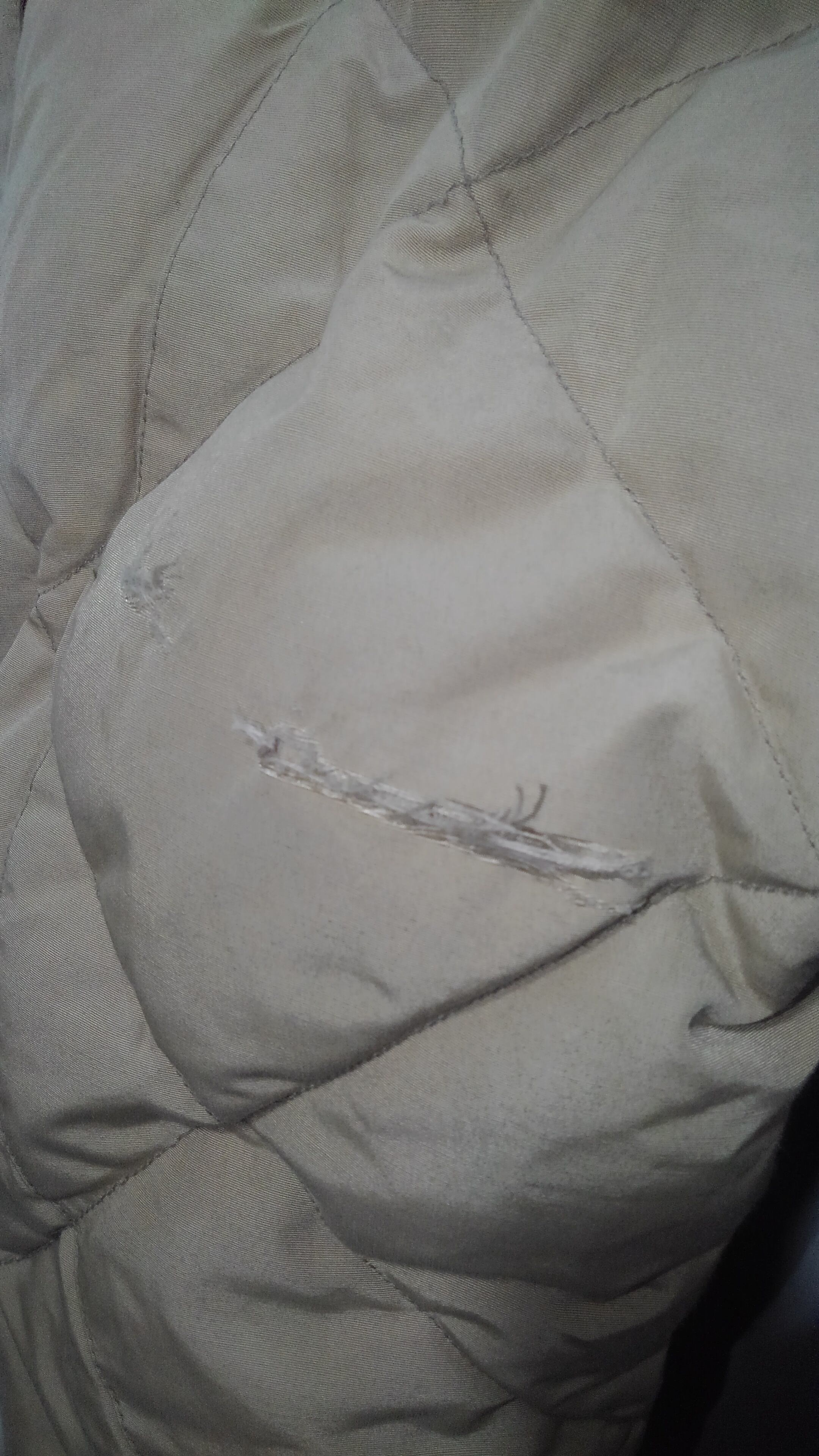 左腿裏付近に引っ掻き傷がありますが、ダウンの抜けも無く裾のリブもしっかりと健在です。