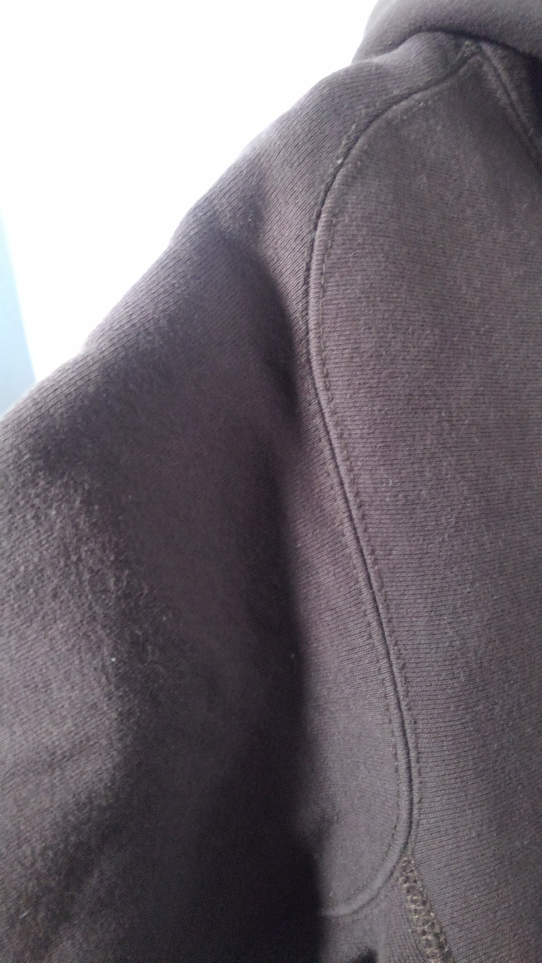 全体的に使用感があり数ヶ所色抜けがございますが、リバース特有の裾リブのクタクタ感はなく、わりとしっかりとしています。