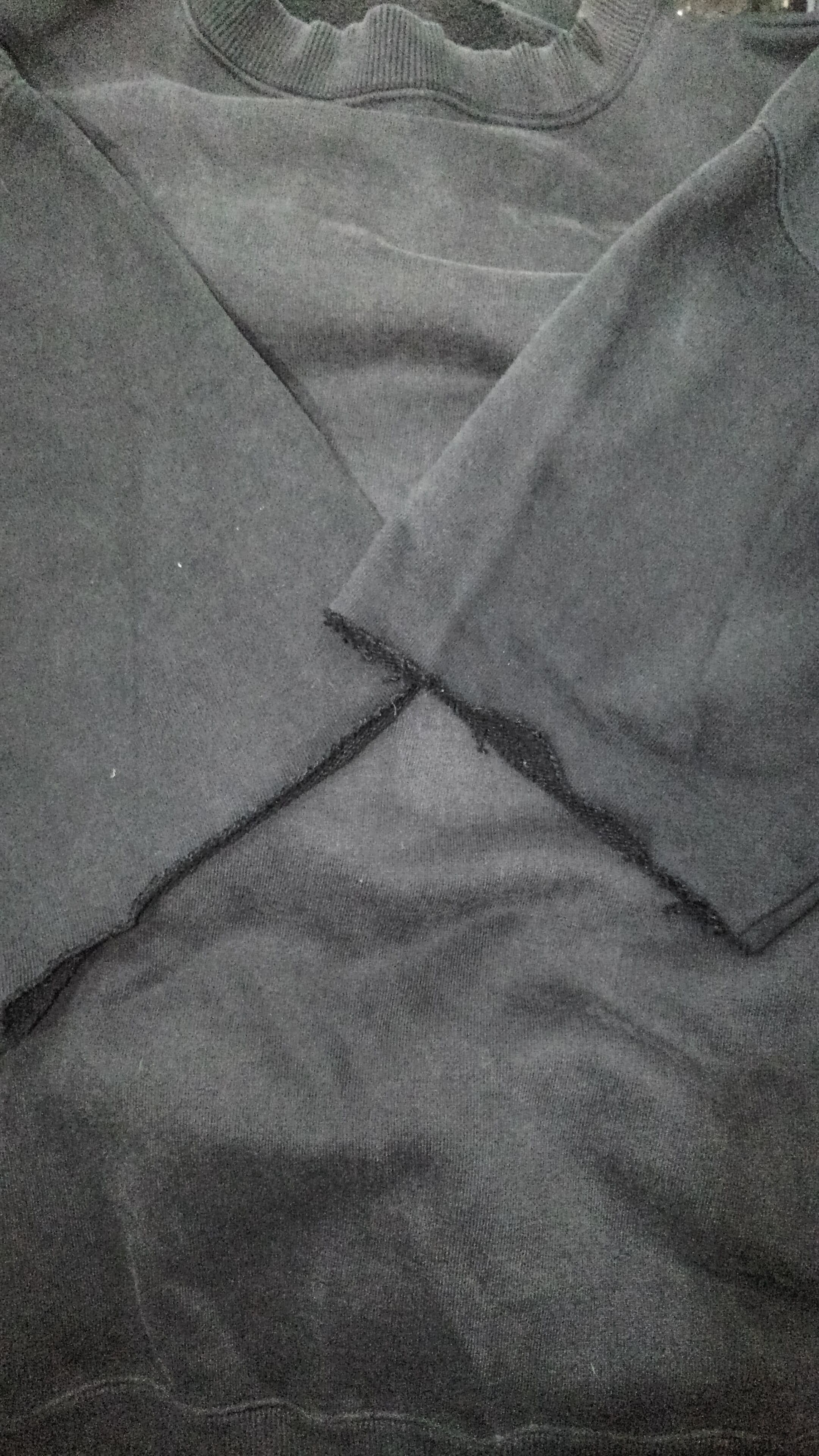 無地のブラックなので脱色したりダメージを増やしたり首回りをザックリ切ってボートネックにしたりリメイク素材のベースとして使用しても良いかもしれません。