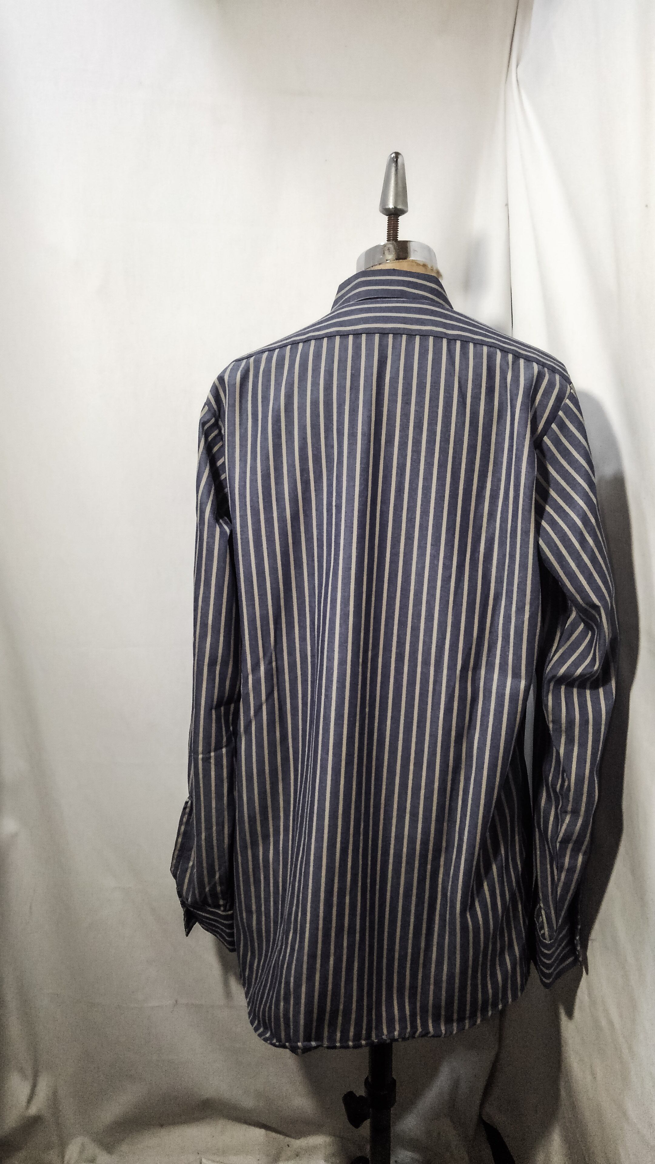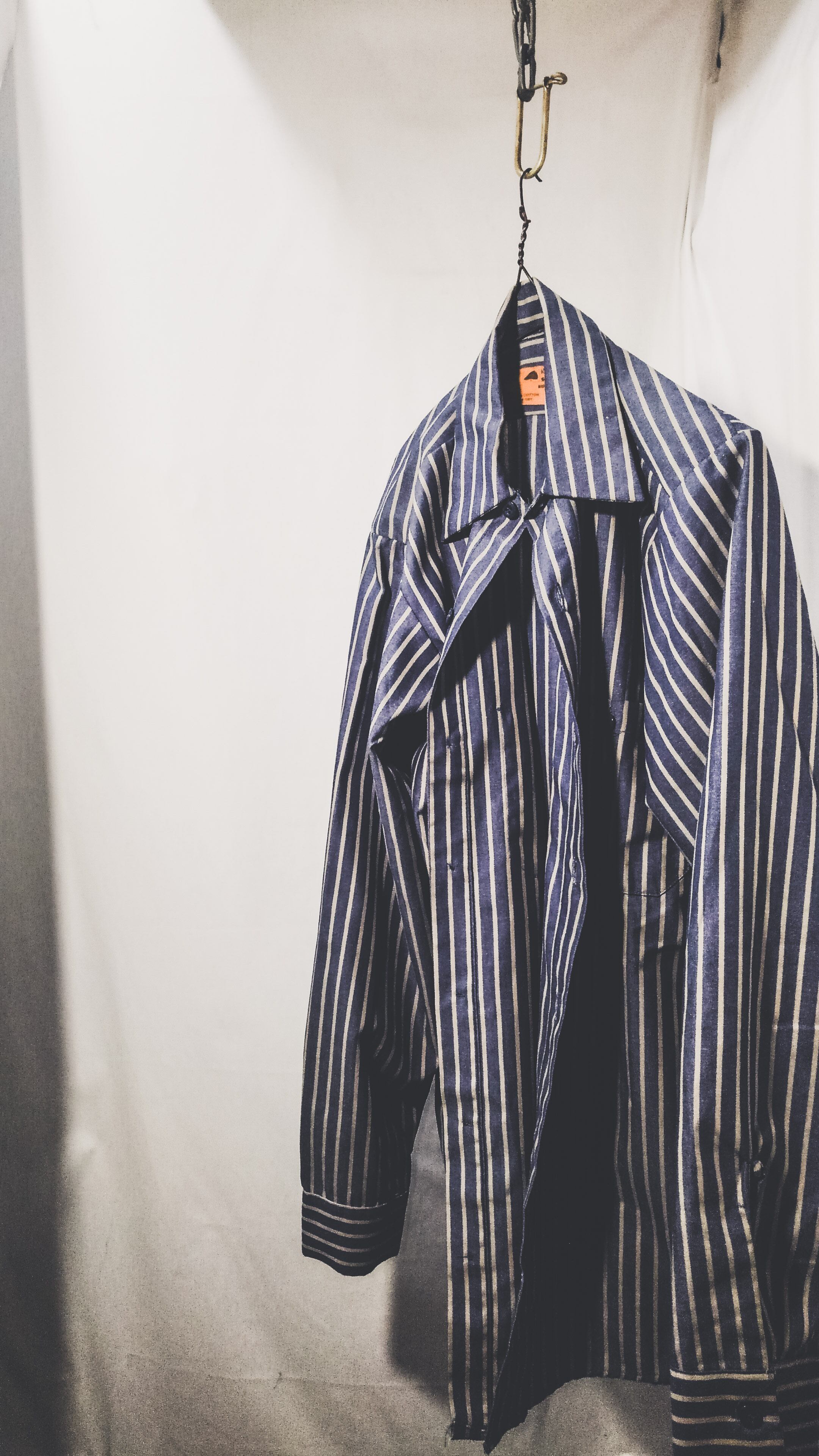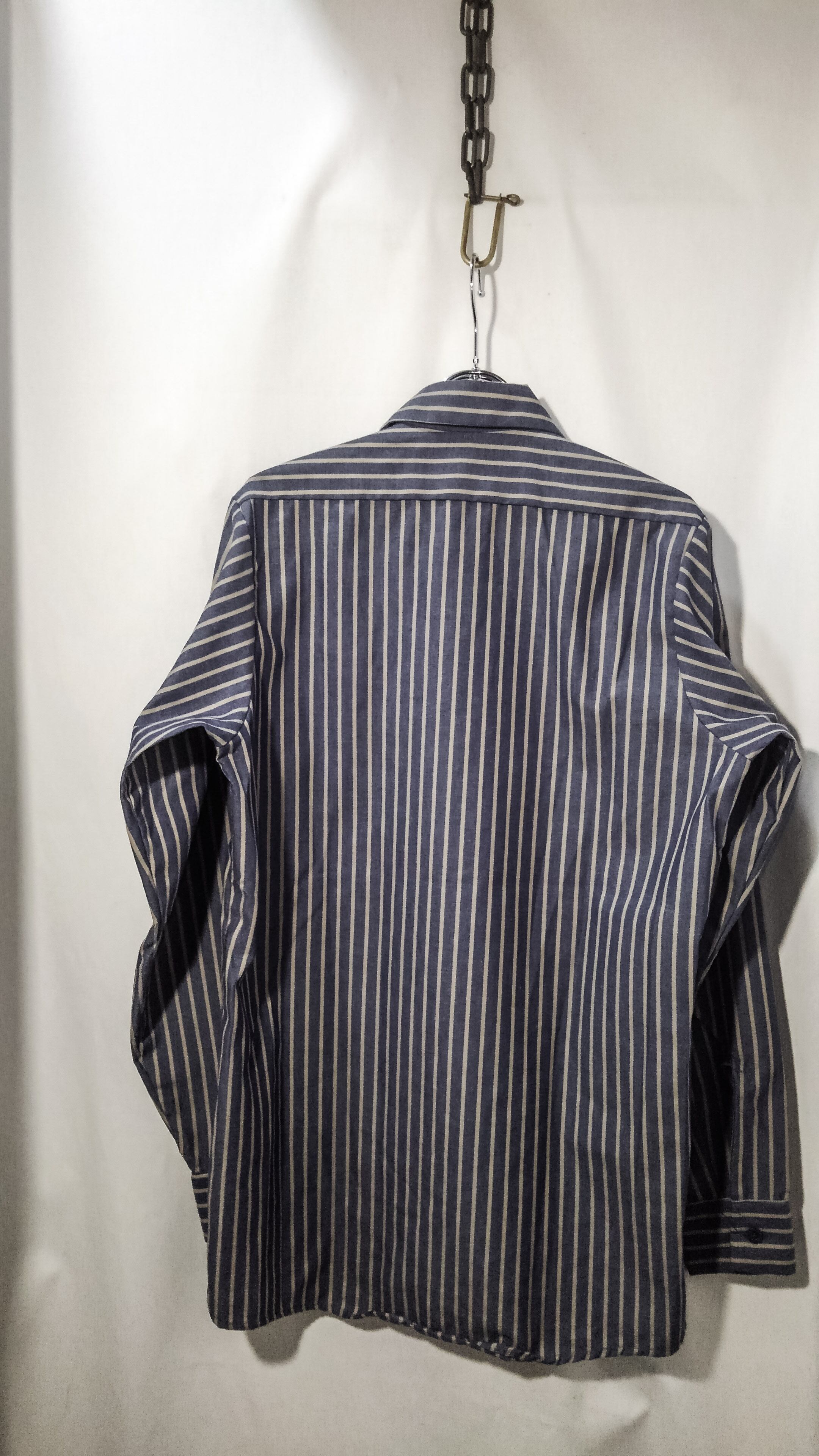 こちらのシャツはブルー×グレーのブロックストライプのくすんだ色合いで毎日の様々なコーデのアクセントとして使い回しが出来ると思います。
