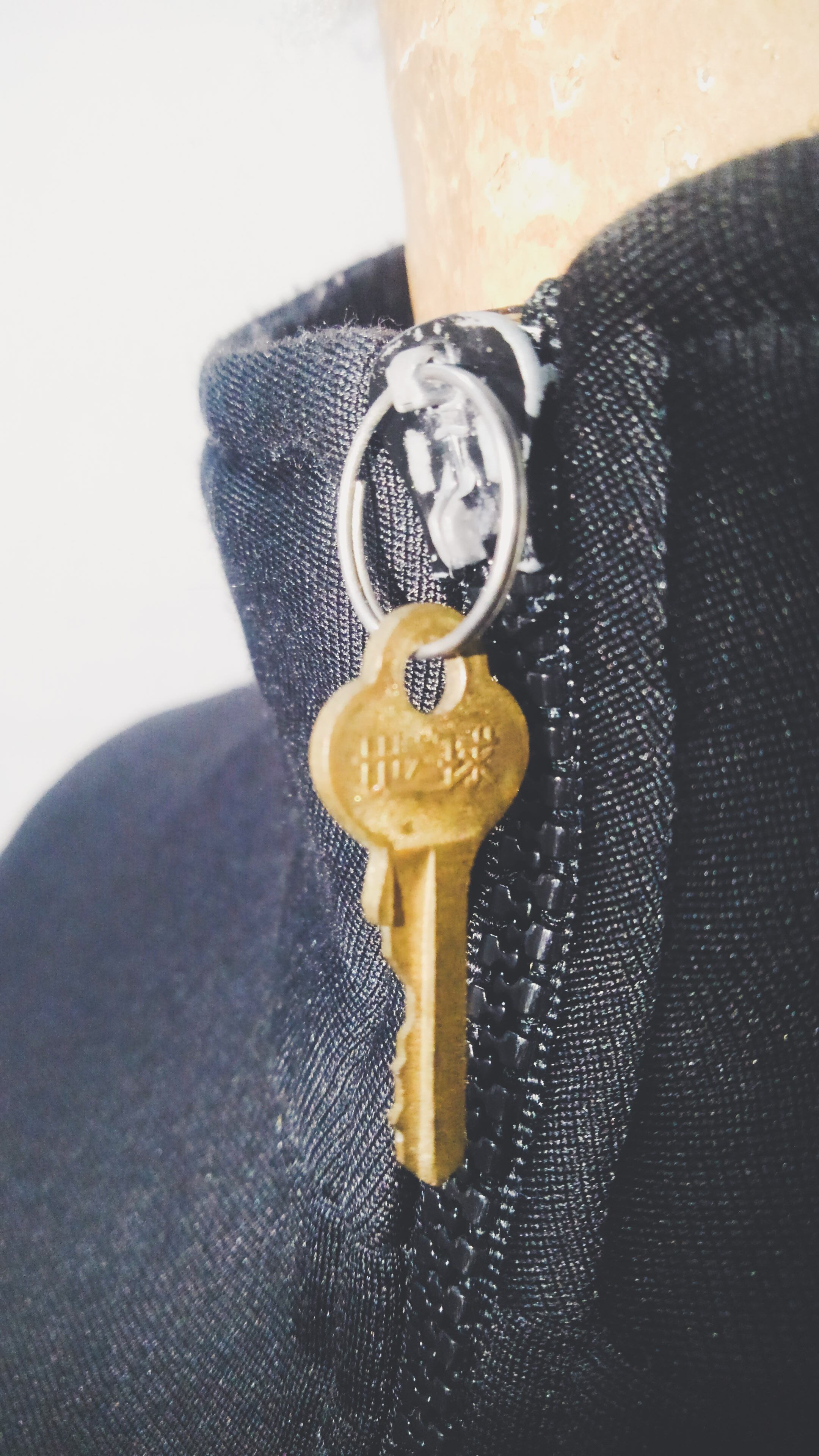 フロントジップのつまみ部分が破損していますが、代わりになぜかアンティークキーが付いていて、それをつまみに開閉する仕様になっています。