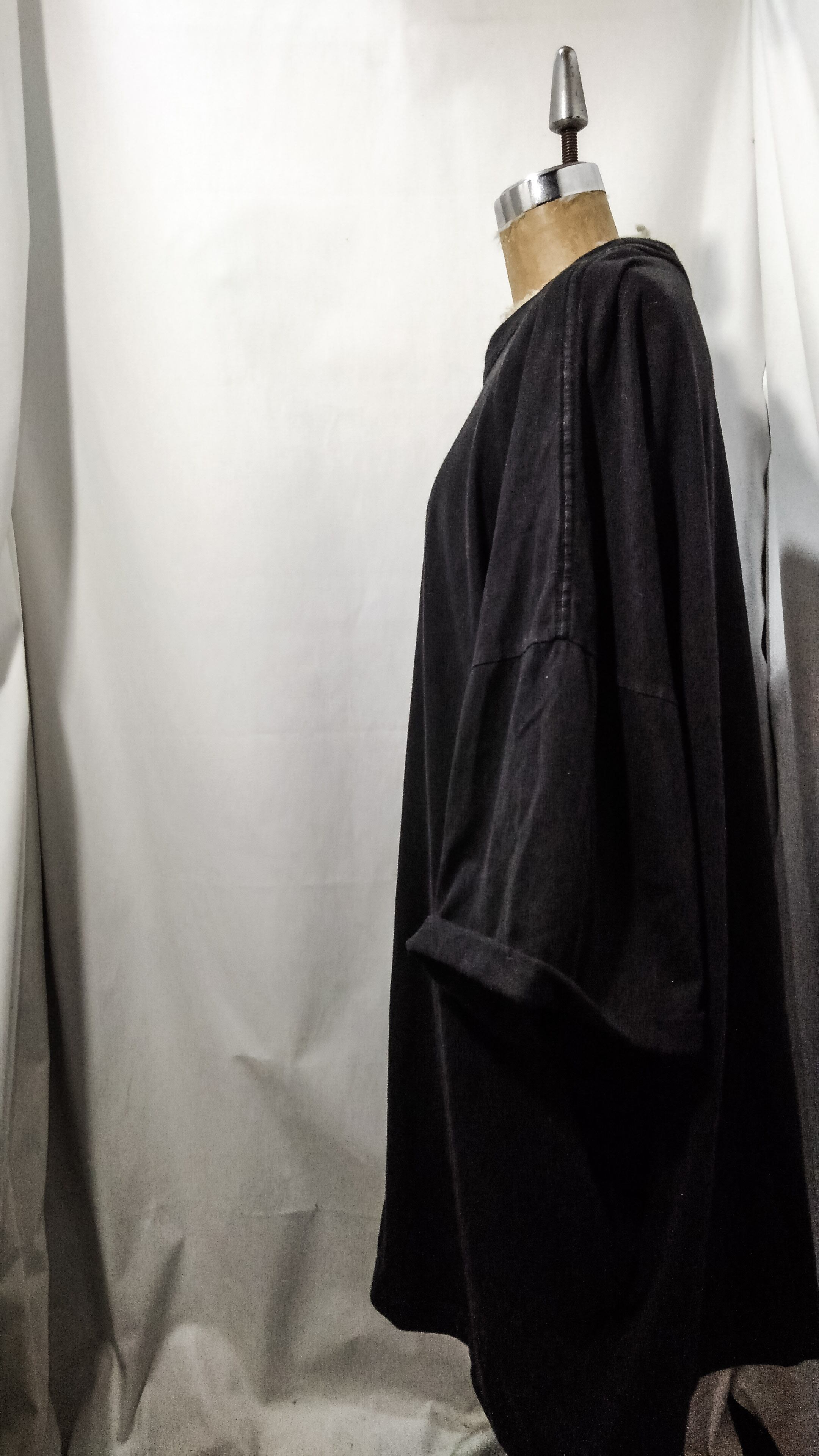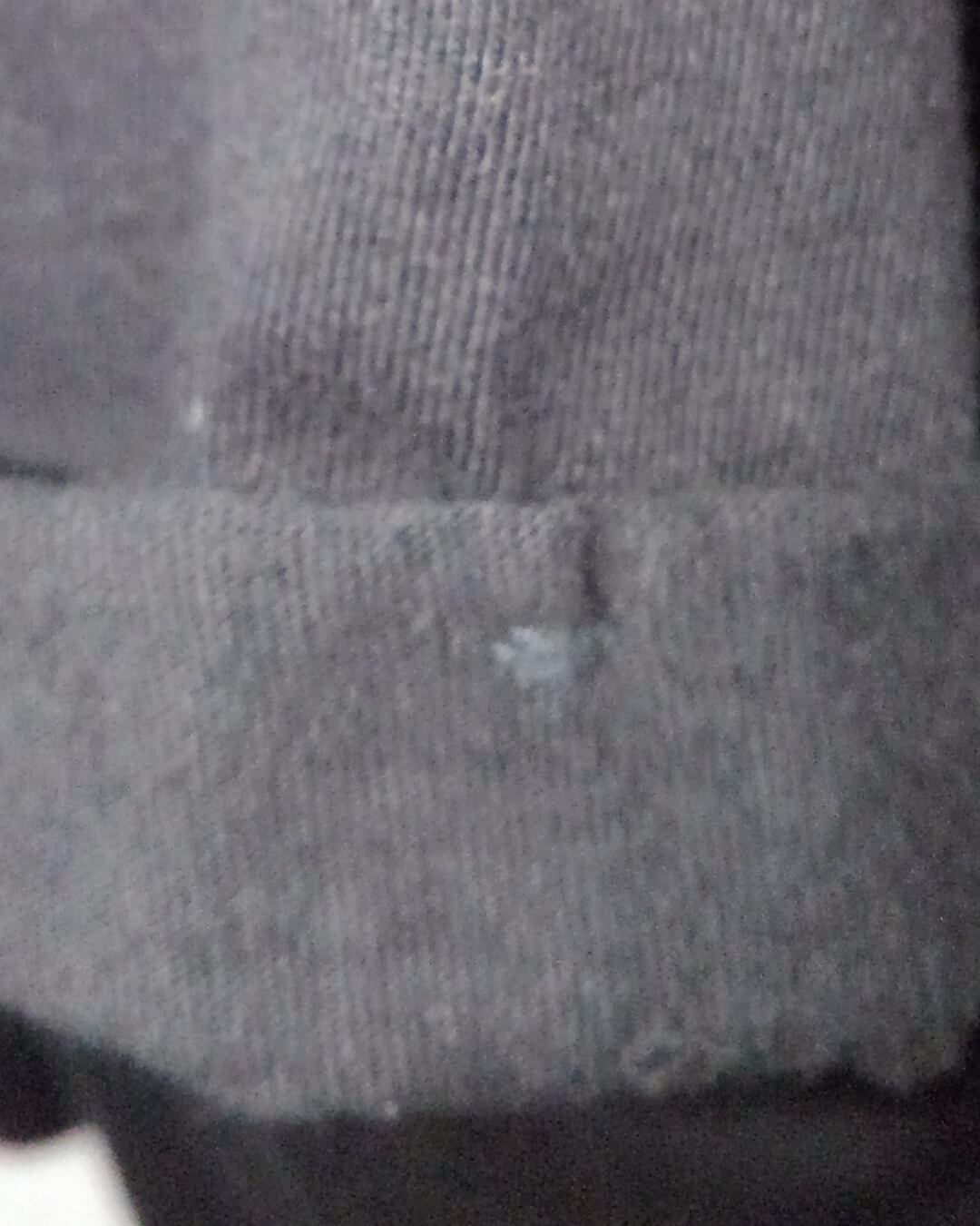 一部、袖部分が捲り上げられ仮縫いされていますが、必要ない方はハサミやカミソリ等で簡単にほどけますのでお好みで調節してください。