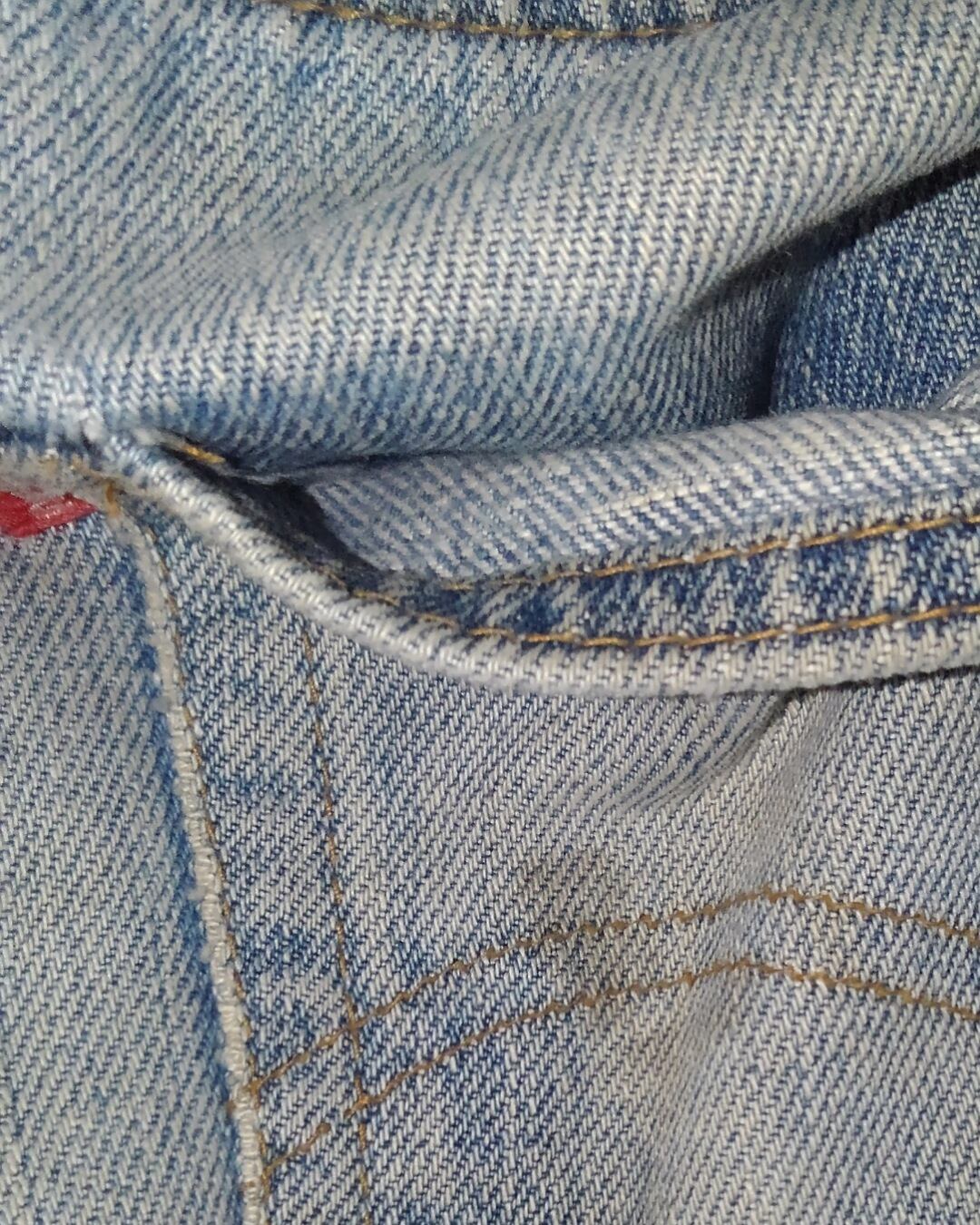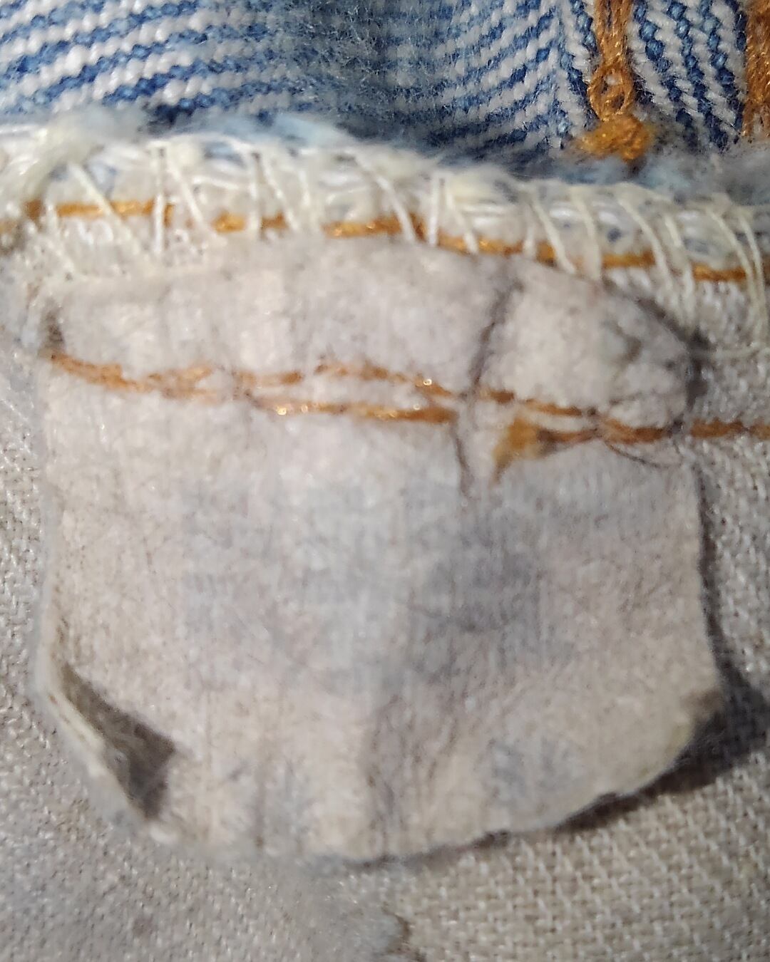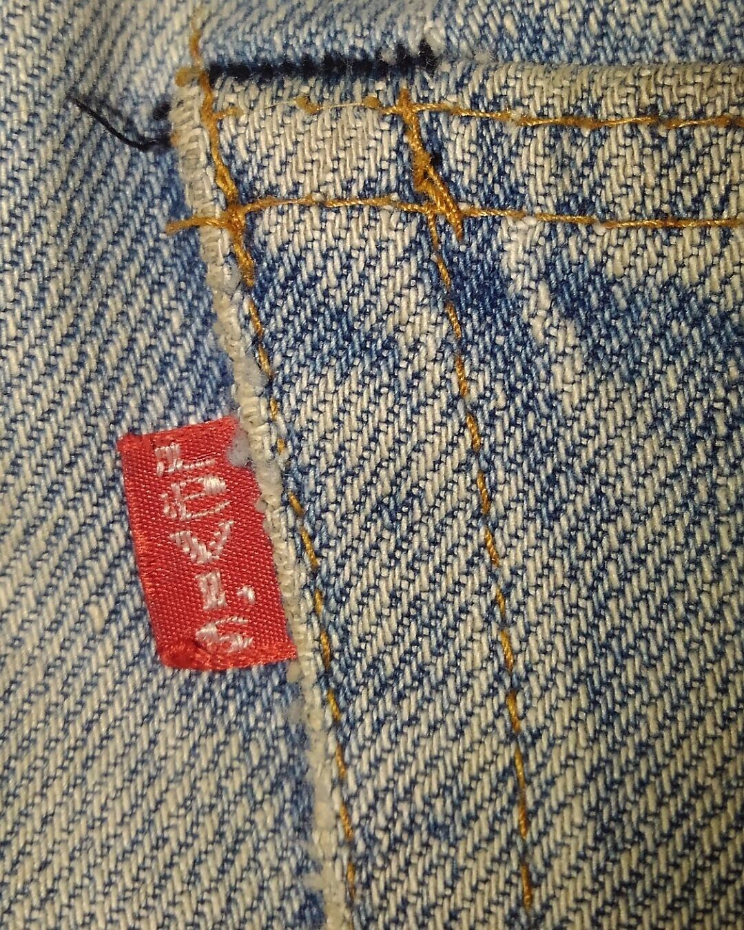内タグの文字はほとんど消えていて解読不可能ですが、赤タブスモールe、バックポケット裏シングル、トップボタン裏刻印「6」と言うディテールから66前期モノと推測されます。