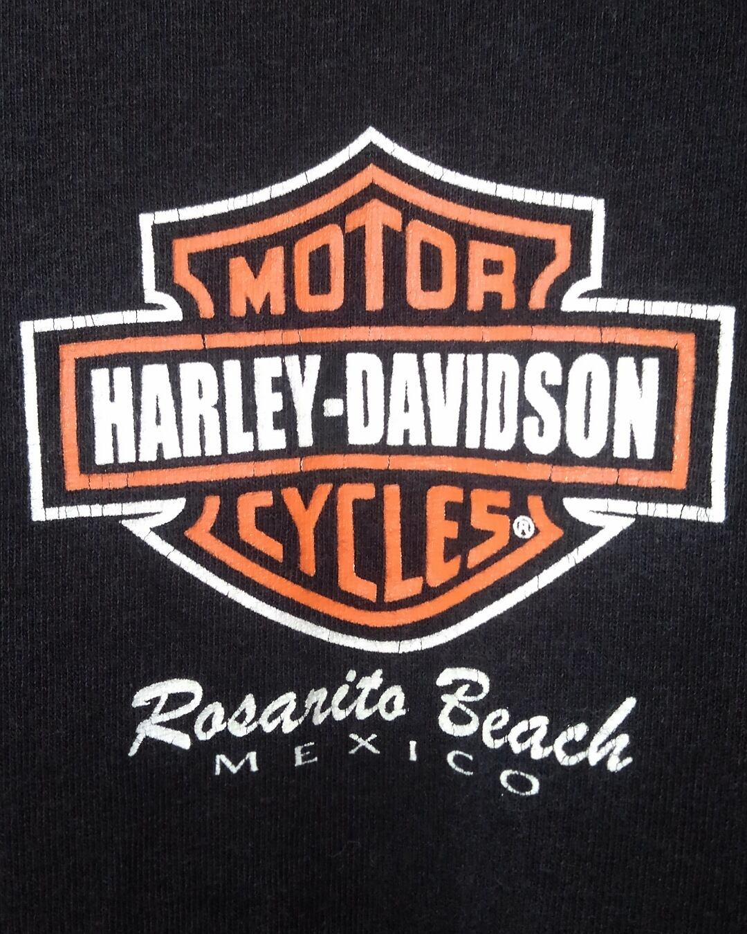 バックにハーレーのロゴの中でも最も有名な「バーアンドシールド」が大きくプリントされており、フロントはワンポイントのシンプルなタイプ。