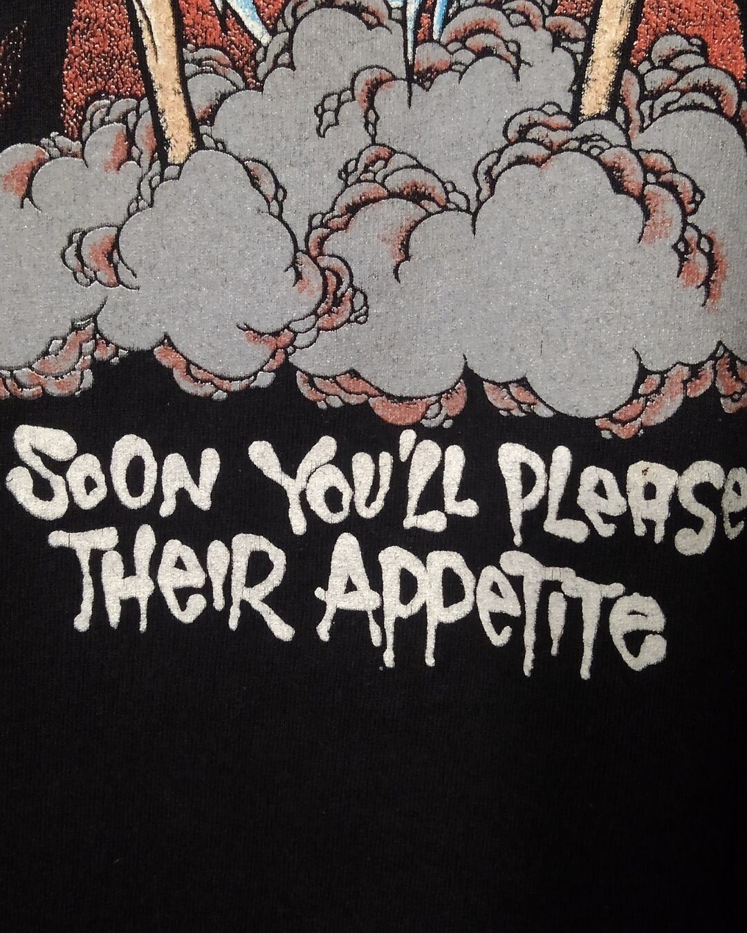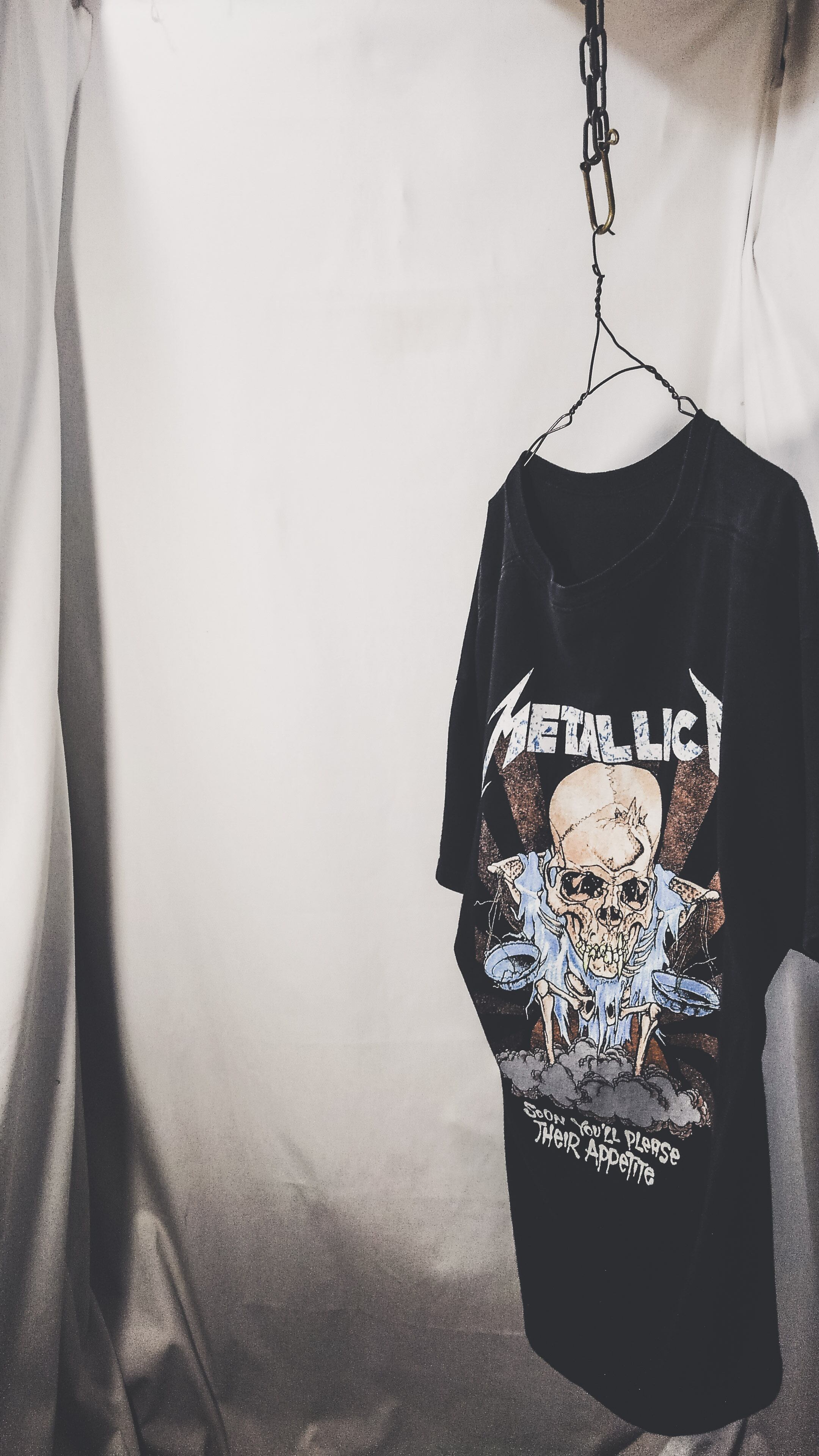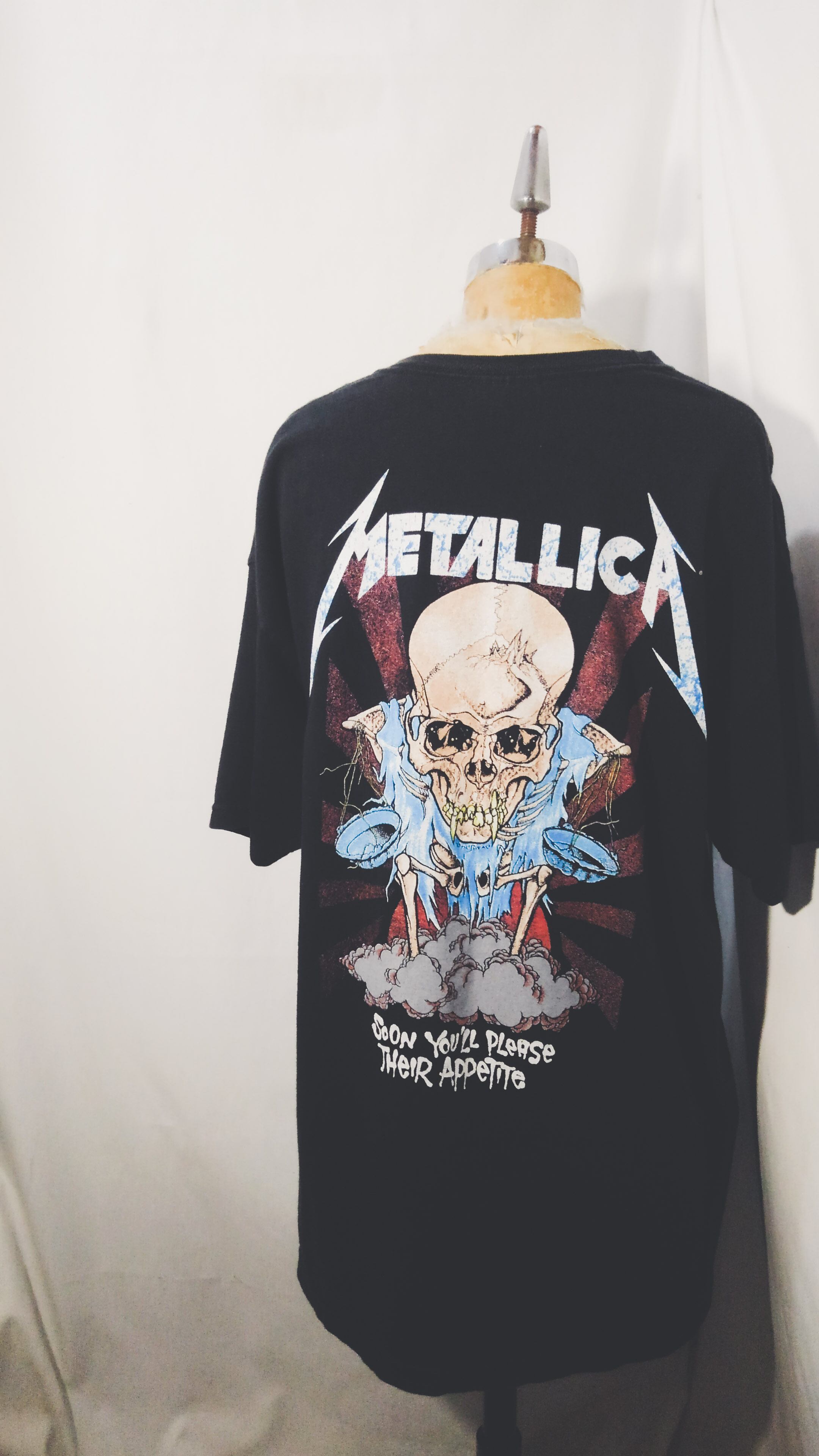 フロントにバンド名、バックにお馴染みのパスヘッドによるアートワークであるドリスと「And Justice For All」の歌詞の一節が"Soon You'll Please Their Appetite"がプリントされています。