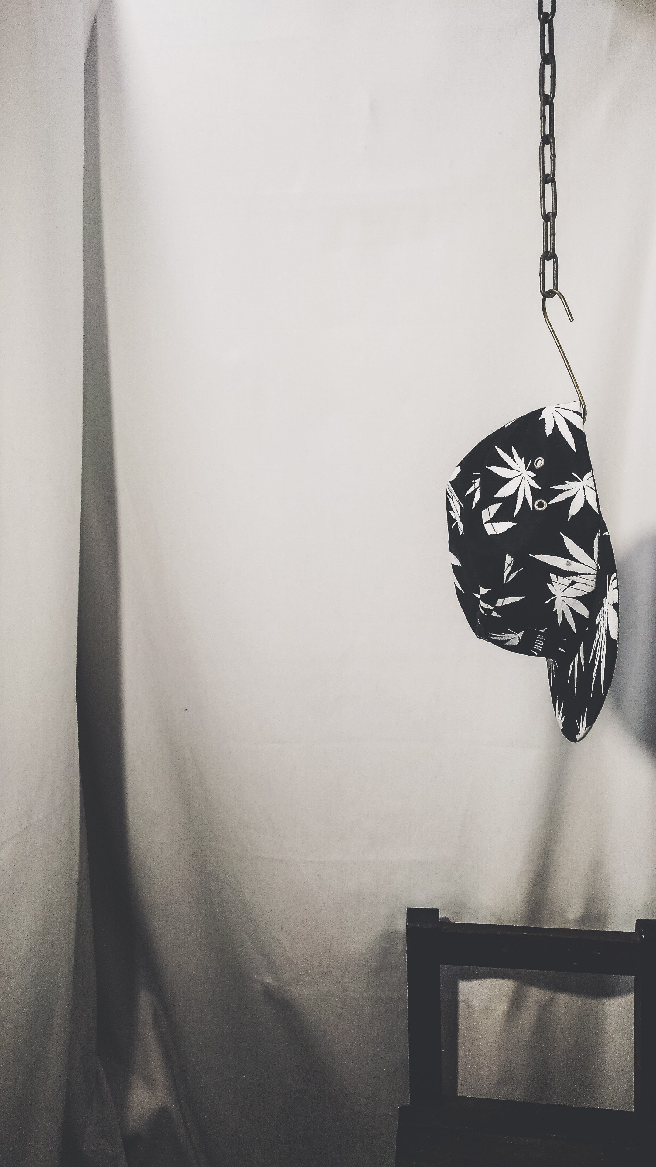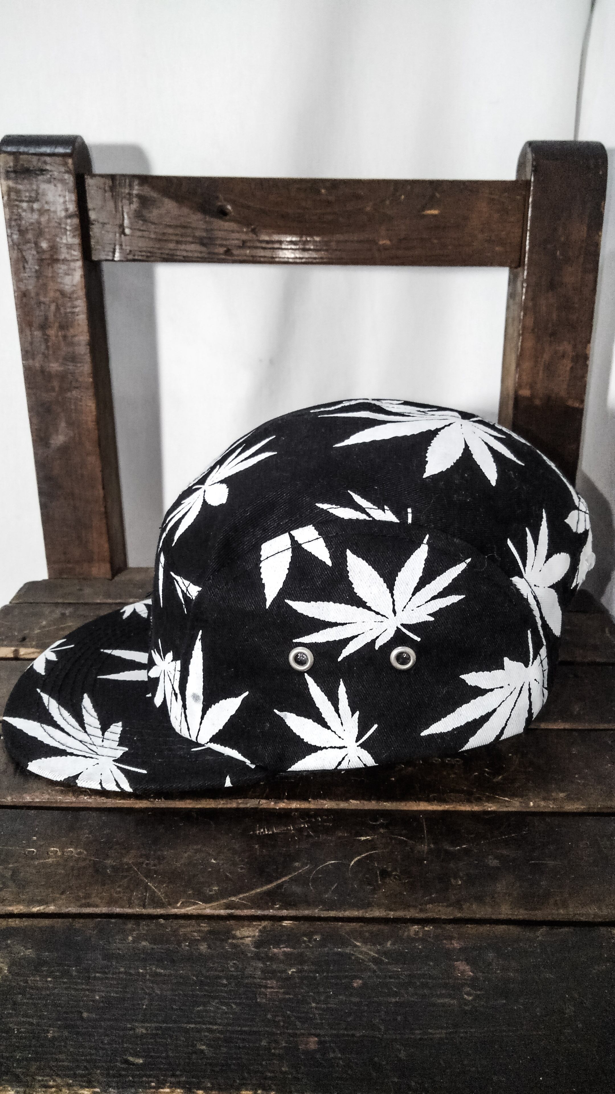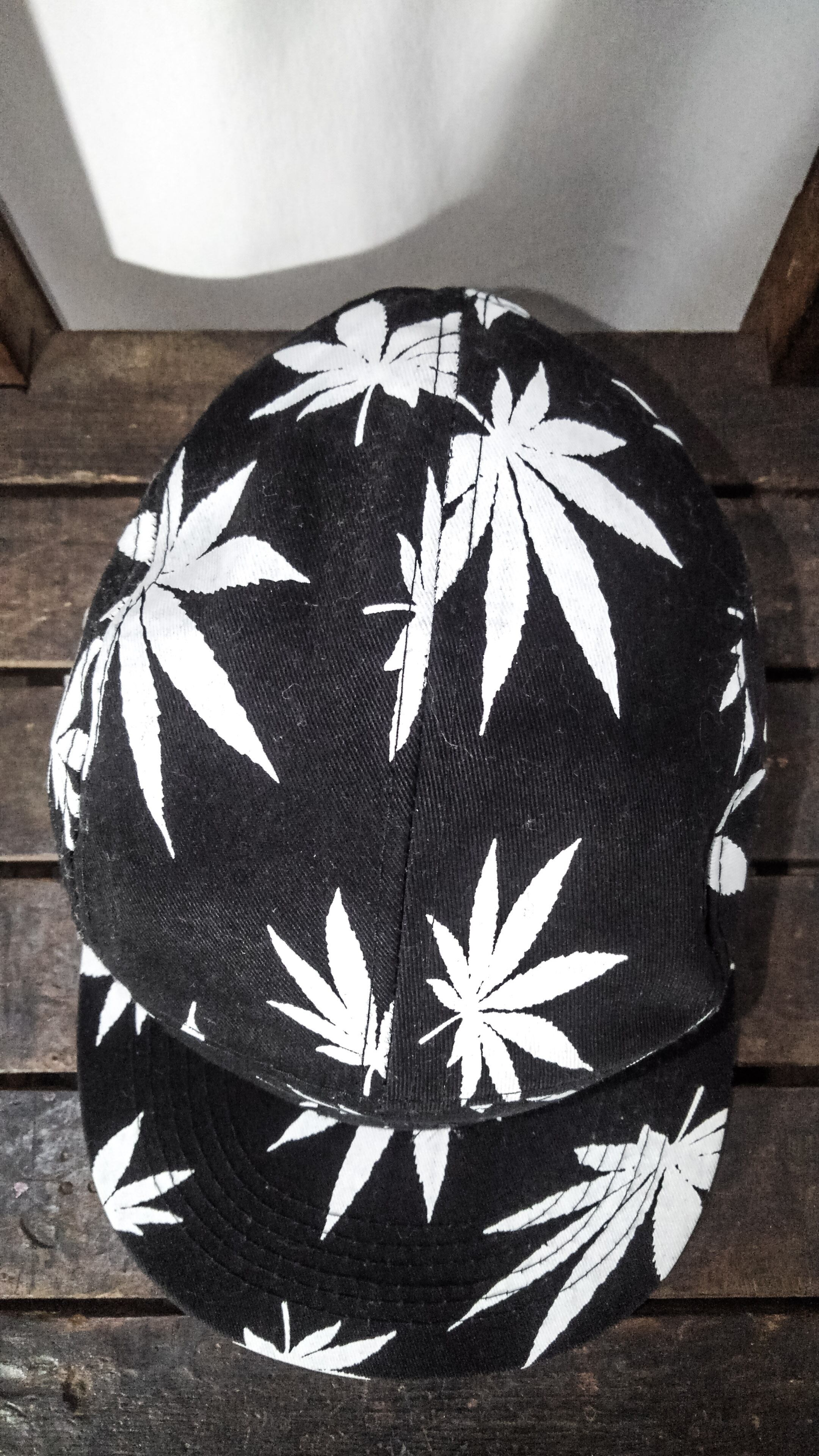 ブラックベースの5パネルにホワイトリーフが全体に施されたジェットキャップ。