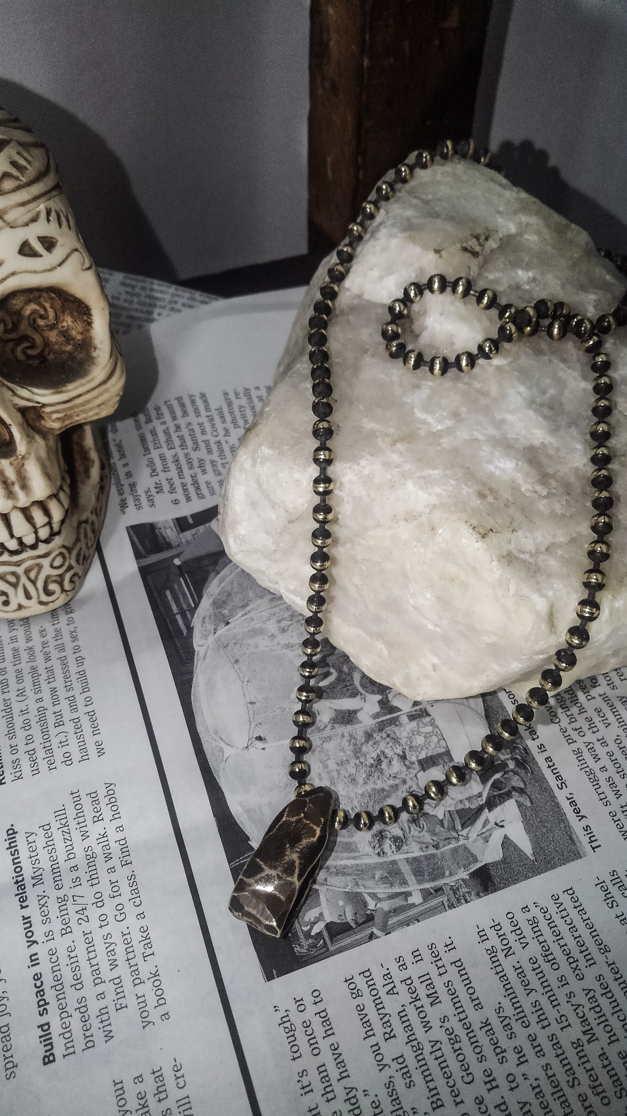 Brass handmade ball chain necklace ring charm