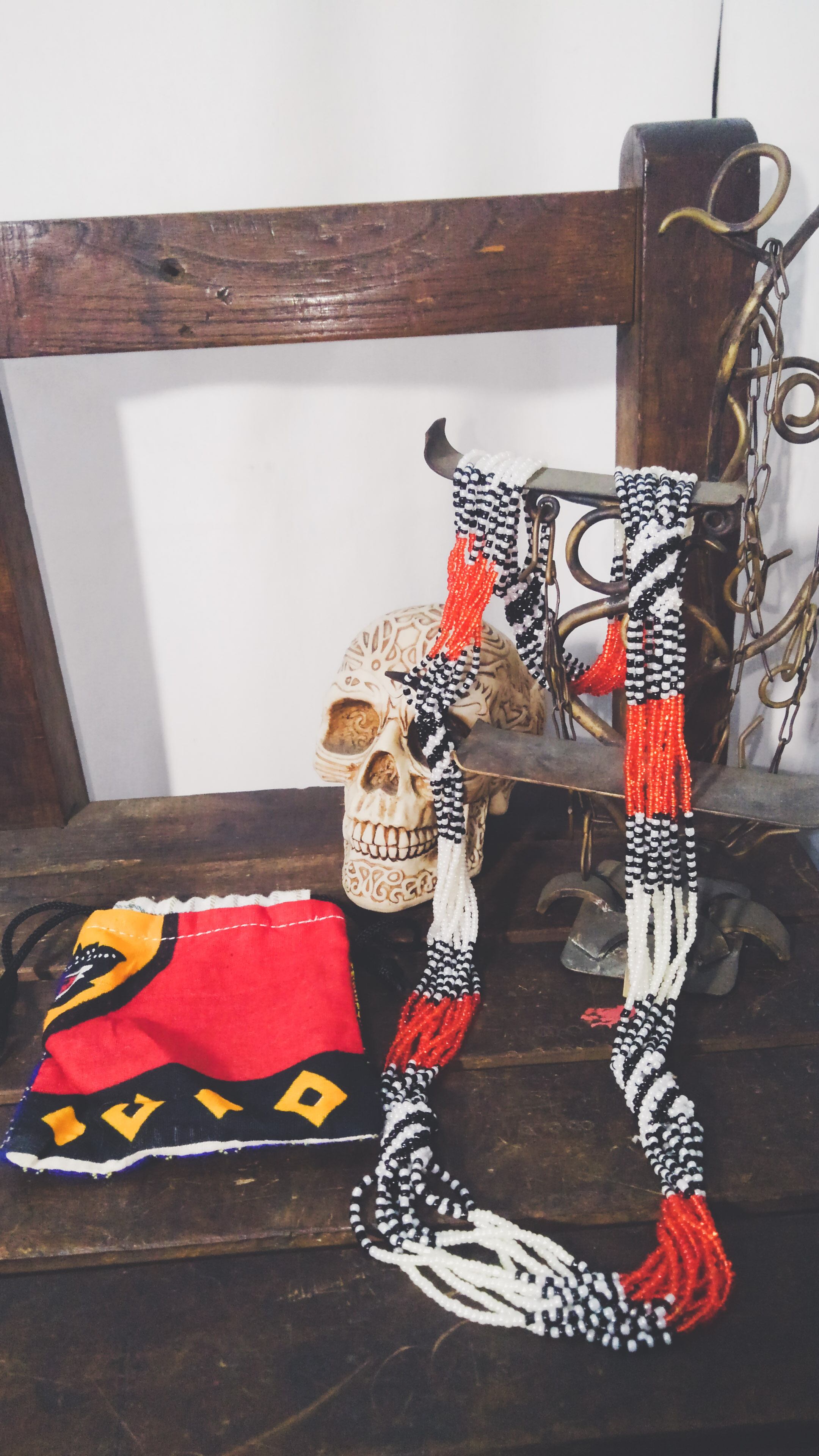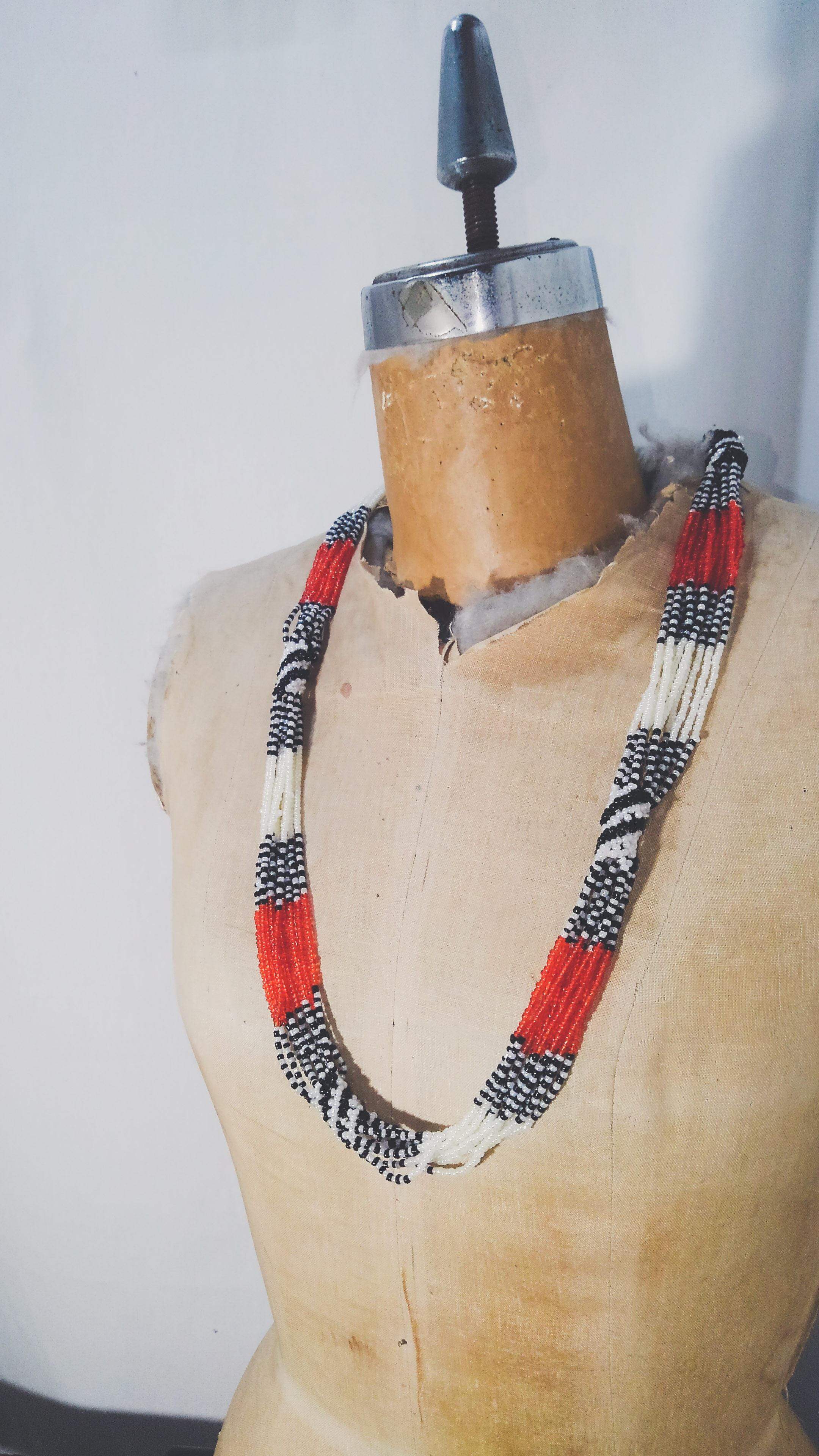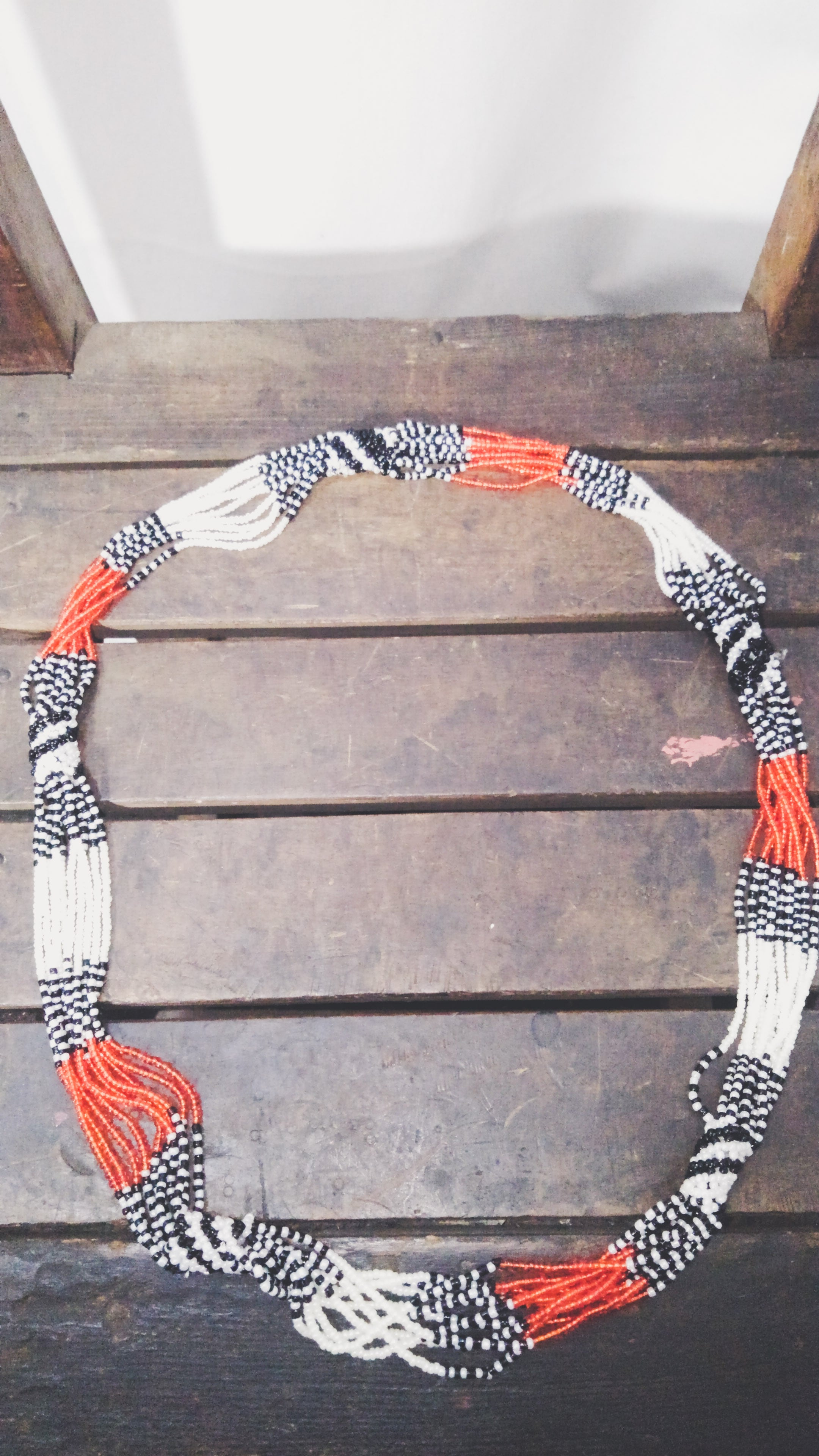 マサイ族のアクセサリーの代表的なアイテムであるビーズのネックレスで、ハンドメイドならではの温もりが感じられます。