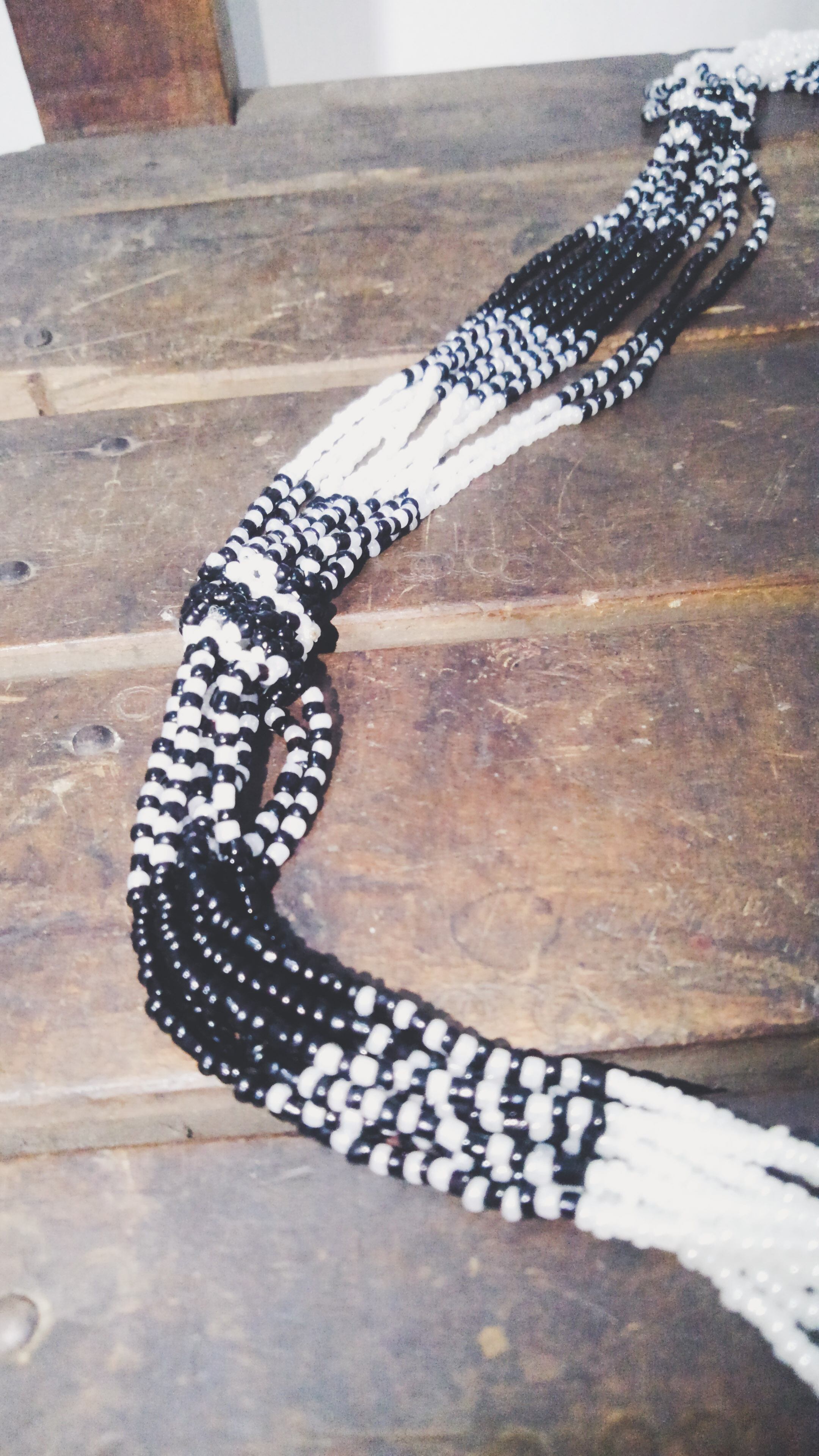 マサイ族のアクセサリーの代表的なアイテムであるビーズのネックレスで、ハンドメイドならではの温もりが感じられます。