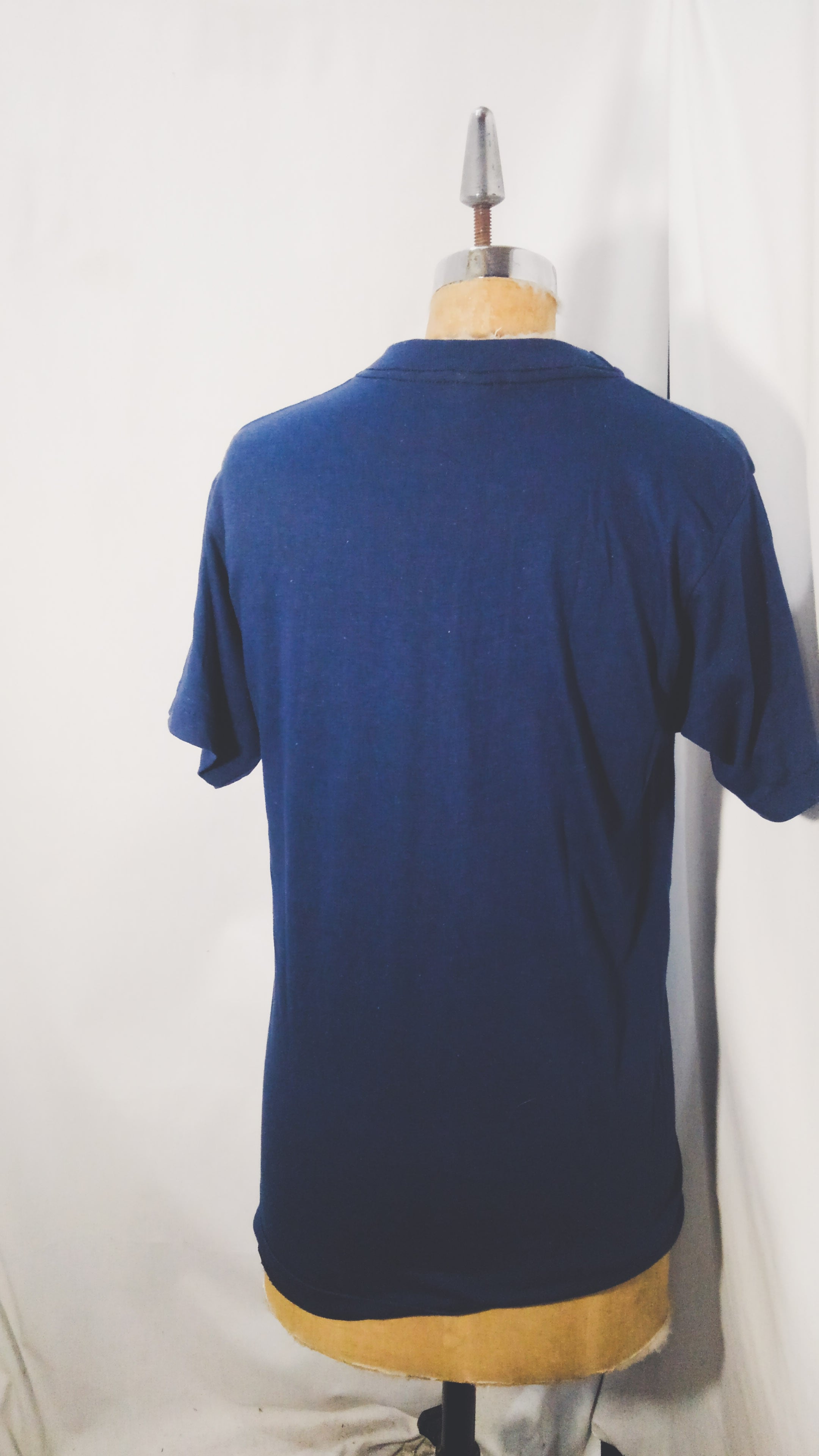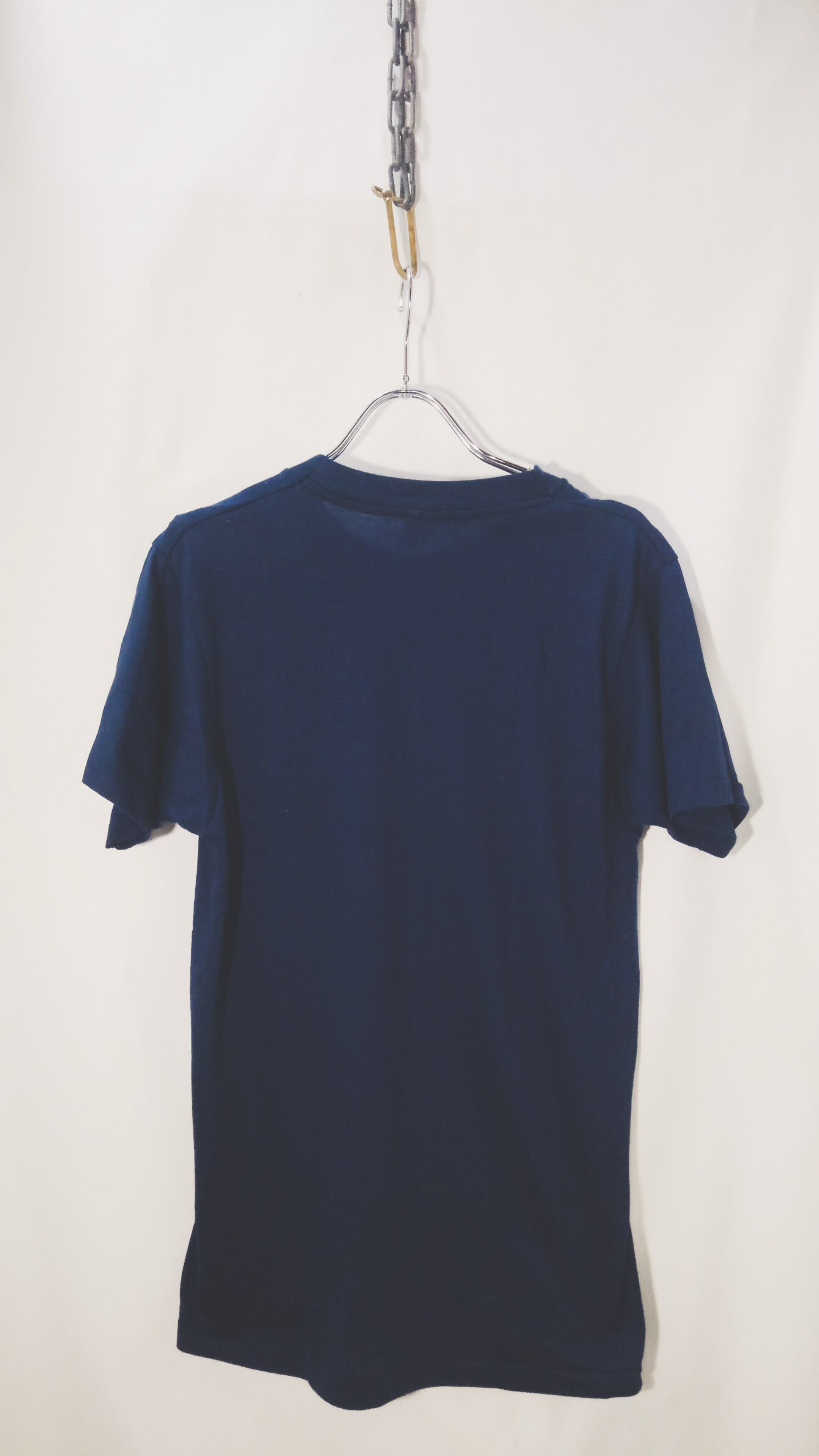 80年代当時のモノは細身で着丈の長い丸胴ボディでどちらかと言うとヨーロッパ系よりのシルエット、ムービー系や企業広告系の面白いプリントが多いイメージですが、こちらはシンプルにワンポイントロゴ。