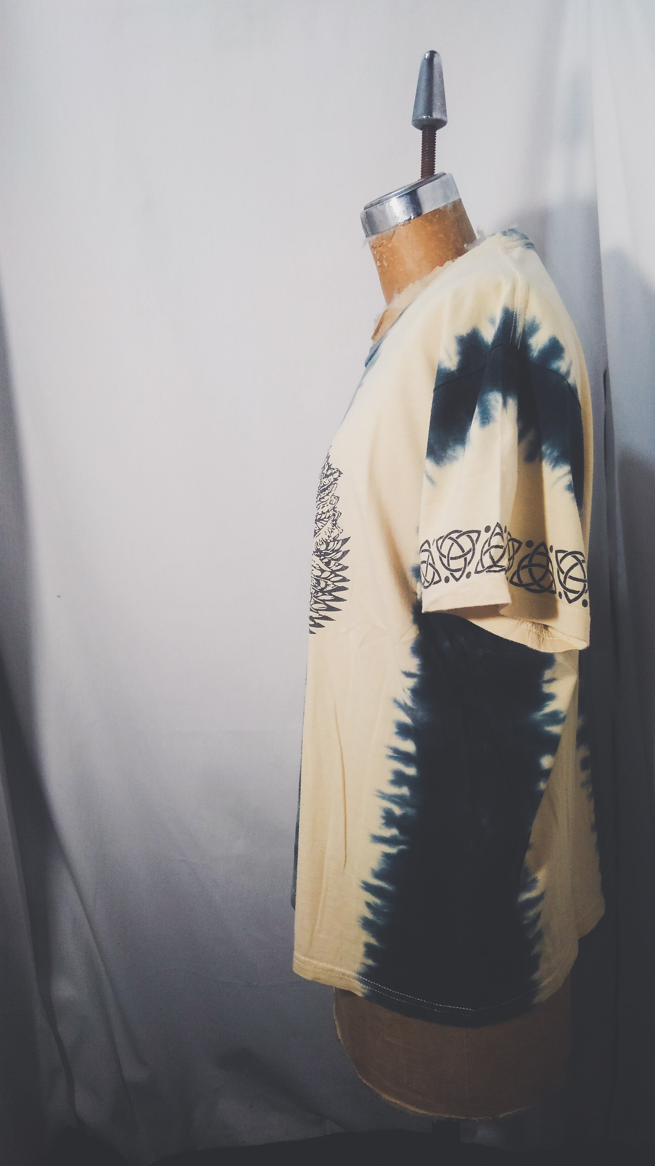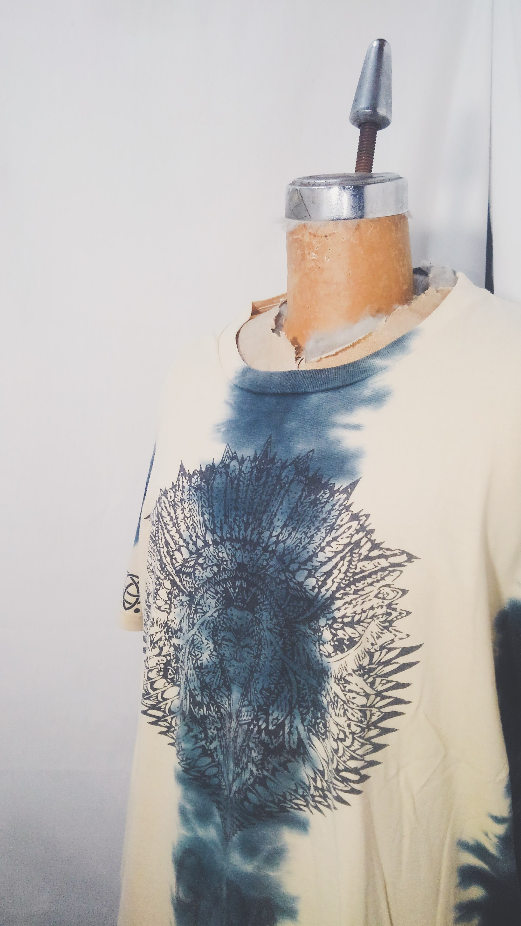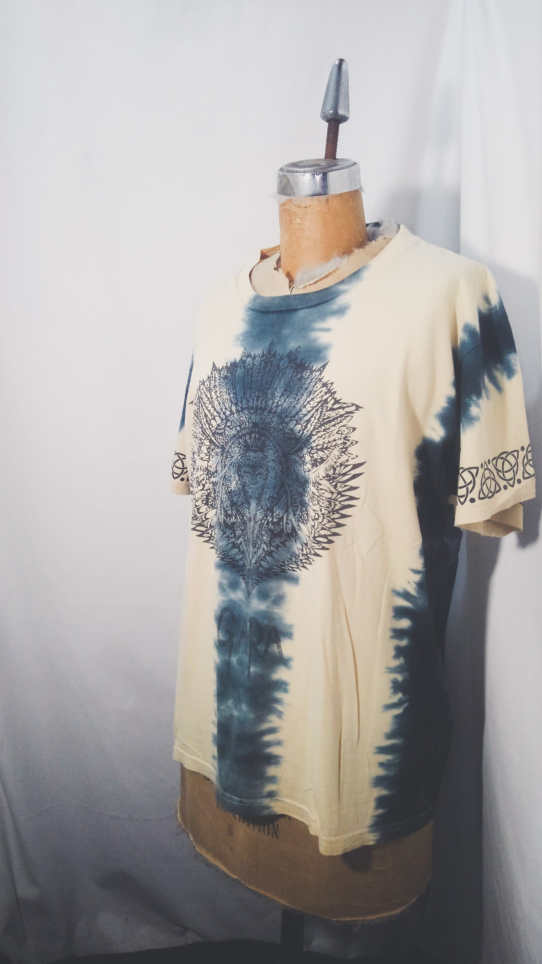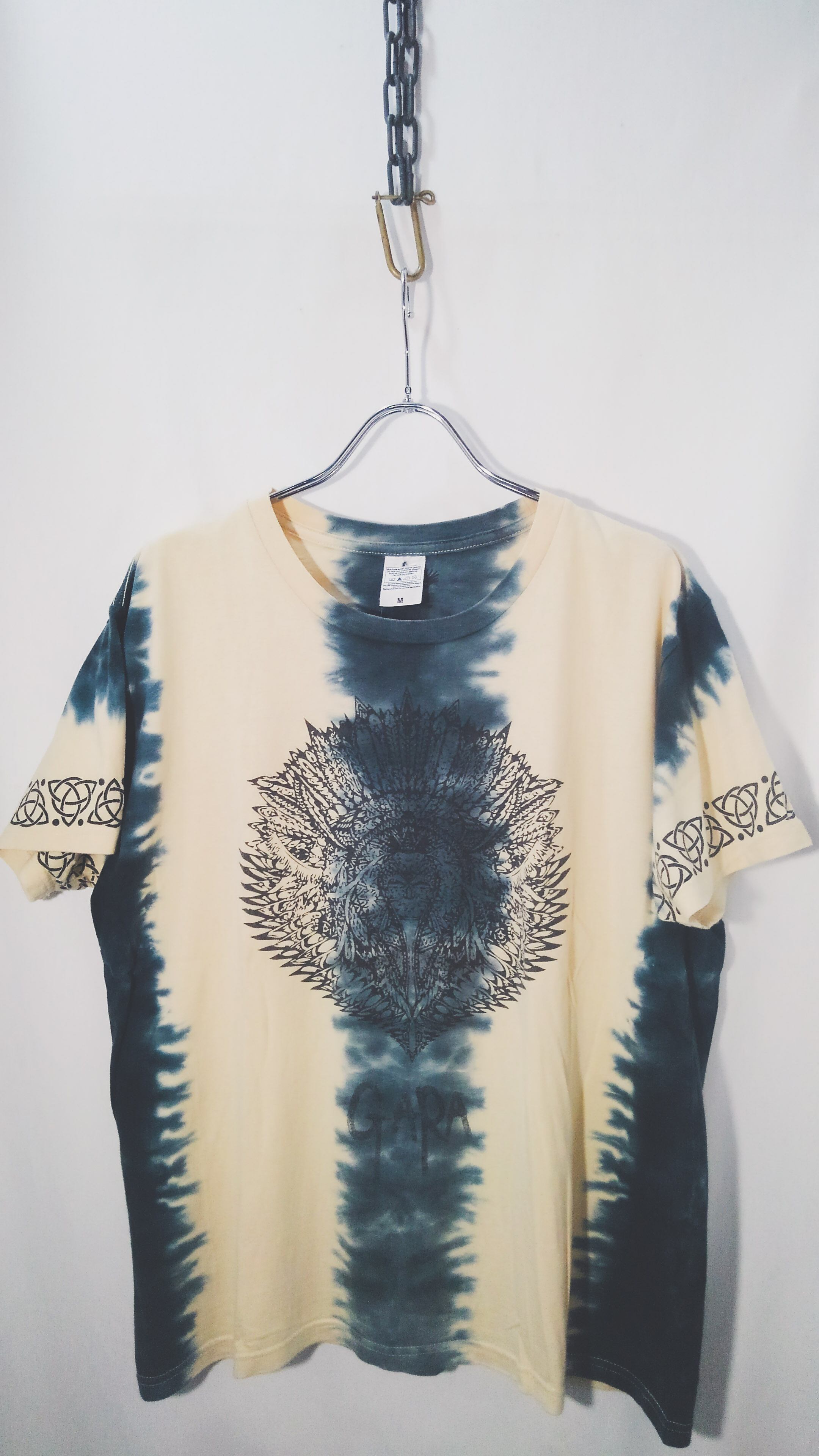 丸胴ボディのTシャツをタイダイ染めし、GARAらしいネイティブアメリカンなトライバルプリント