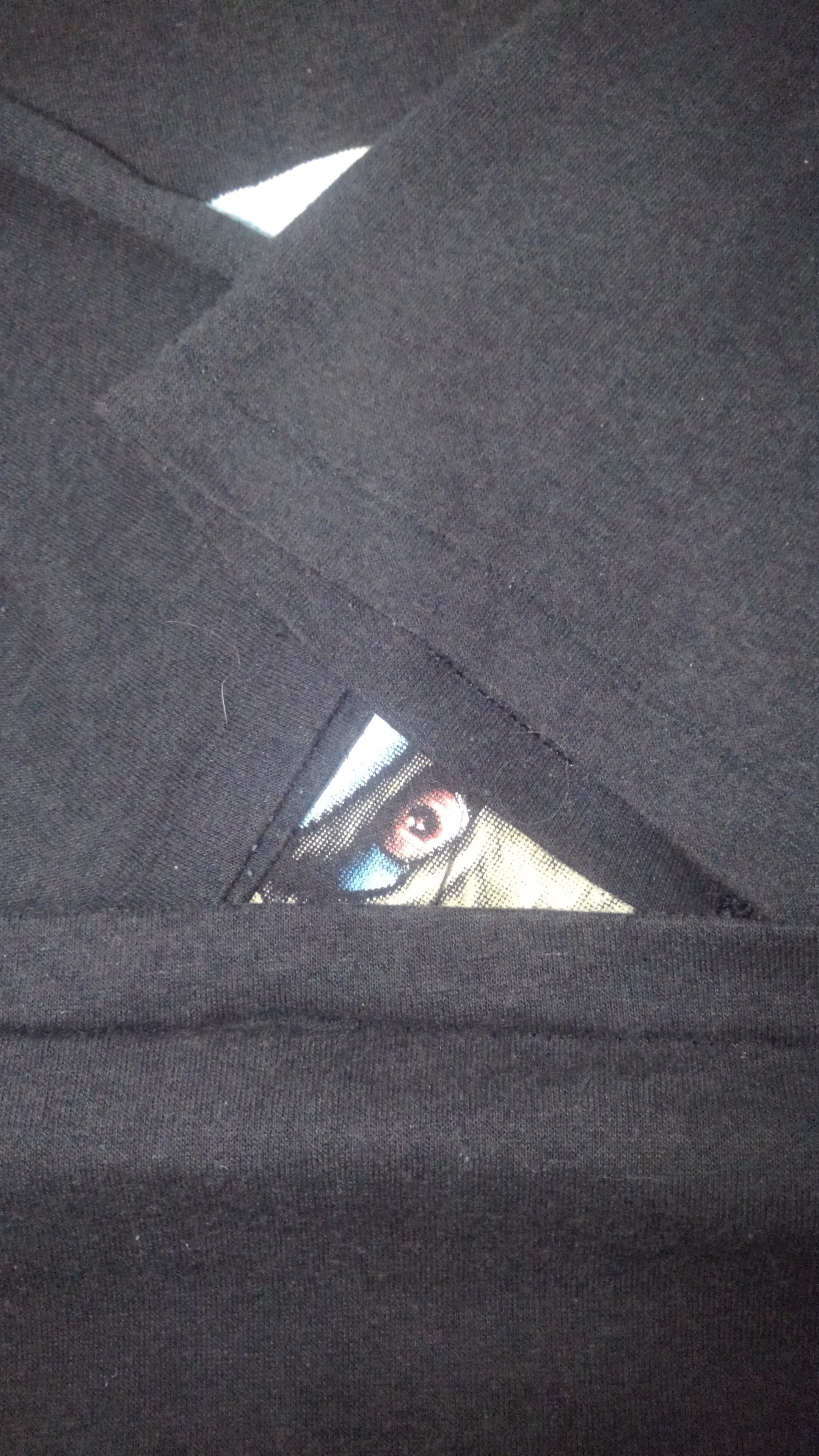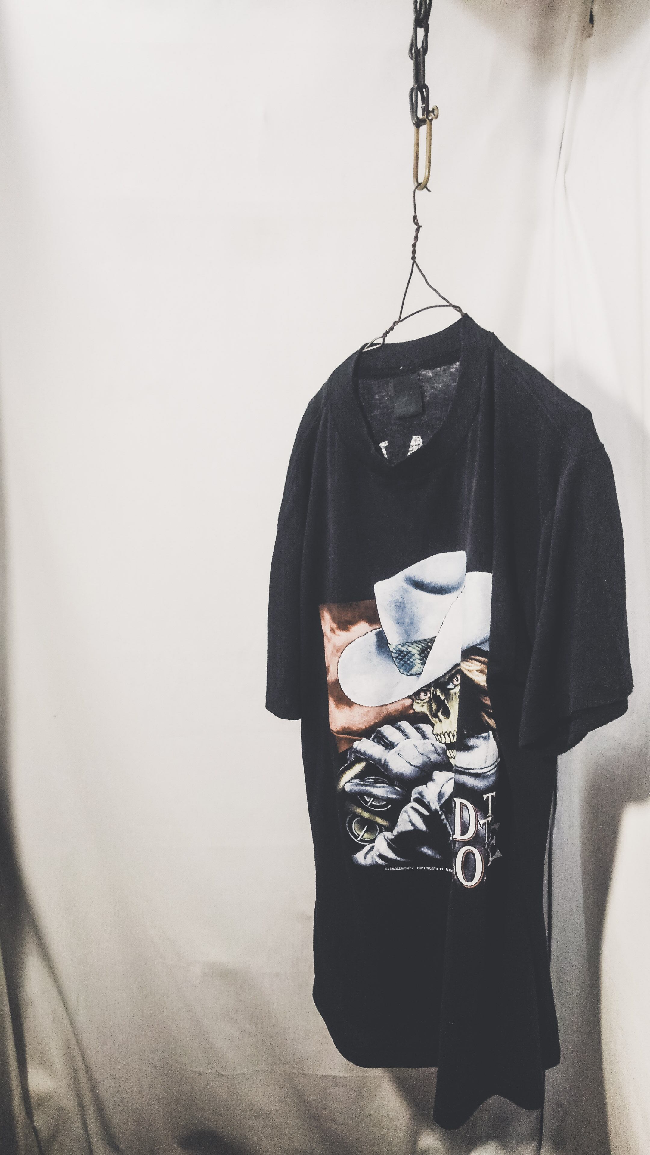 アメリカ製の丸胴ボディに袖裾シングル、両面プリント。