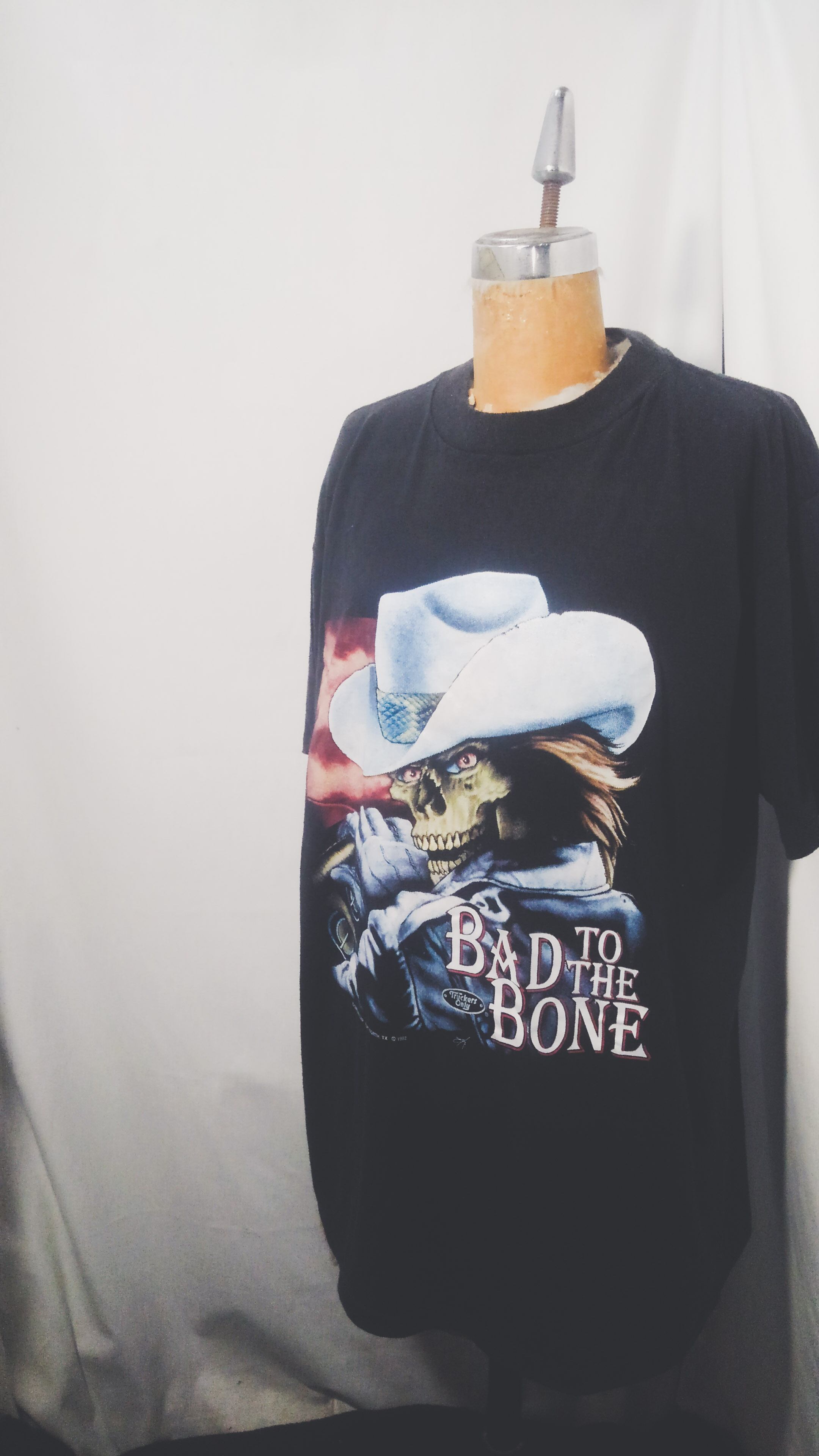 Vintage 3D emblem bad to the bone tracker t-shirt 90s