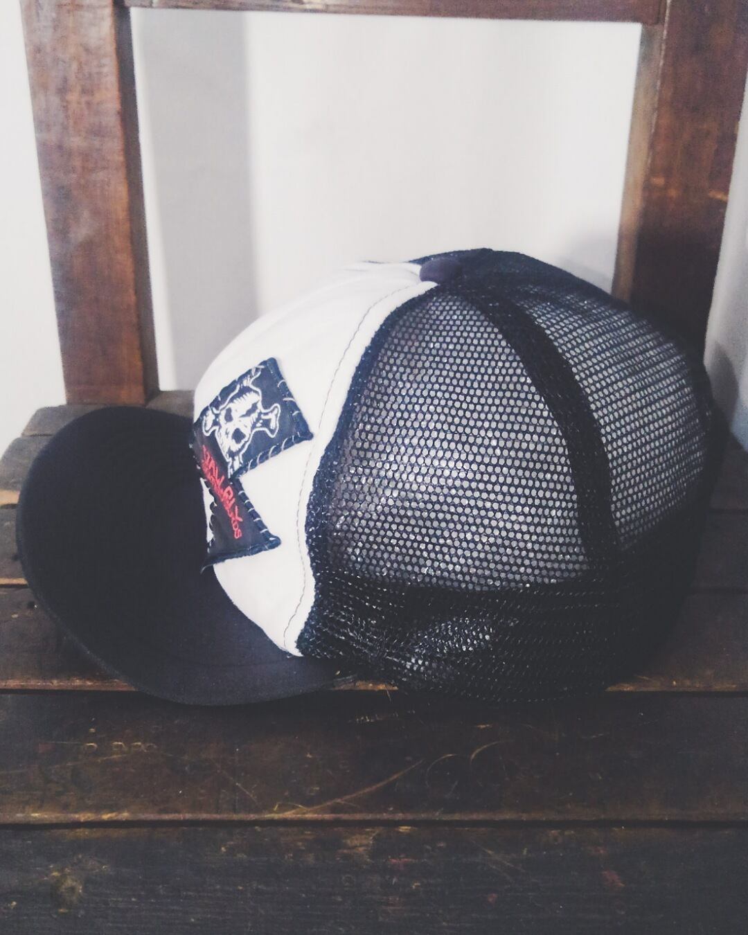 おそらくこちらは当時のスケートキッズが作製したモノかと思われ、当時のスケートカルチャーであるフリップアップされたバイザーや雑なステッチもクールでカッコいいです。