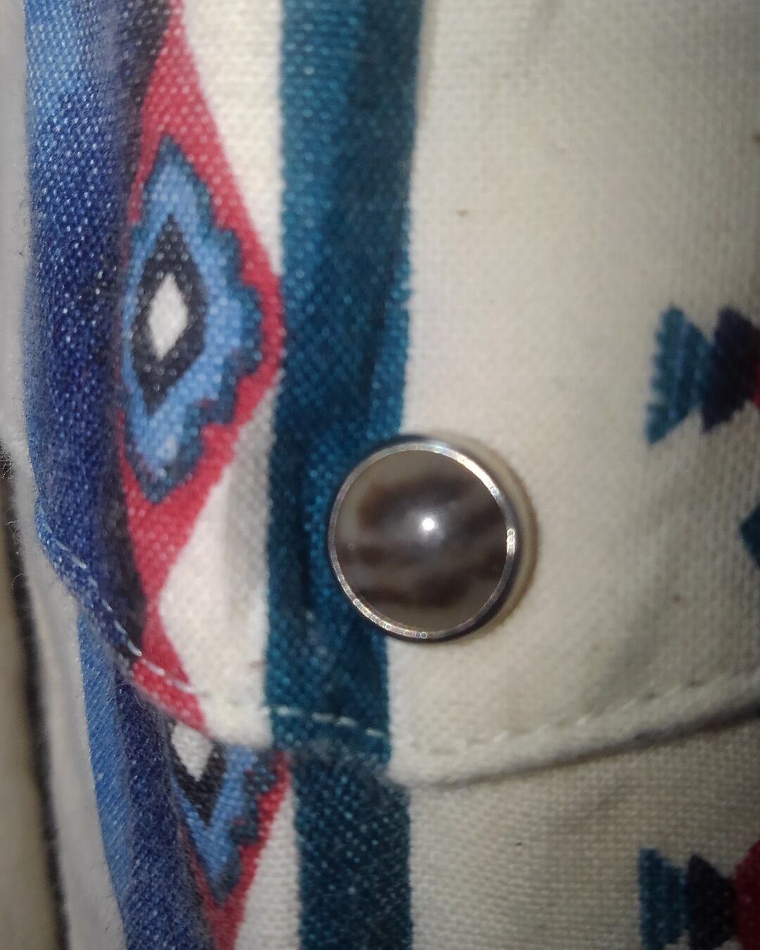 こちらのウェスタンシャツは貴重なアメリカ製コットンを使用したネイティブ柄シャツにマーブル模様の入ったスナップボタンがアクセントになっていてカッコいいです。