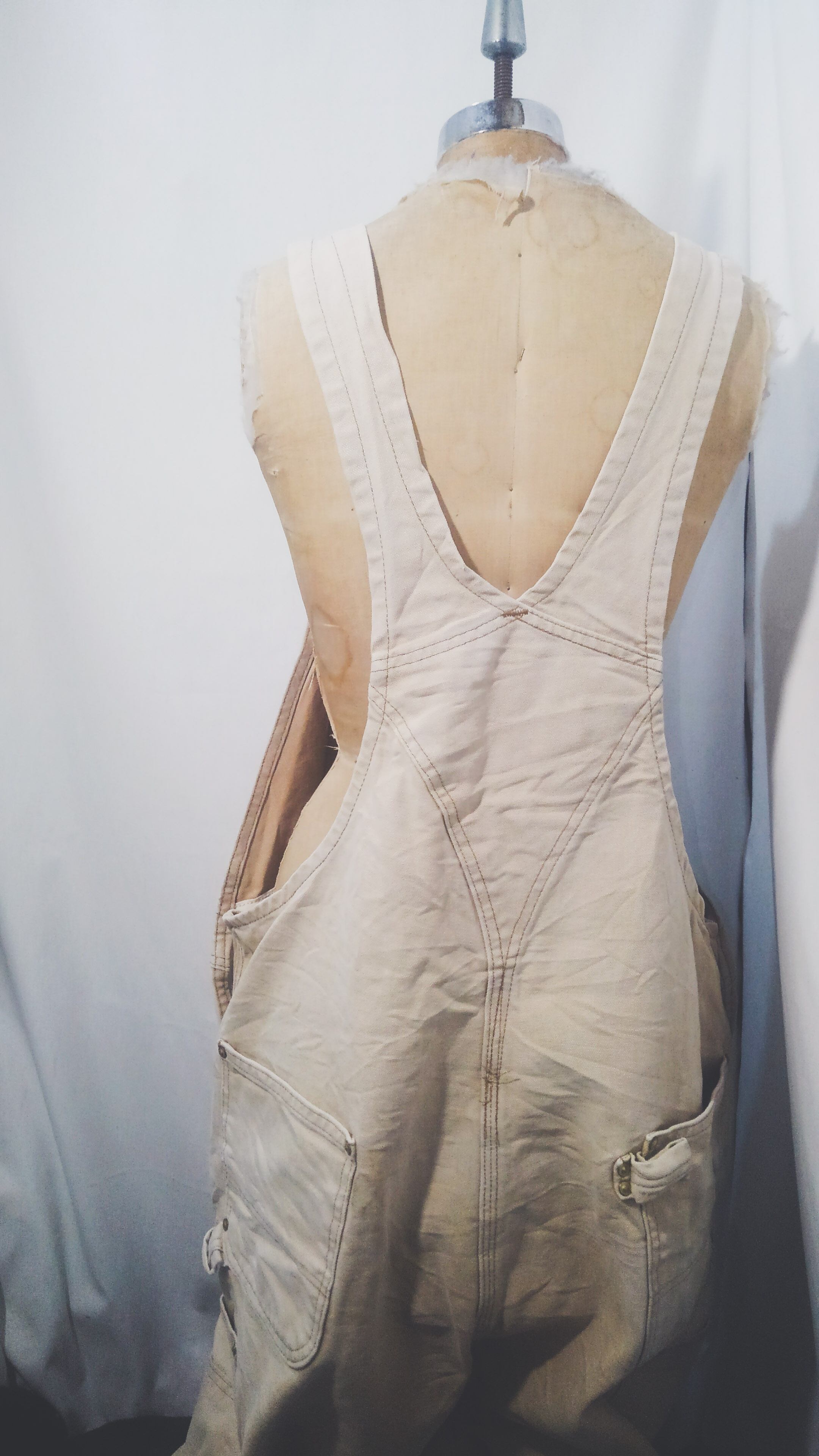 ダブルニー仕様のダック生地でビンテージならではの絶妙な色褪せが定番アイテムとは言え通常のオーバーオールとは、一味も二味も違った風合いのある一本です。