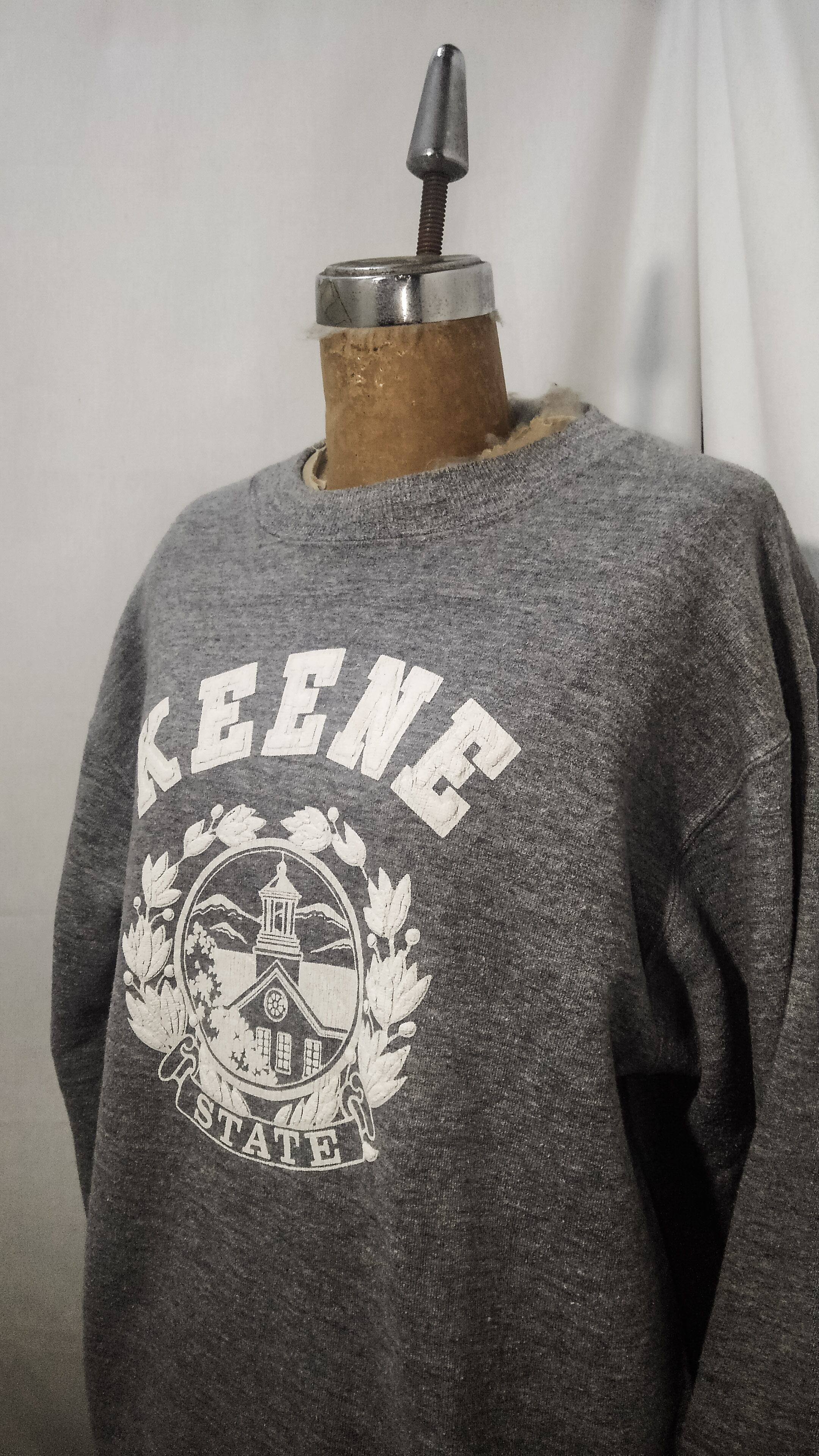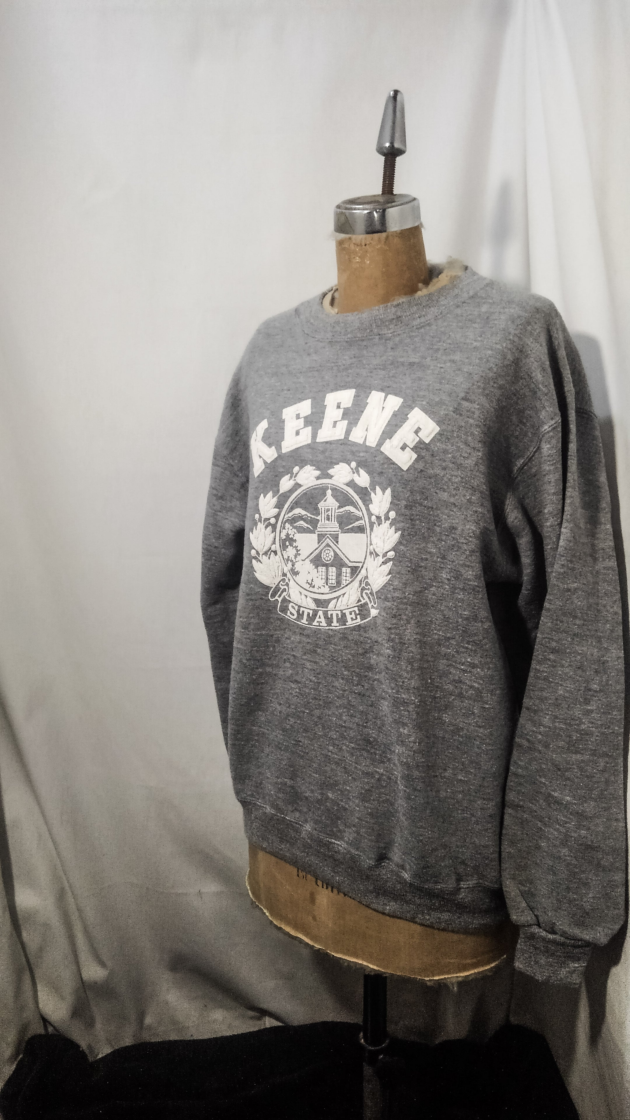 フロントにはアメリカ/ニューハンプシャー州のキーンにあるキーン州立大学のキャンバスをモチーフにしたエンブレムがフロッキープリントで施されています。