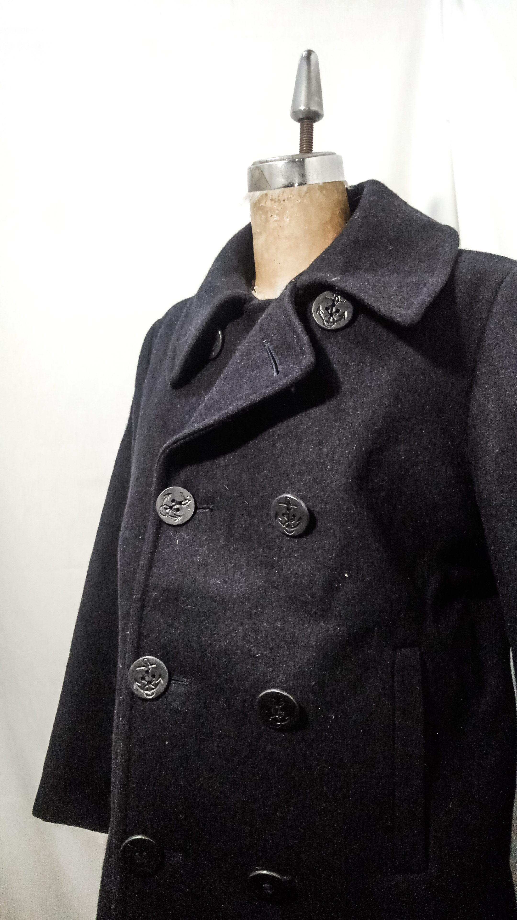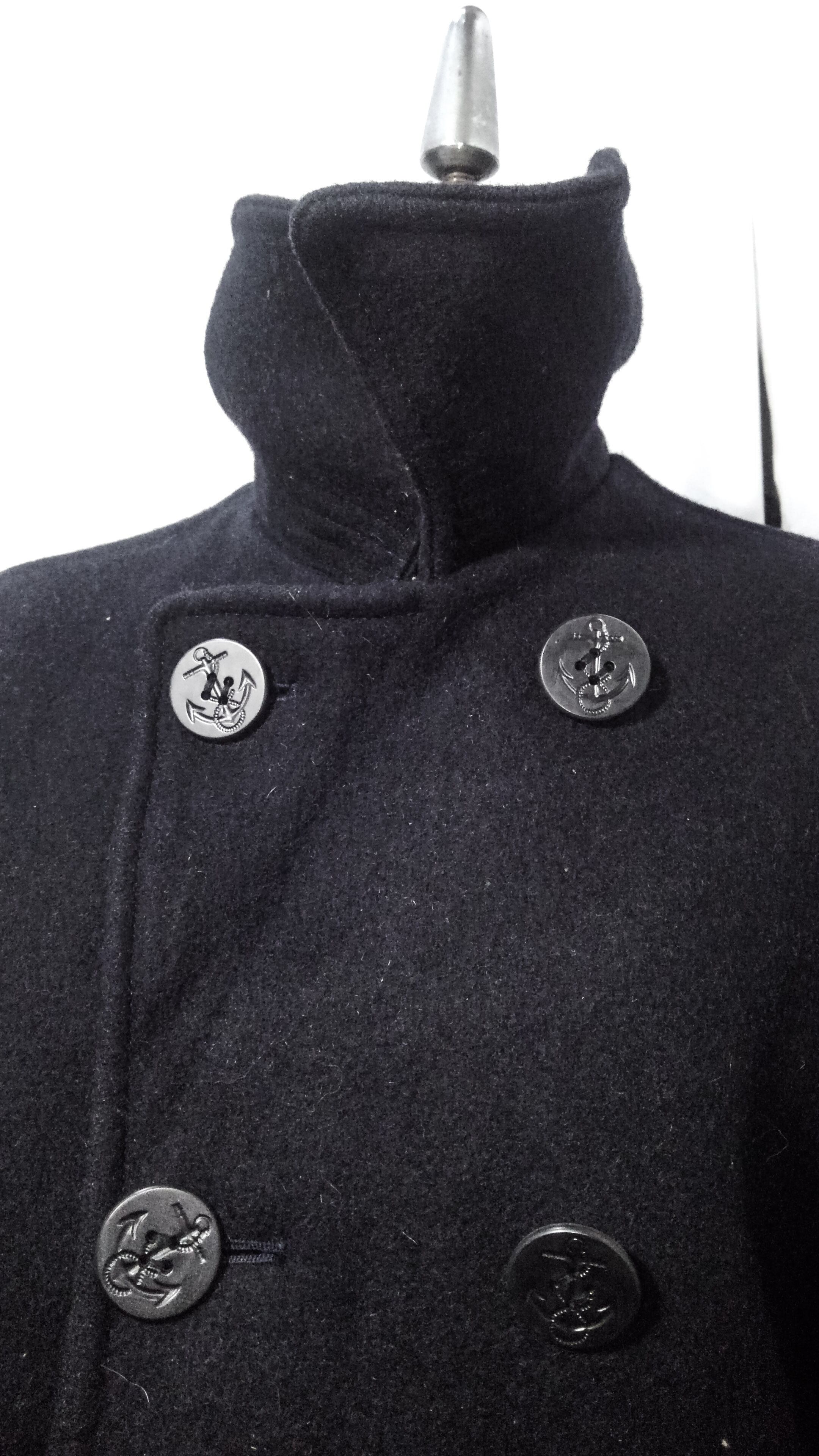 こちらはPコートは現行品に近い2000年代のモノかと思われますが、アメリカ海軍のPコートをモチーフにしたデザインで、アンカーマークの付いた大きめのボタンと軍モノよりも軽量ながら目の詰まったメルトンウールは冷気をシャットアウトし保温性も抜群です。