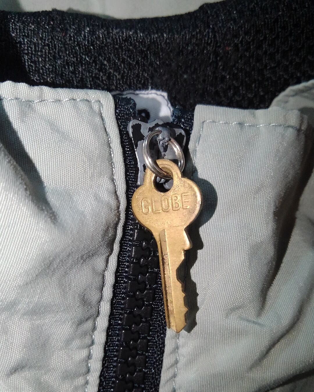 フロントジップのツマミ部分が欠損しており、