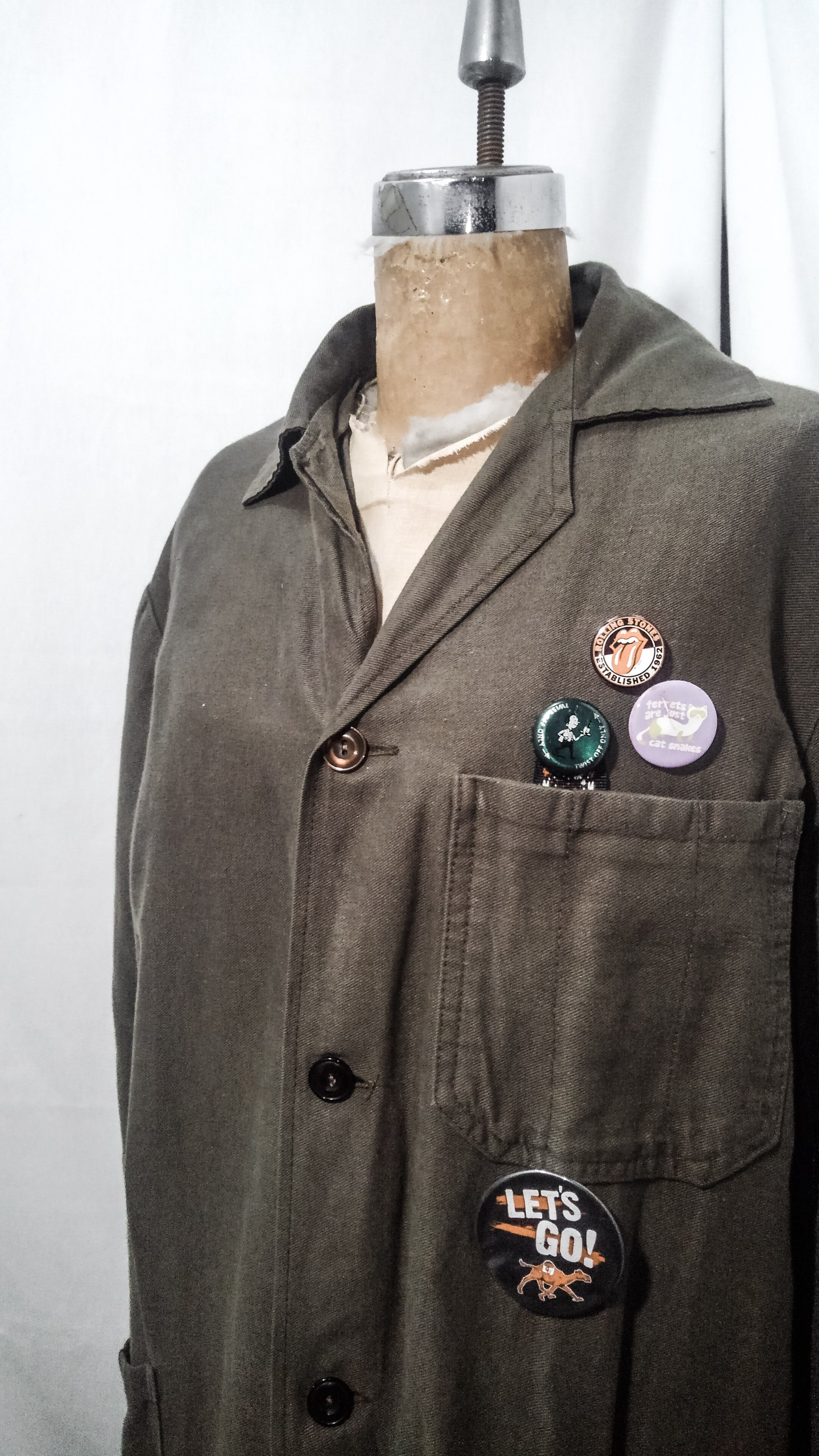 男女問わずマンネリ化しつつある普段のコーデにプラスアルファで楽しんでいただけるかと思います。胸ポケット下に解れがみられますが、缶バッチが付いているのでそれほど気になるモノではございません。