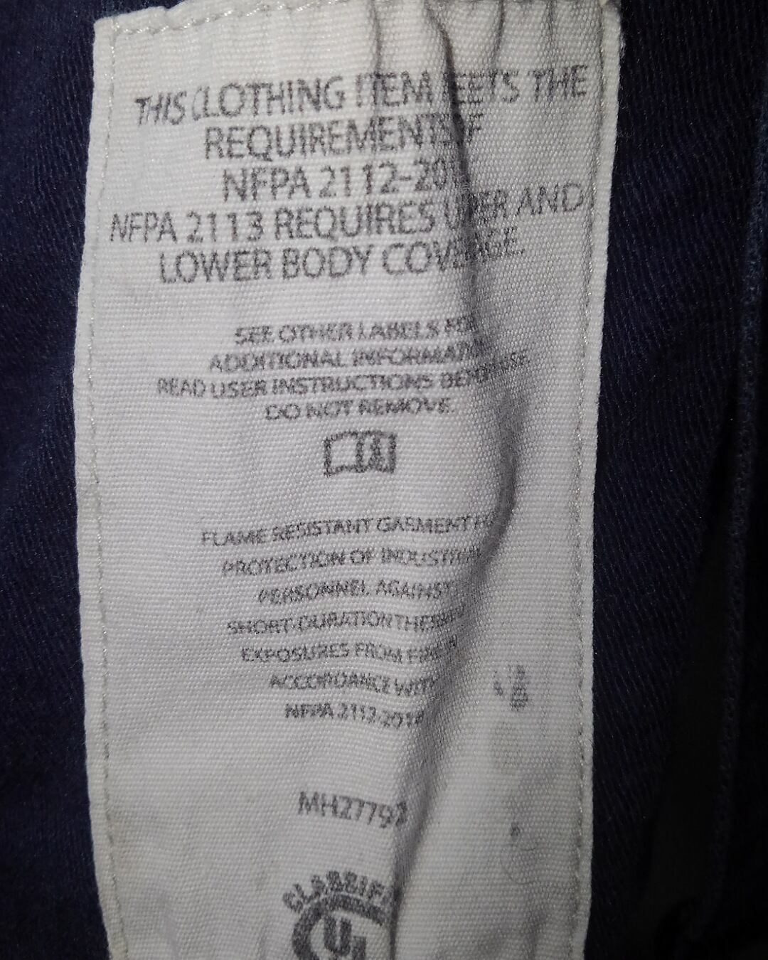 素材には燃えにくいFR(難燃素材)を使用し肉厚で丈夫な質感。両腕と肩から背中にあるラインテープにはリフレクター(反射素材)が付いています。
