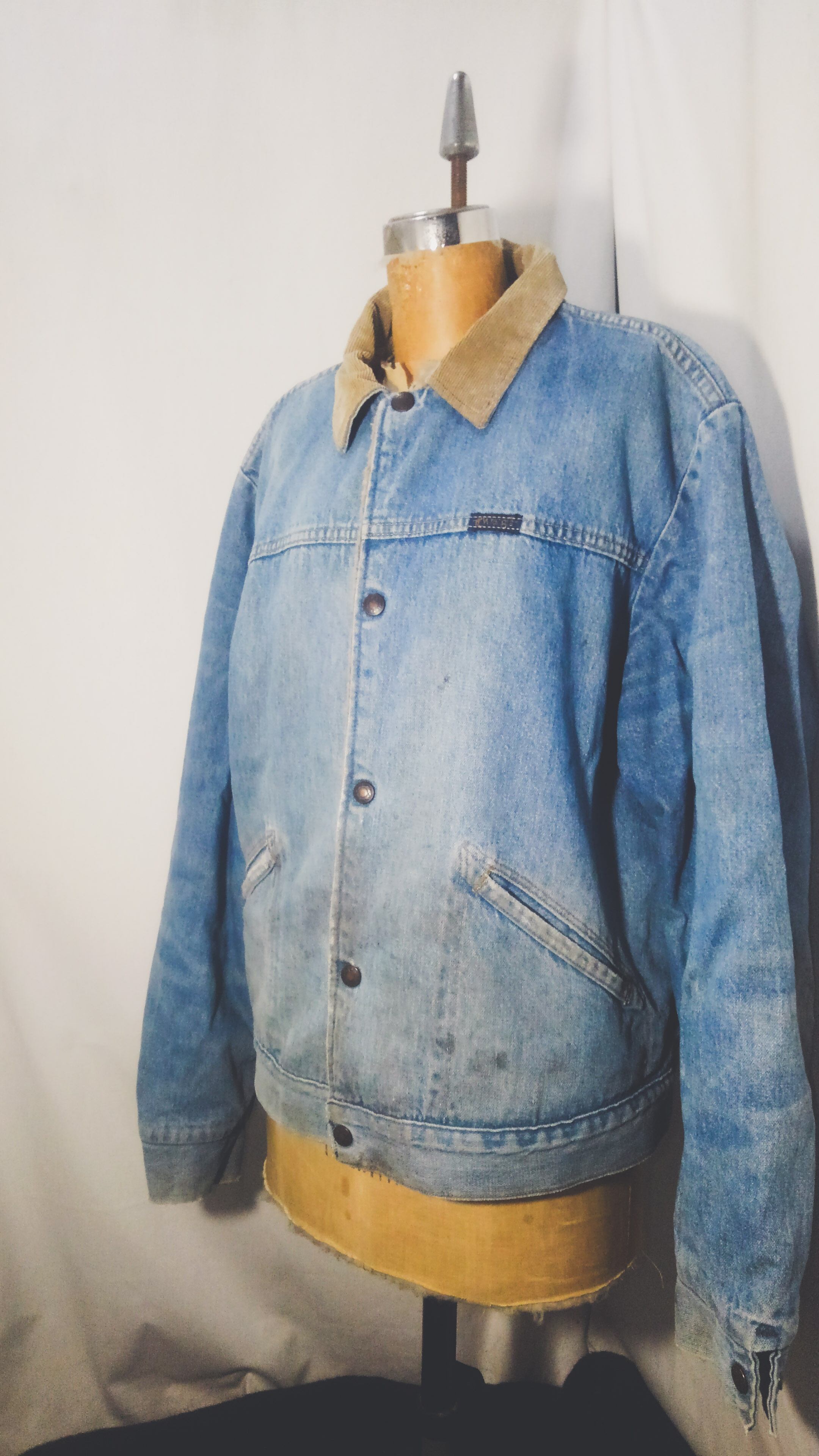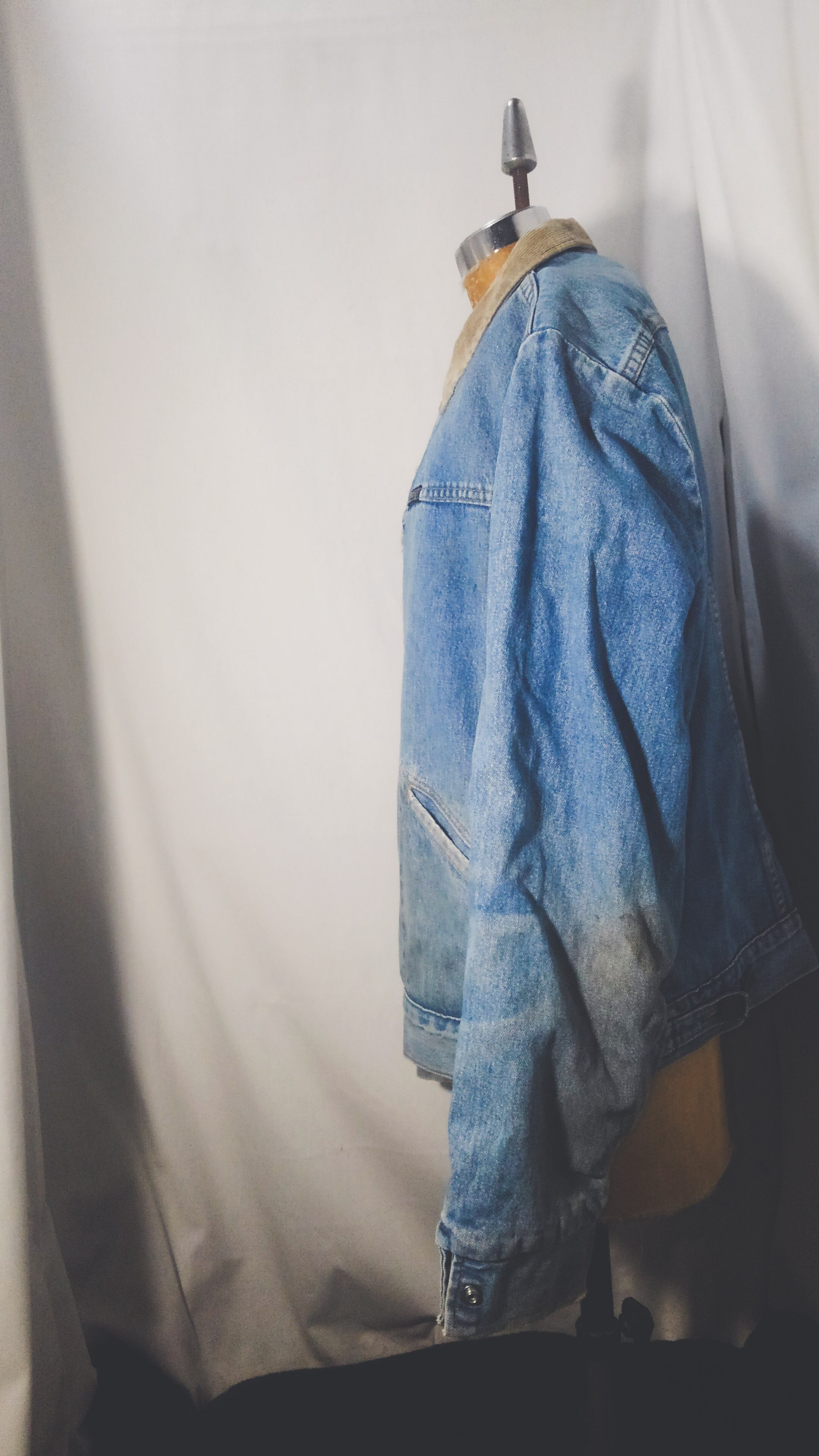 10ozデニム生地の裏地にアクリル製のボアが施されたコーデュロイ襟が特徴的なワークジャケット。