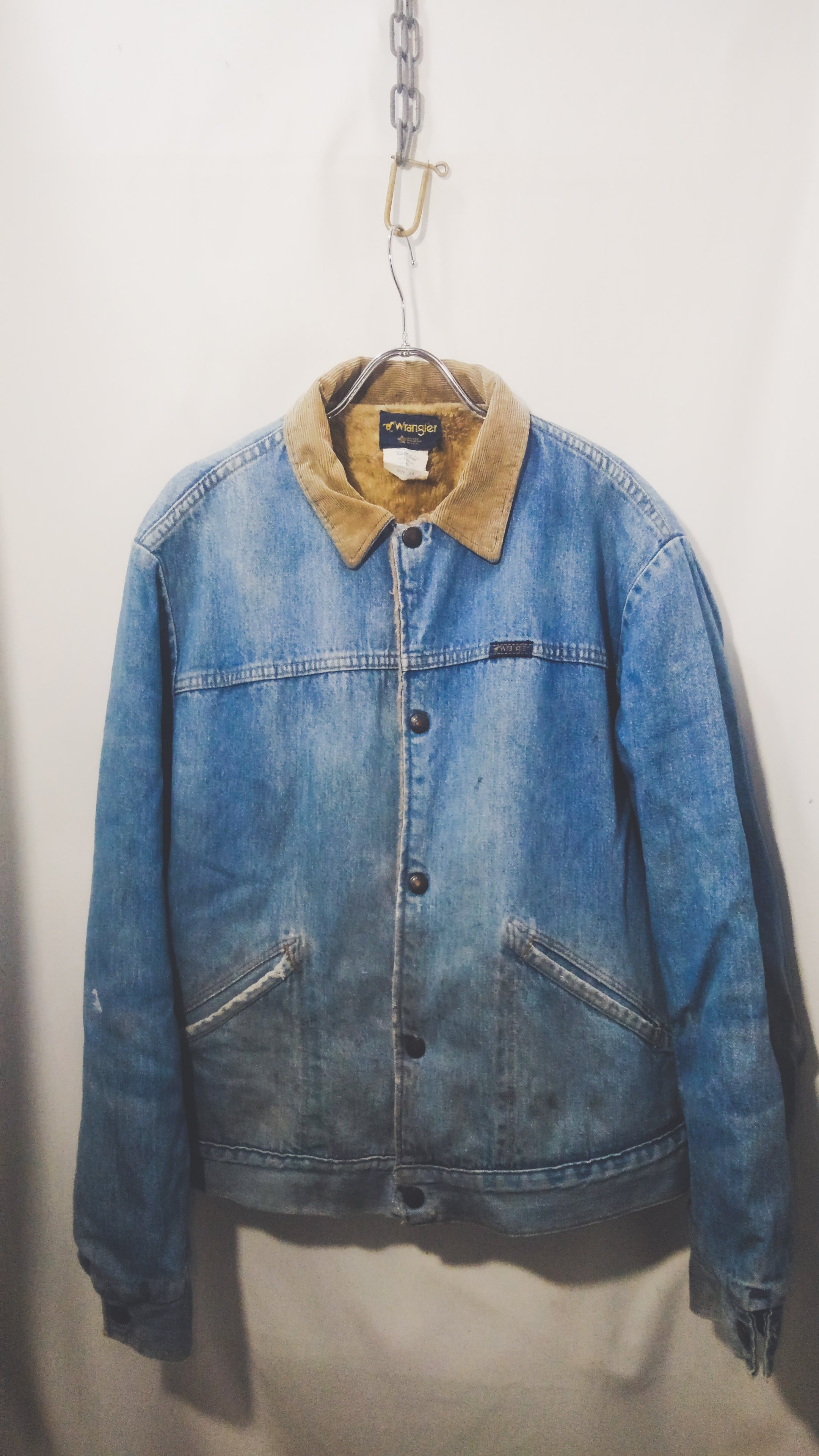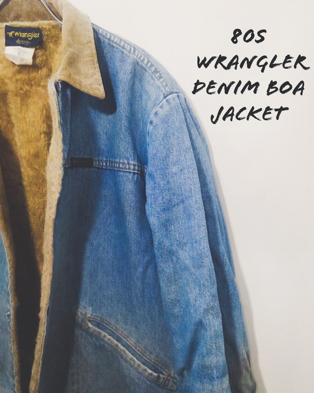 1986~90年頃の短期間に採用されていたホースマークタグの付いたラングラーの裏ボアデニムジャケットです。