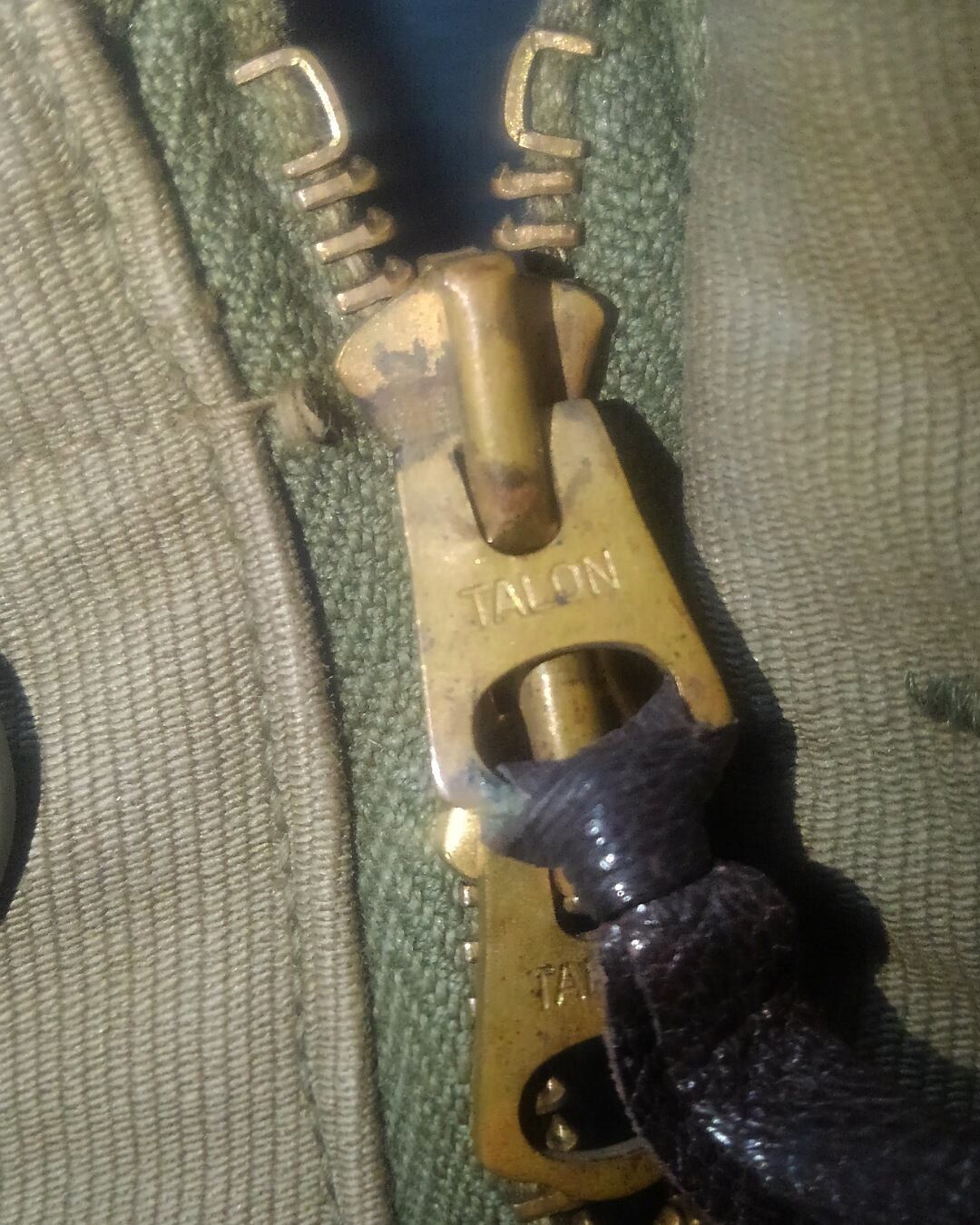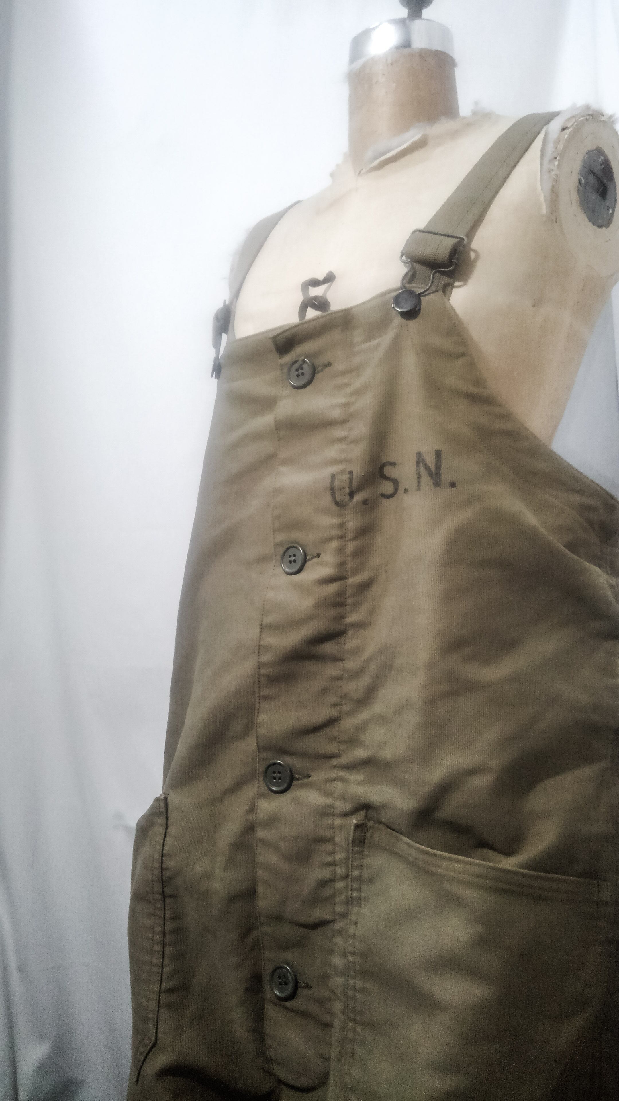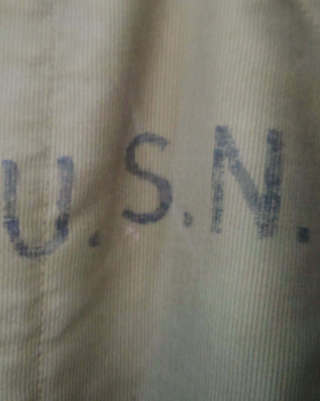 左胸にU.S.N.のステンシルあり、黒ラッカーボタン、コの字留めTALONダブルジップ、ウールライナー、裾にはアジャスターが付いています。
