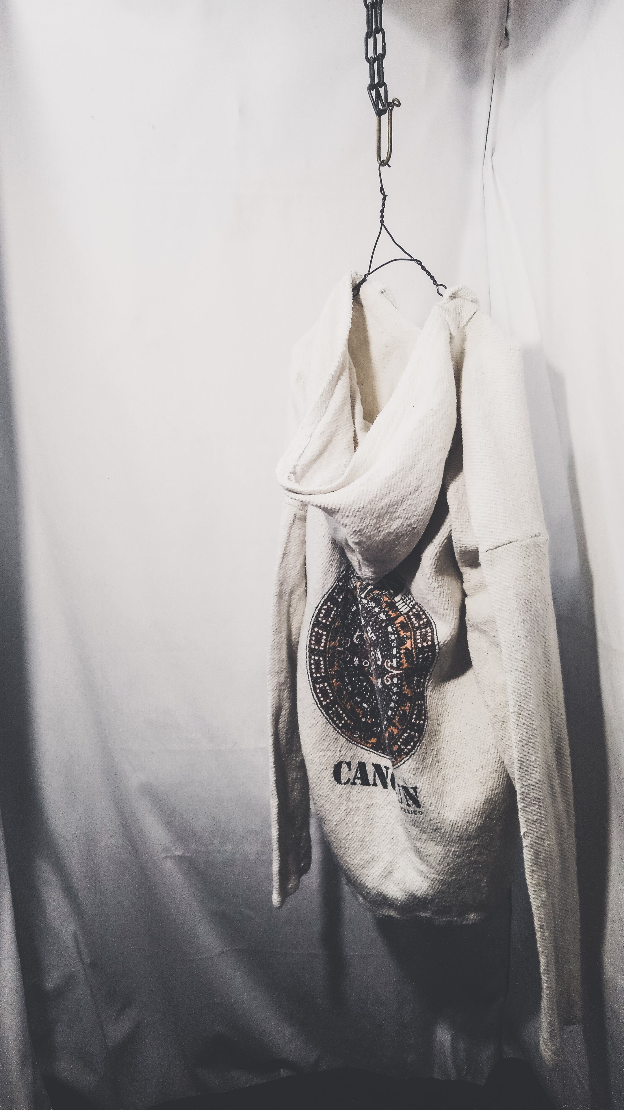 昨今流行りのカラフルなメキシカンラグの様な配色が印象的なメキシカンパーカーですが、こちらは単色のホワイト(生成り)。