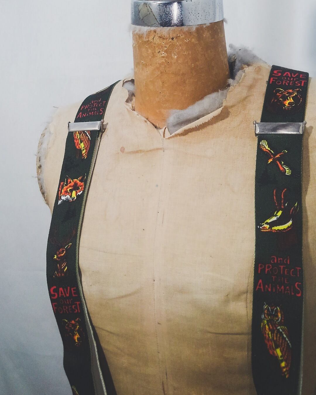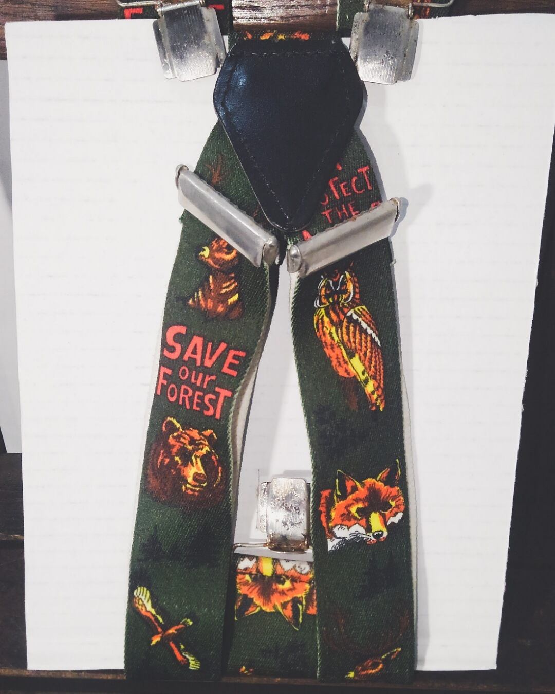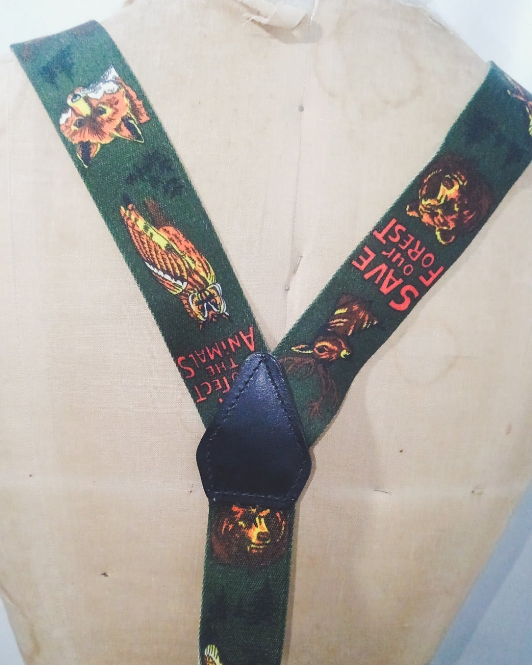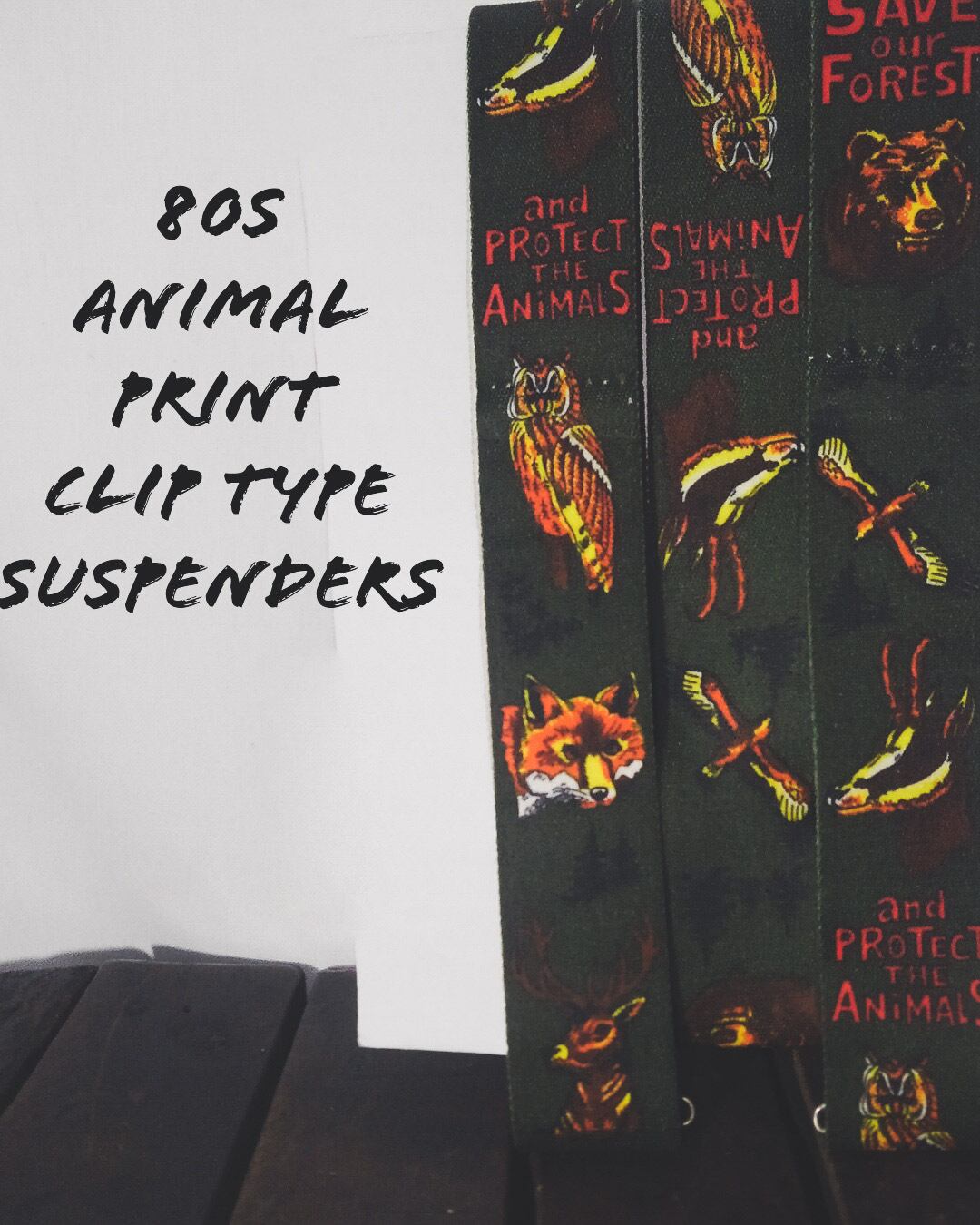 Vintage Animal print clip type suspenders 80s