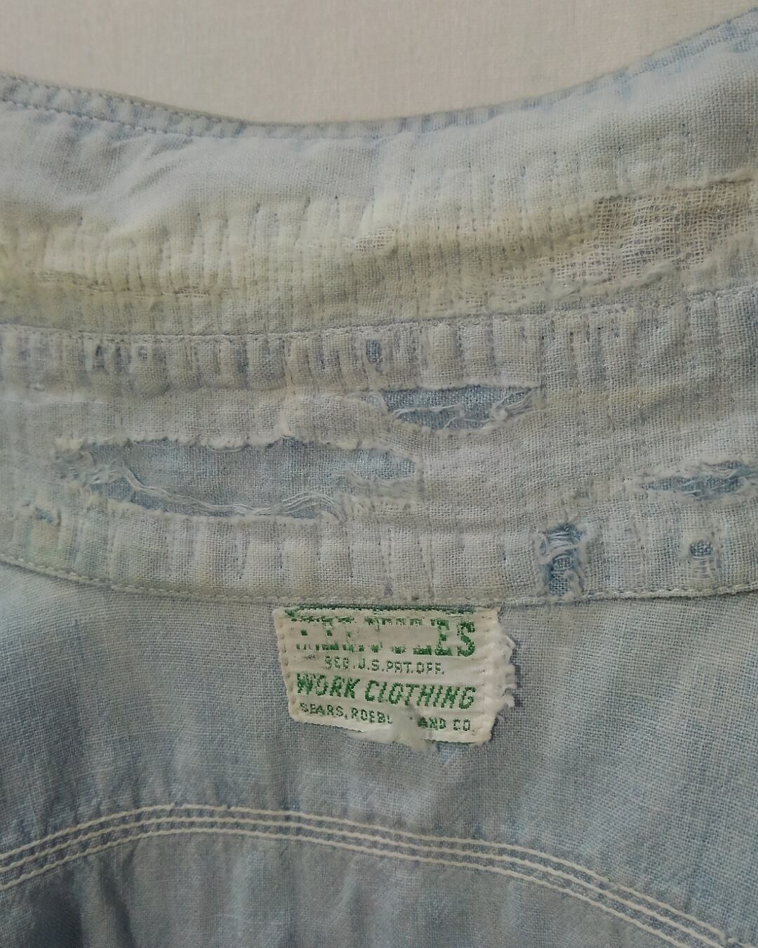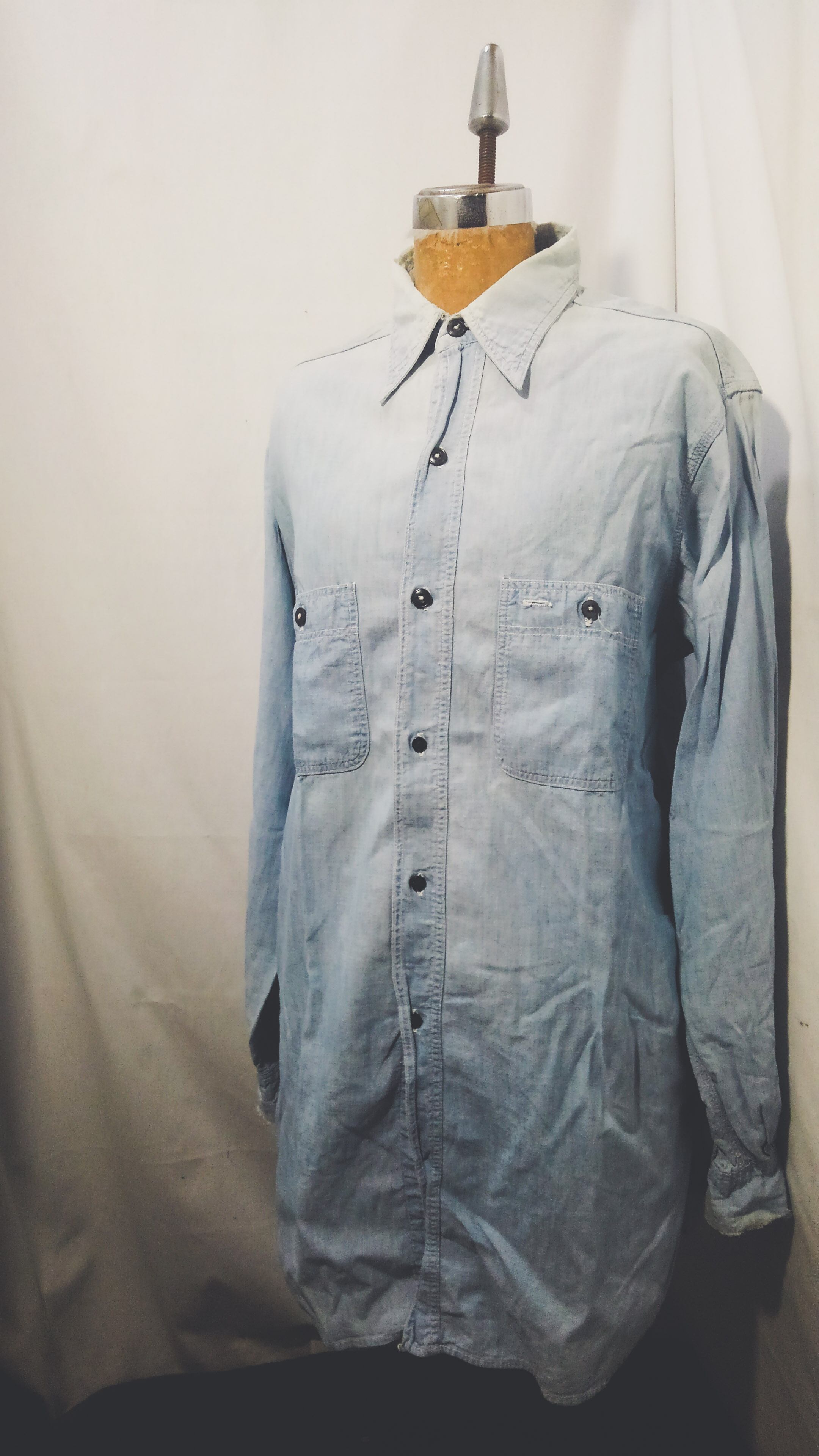 こちらの商品はタグに®️マーク無しなので40年代頃のシャンブレーワークシャツになります。