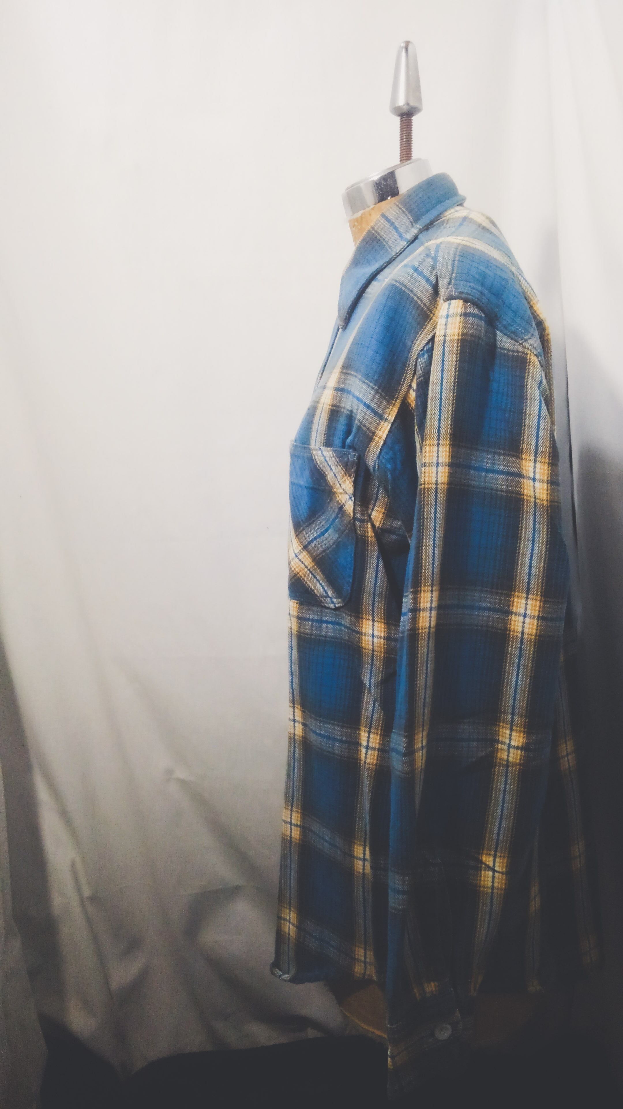 タグが欠損している為、ブランドやサイズなどの詳細は不明ですが、フラップの付かない両胸の大ぶりなパッチポケット、ラウンドテイルの裾がみられる辺り、シアーズやペニーズ等のストア系のブランドかと思われます。