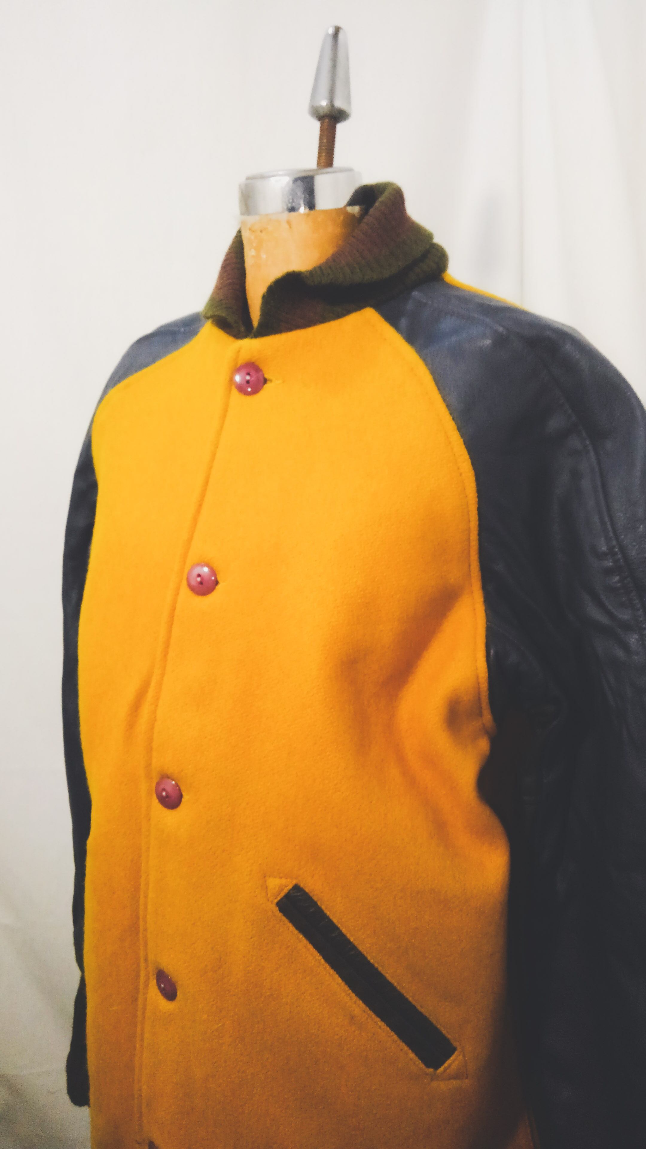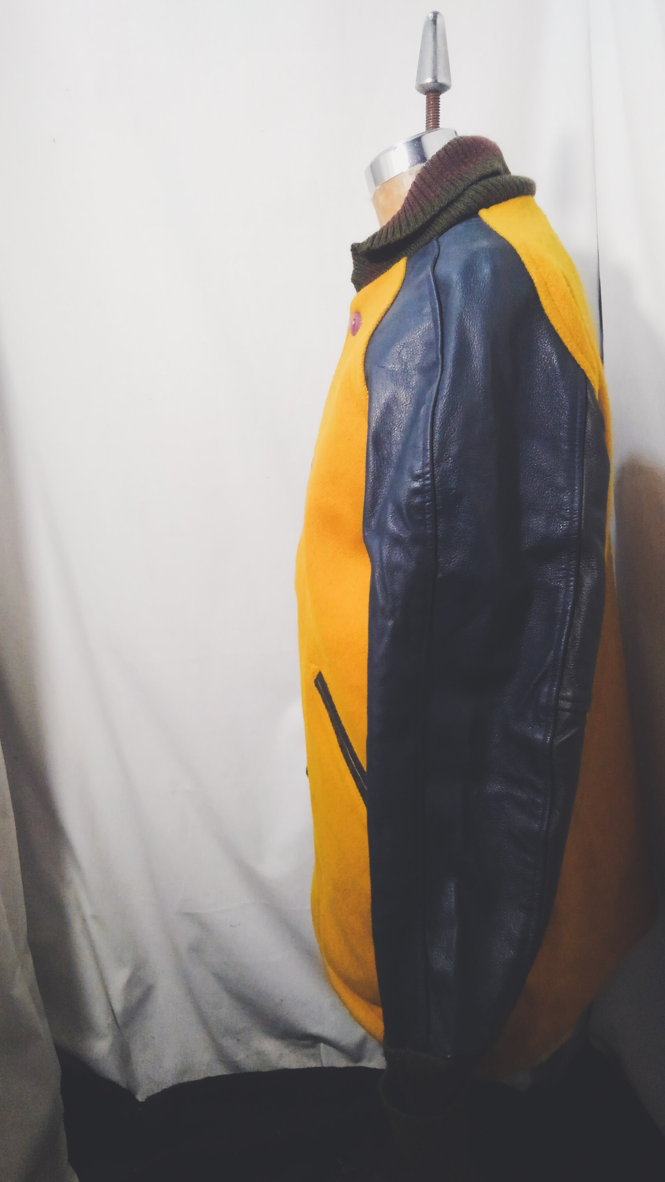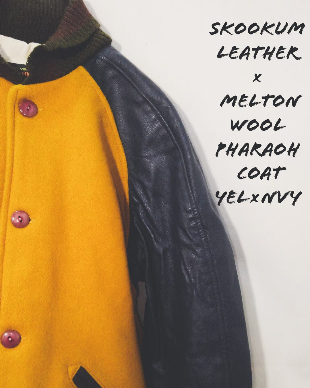 Skookum leather × melton wool Pharaoh Coat YEL×NVY