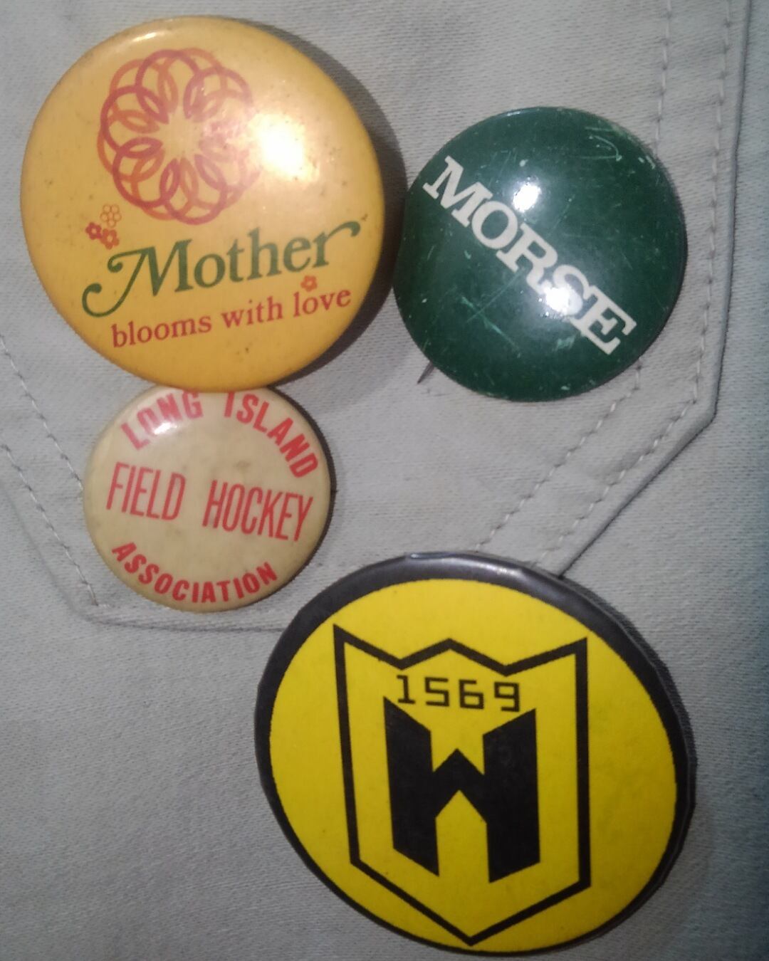 胸ポケット辺りにビンテージの缶バッチが付いていているのもプラスポイントです。