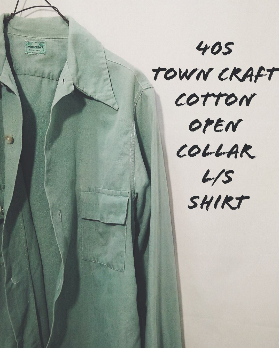 Vintage TOWN CRAFT cotton open collar L/S shirt 40s