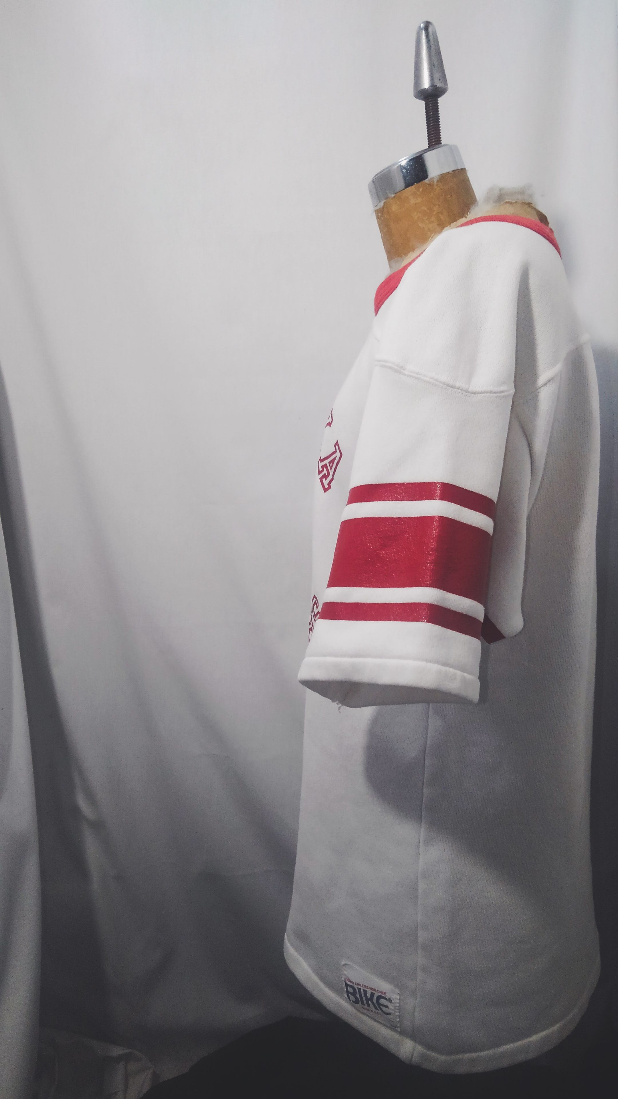 BIKEは1874年アメリカ・ボストンで競輪選手の保護のためのサポーターの製造をスタートしたブランドでその後様々なスポーツシーンにおいて幅広く支持され、体をサポートするアイテムを中心に実績を重ね1980年代〜1990年代にはアメリカの3大スポーツであるアメリカンフットボール、ベースボール、バスケットなどのユニフォームなどのスポーツウェアを手掛ける総合スポーツブランドになり、日本国内ではあまり知名度はありませんが、意外と歴史の深いブランドです。
