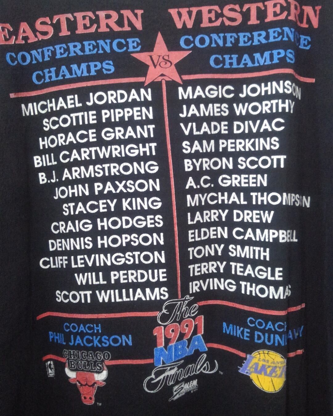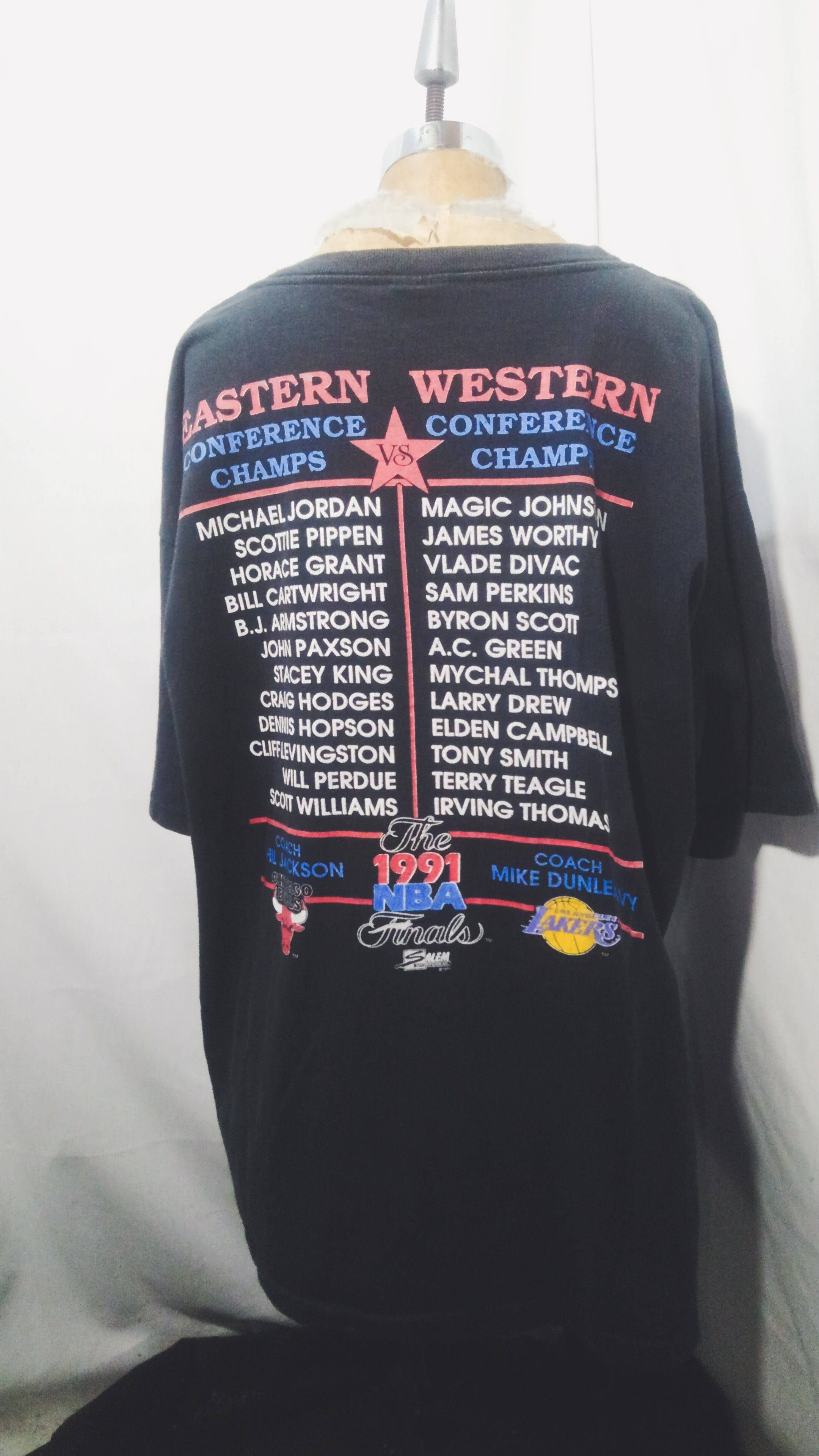 1991年のNBAファイナル、シカゴブルズ対ロサンゼルスレイカーズのTシャツです。