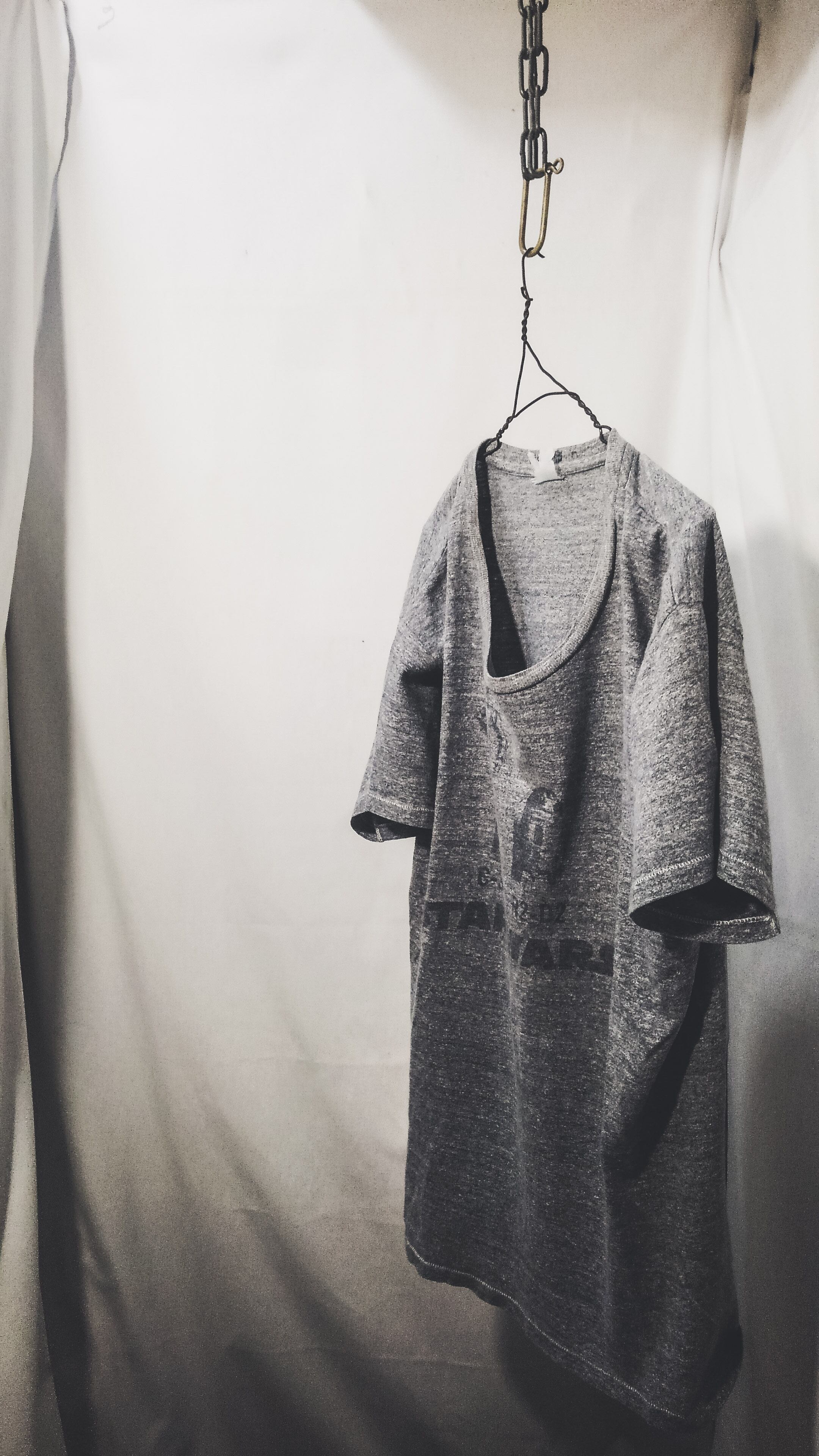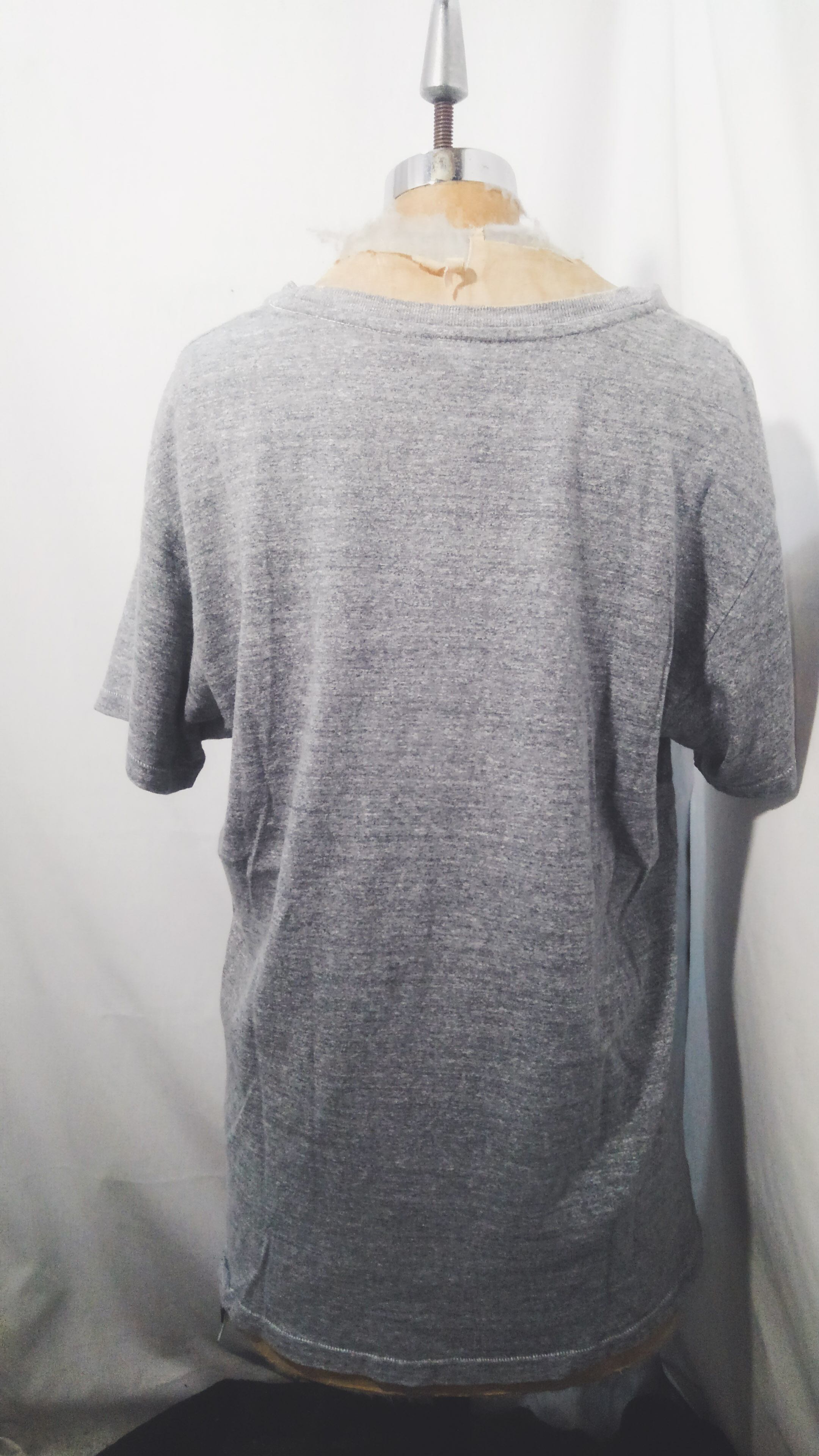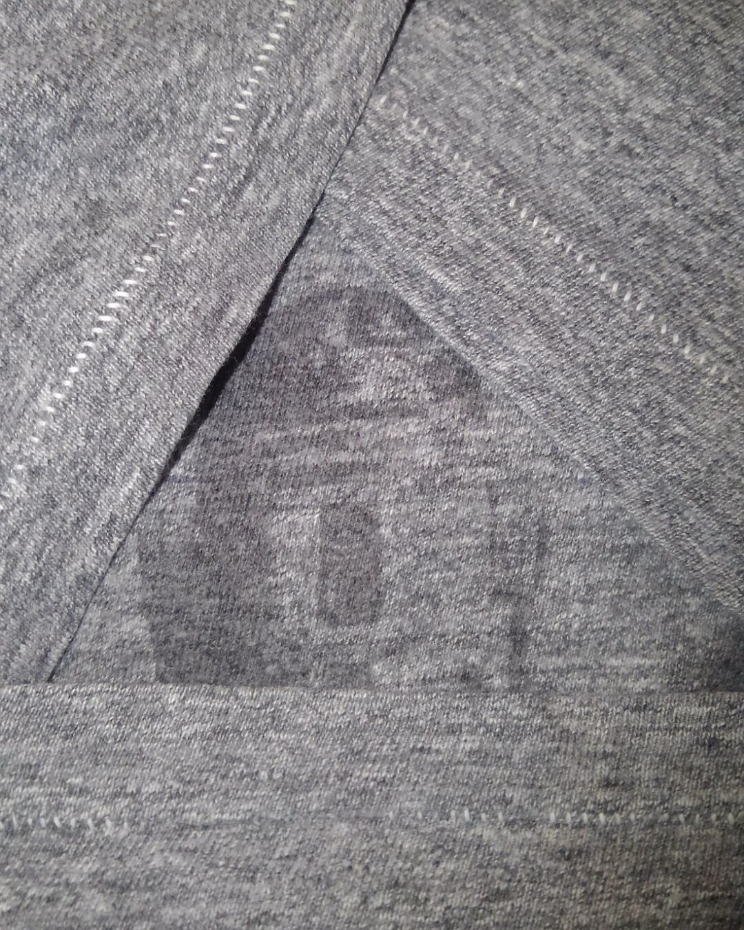 袖裾共にシングルステッチ、霜降りグレーの丸胴ボディです。